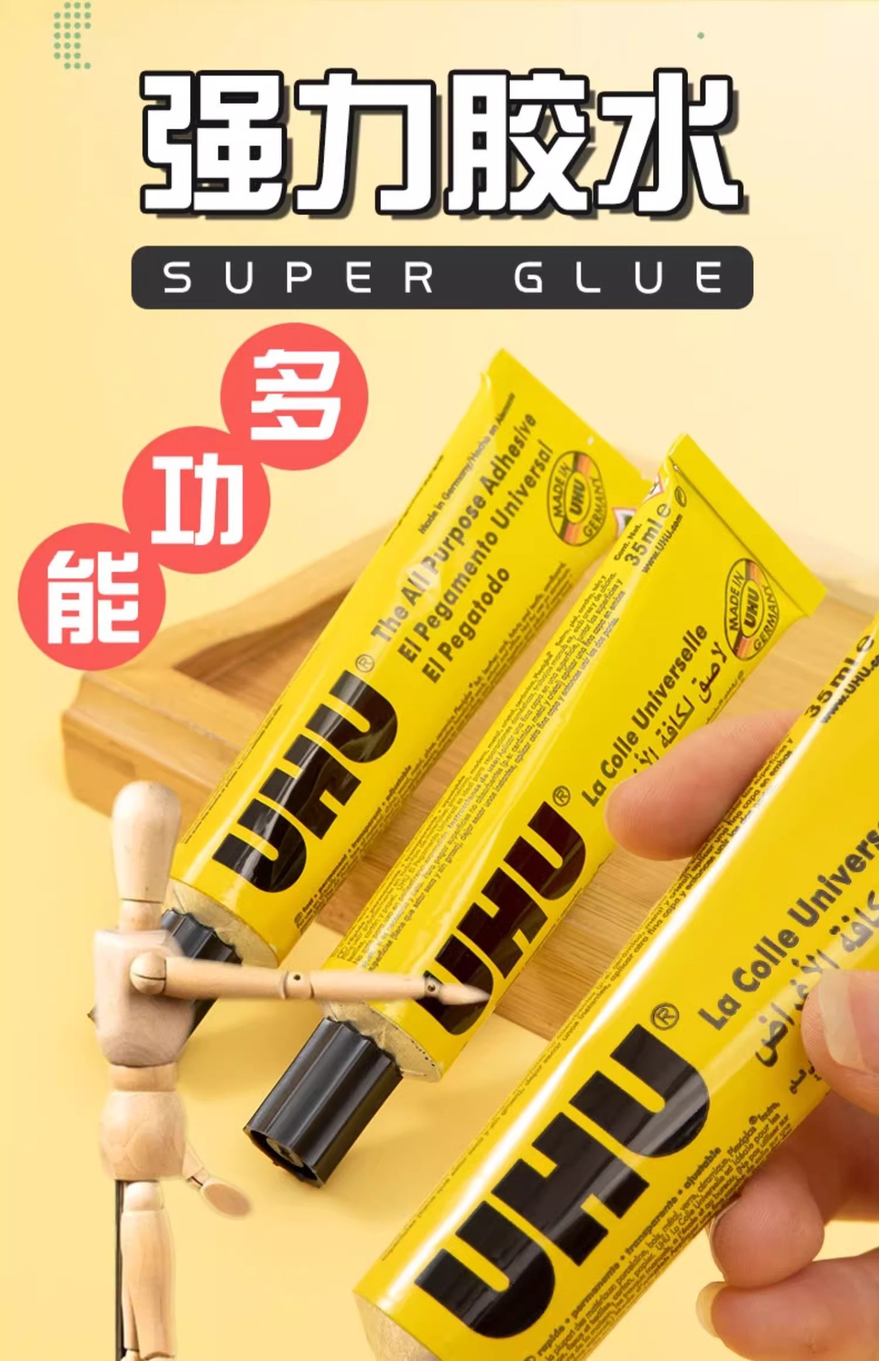 El pegamento en barra UHU alemán se adhiere firmemente a madera, tableros de carpintería, madera y materiales para modelos.