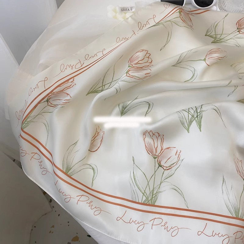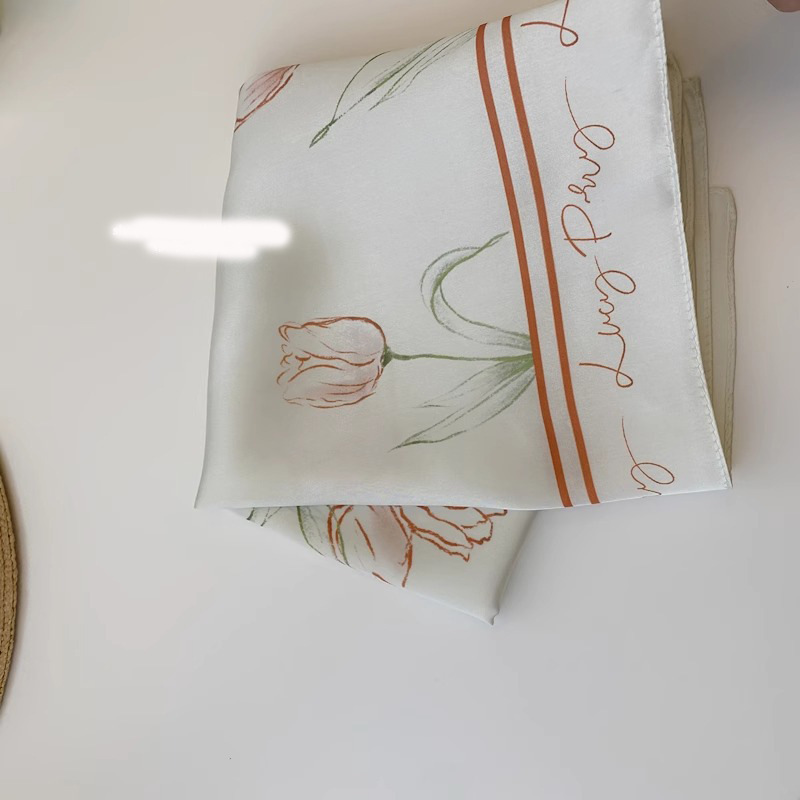 Coreano ~ ins literatura fresca pañuelo de mujer pañuelo de seda tulipa pañuelo de pañuelo romántico suave correa de pelo pañuelo decorativo