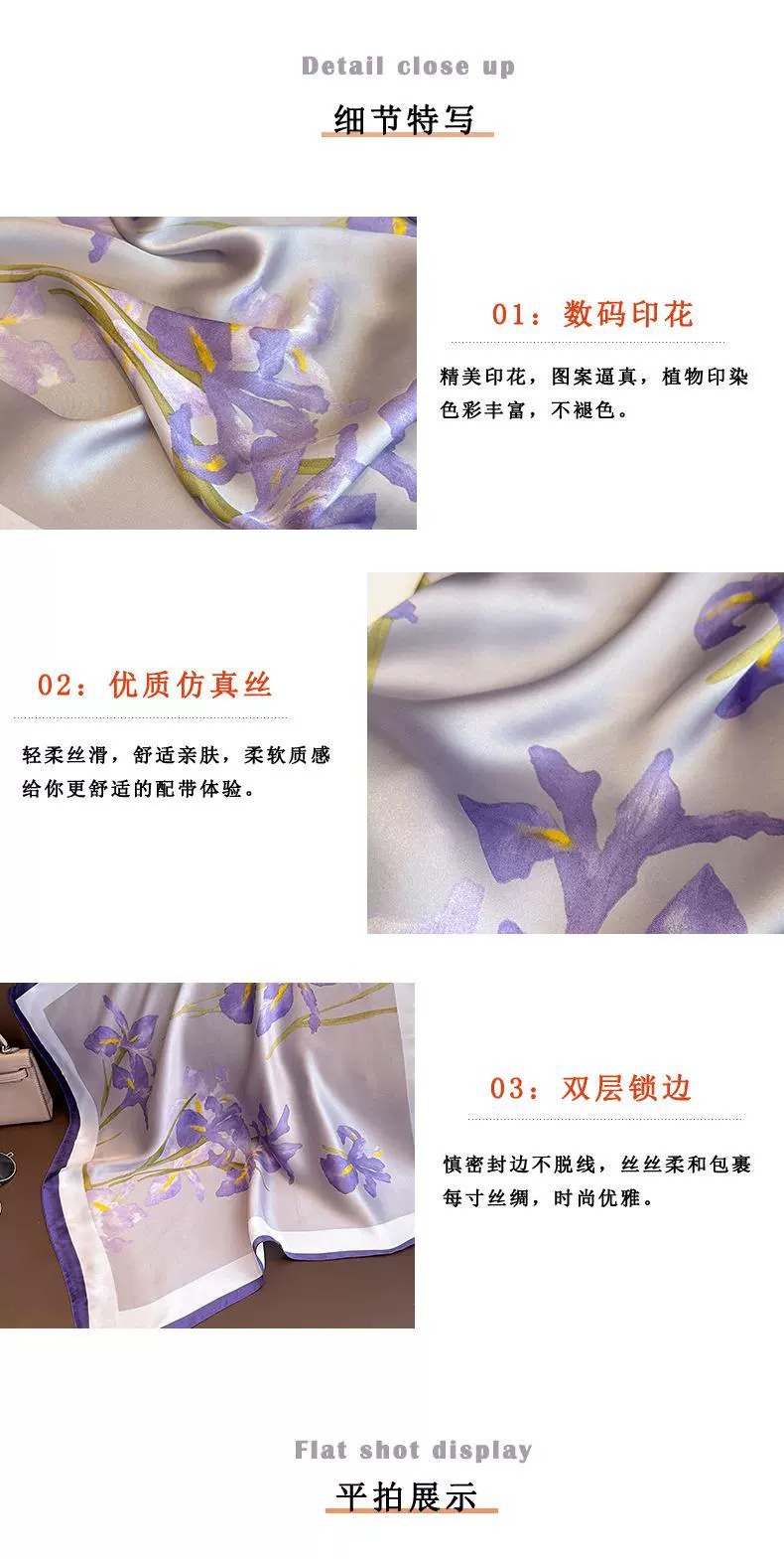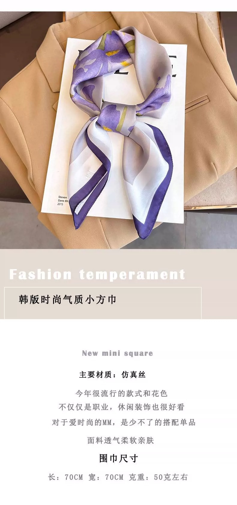 Versión coreana de primavera y otoño estilo fino narciso púrpura bufanda de seda mujer 70 bufanda cuadrada pequeña accesorios bufanda de decoración de viaje profesional