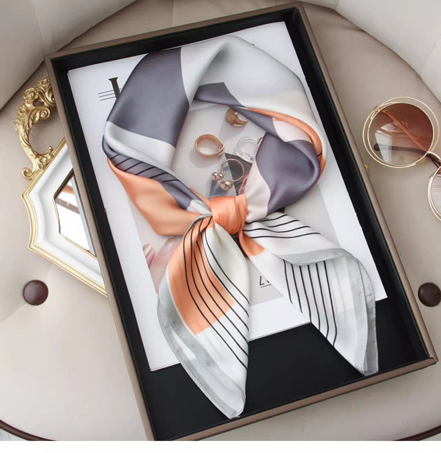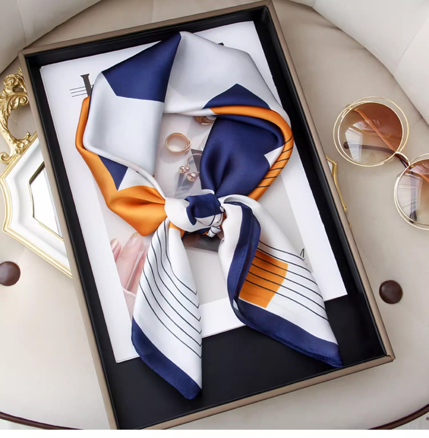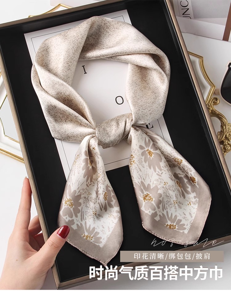 Primavera y verano 2025 nuevo estilo de alta sensación 70 bufandas cuadradas bufandas de seda para mujeres con camisas prácticas para la protección del cuello de la madre