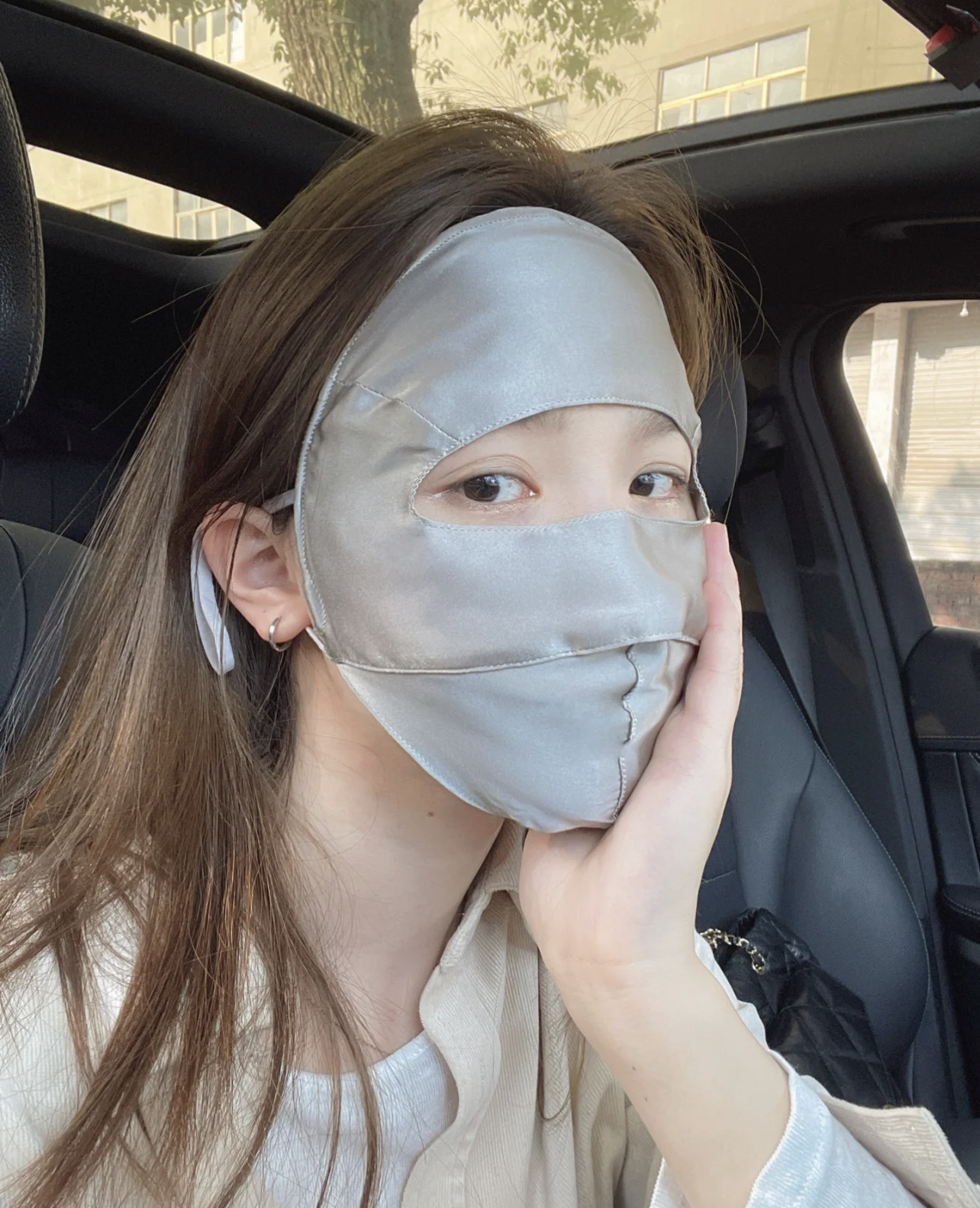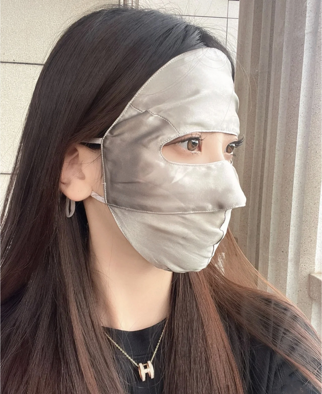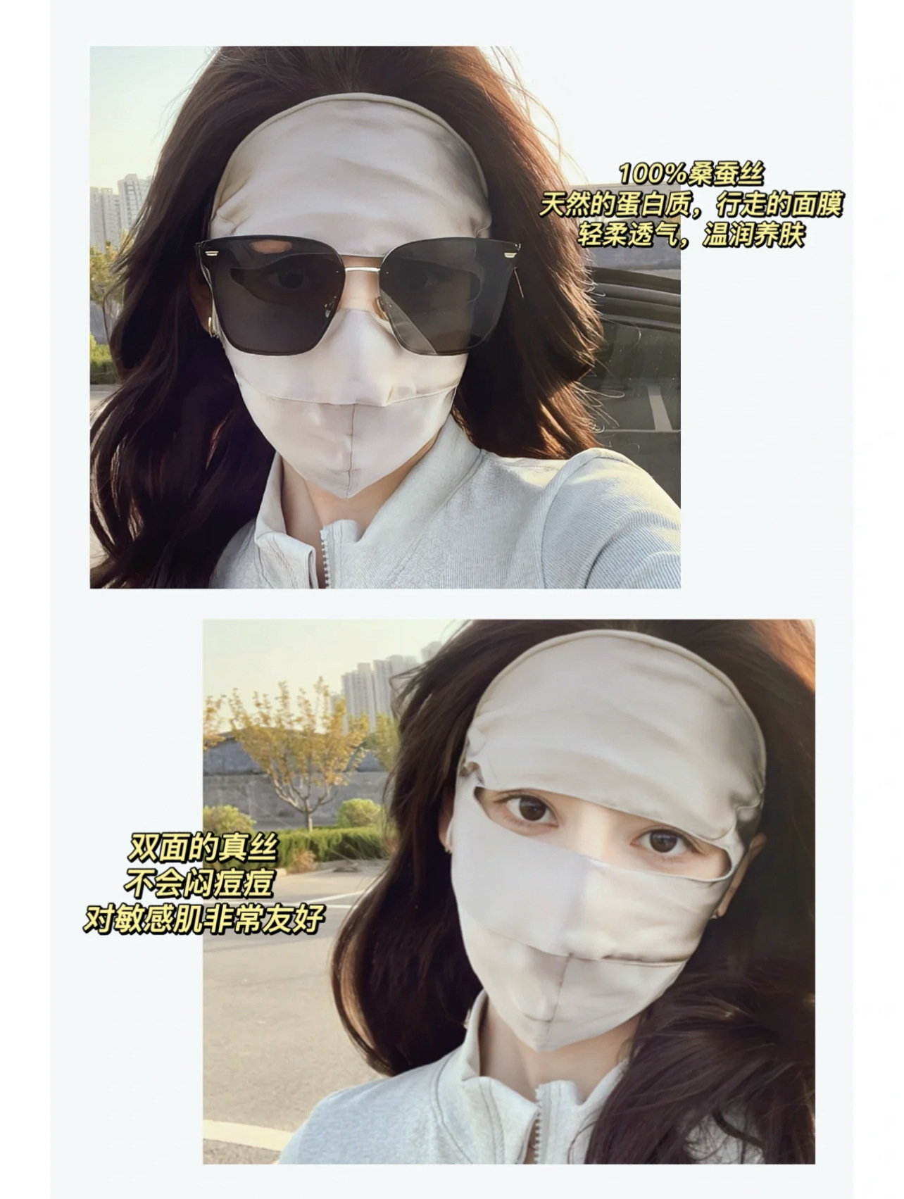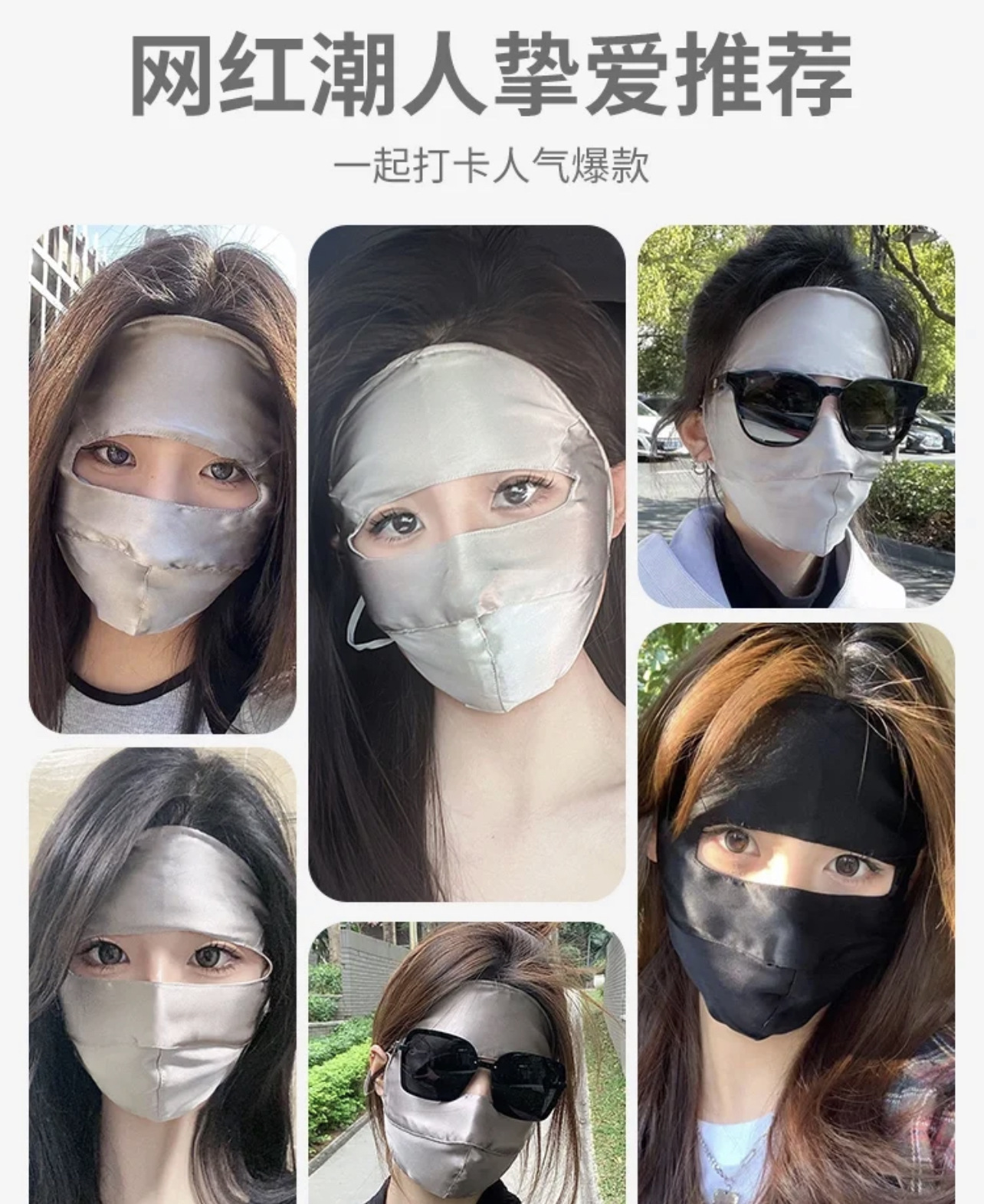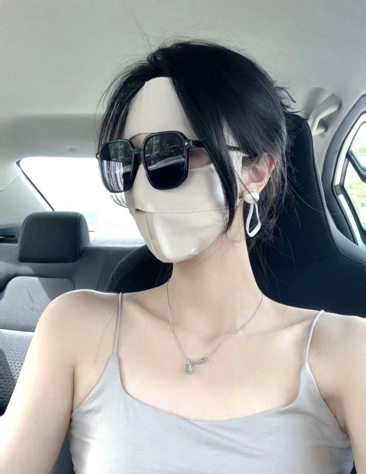 Anti-UV Blu-ray Anti-radiación Face Máscara de protección solar de seda de morera Cara completa Nueva conducción Cara de seda Gini