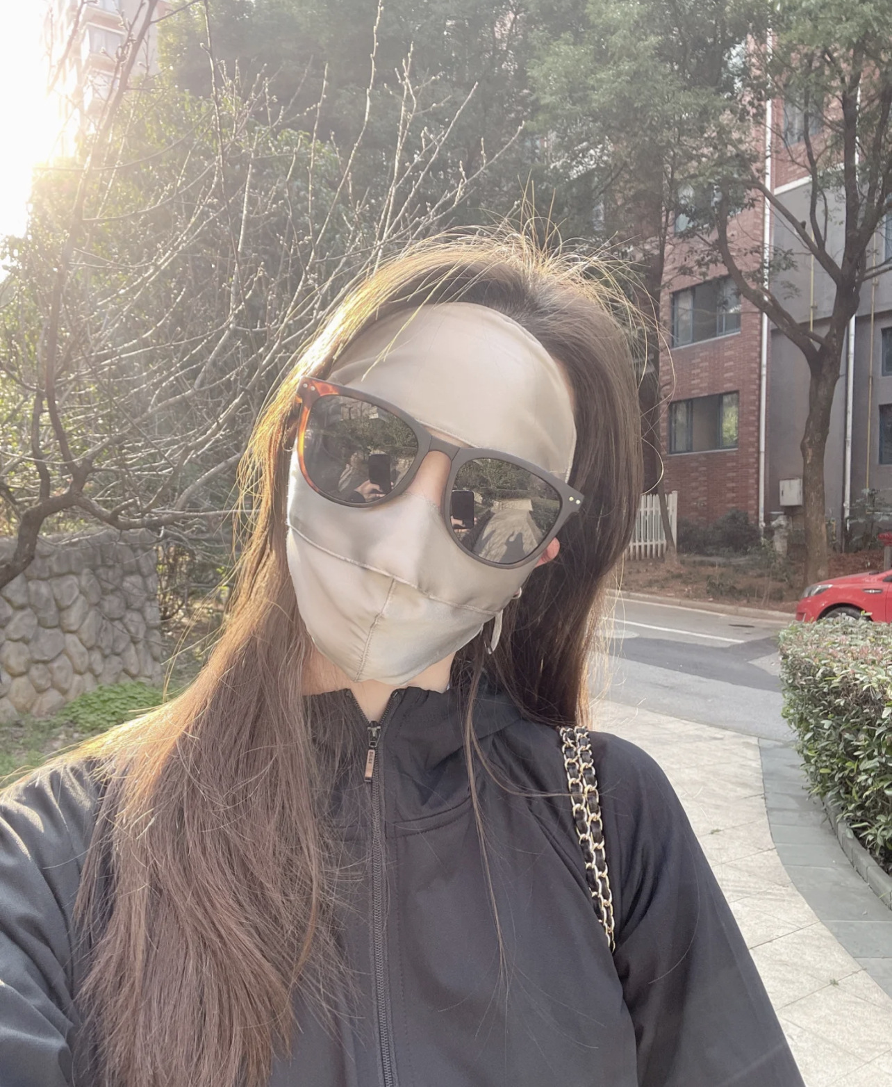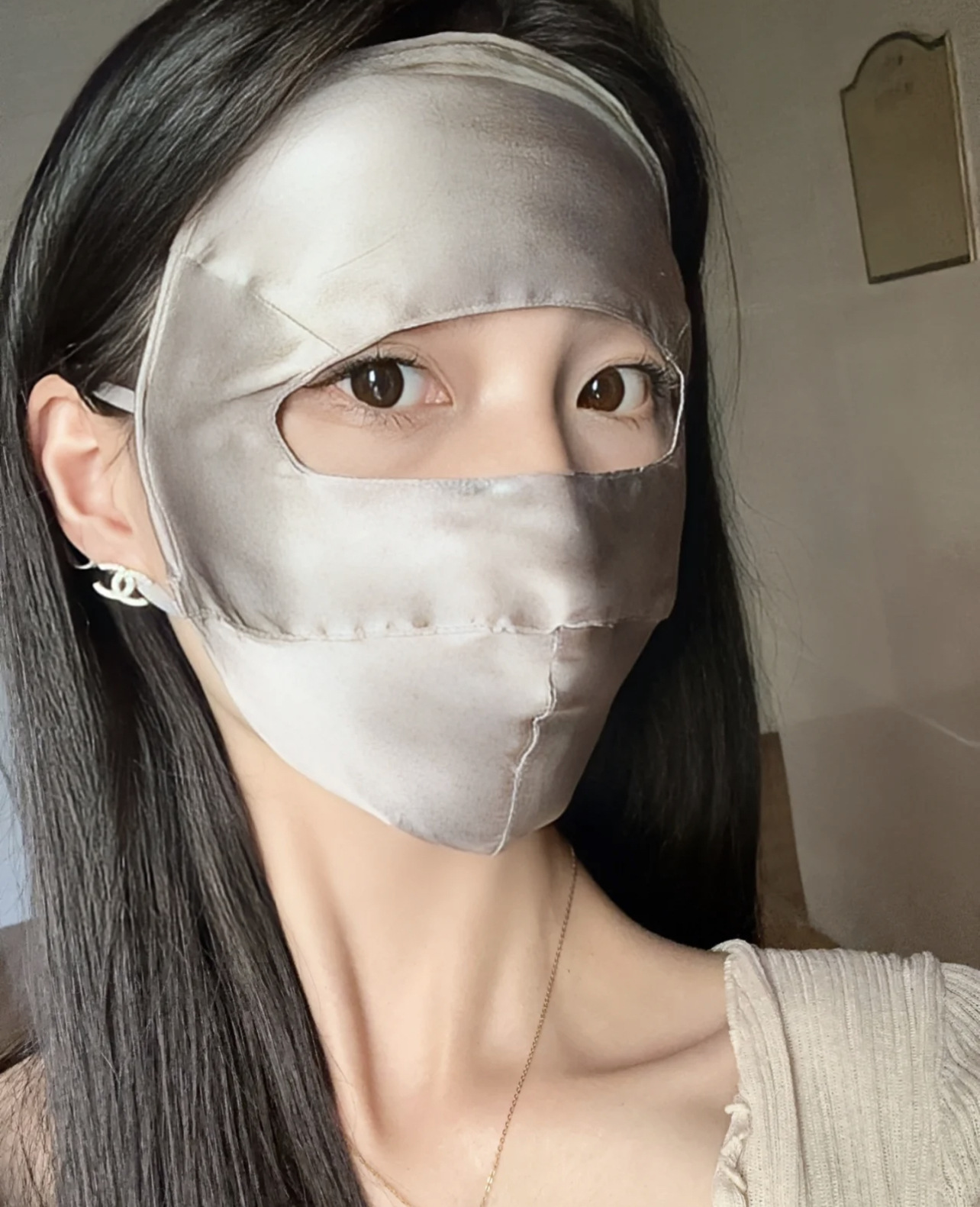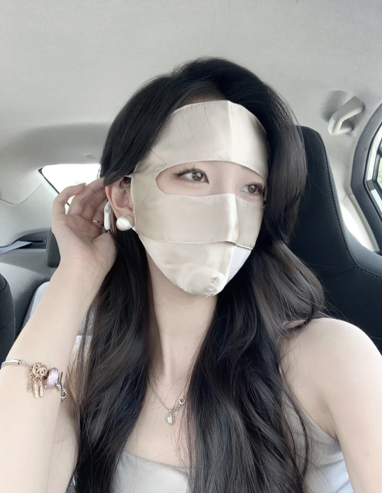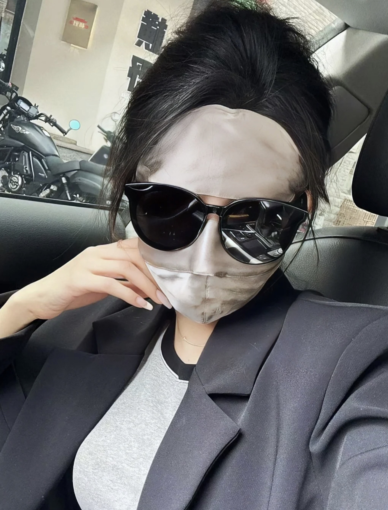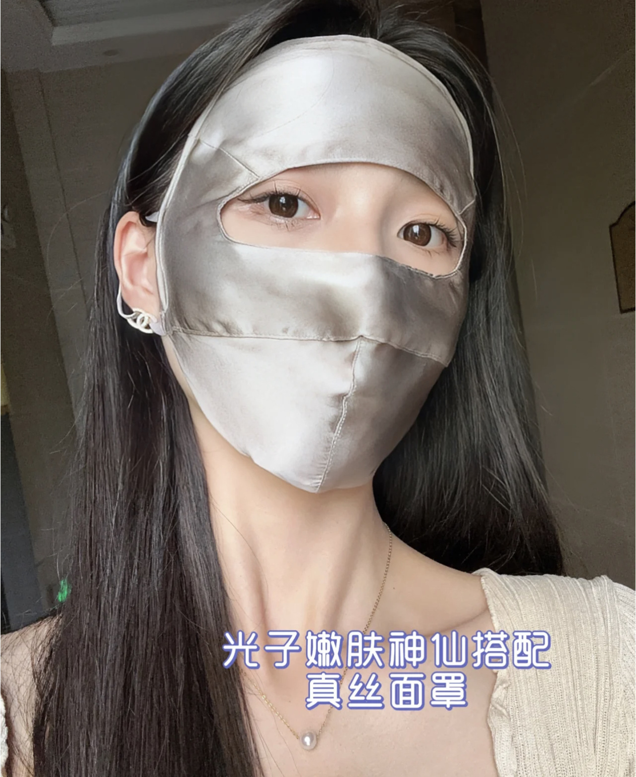 Anti-UV Blu-ray Anti-radiación Face Máscara de protección solar de seda de morera Cara completa Nueva conducción Cara de seda Gini