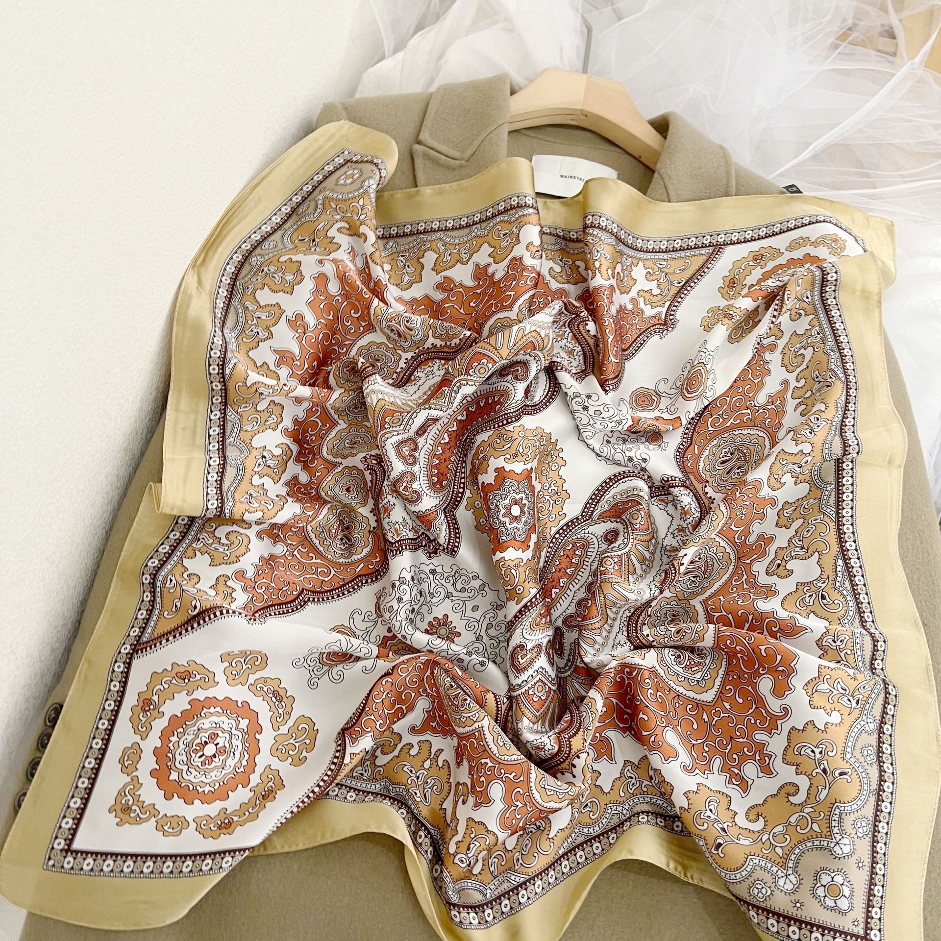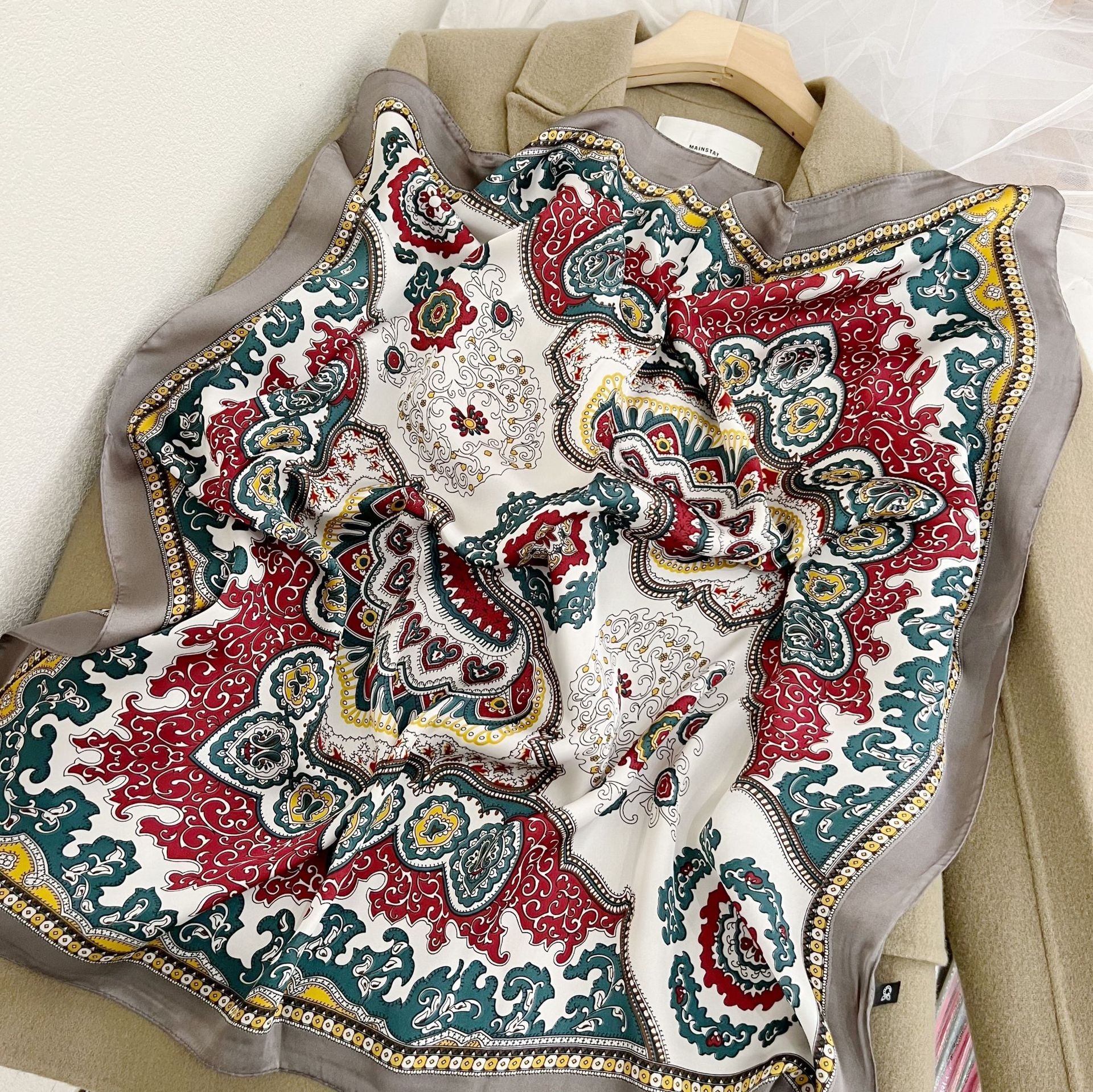 Impresión de letras tridimensionales nuevo estilo 70 pequeños accesorios de bufanda cuadrada bufanda de seda retro bufanda de ropa profesional bufanda de seda simulada