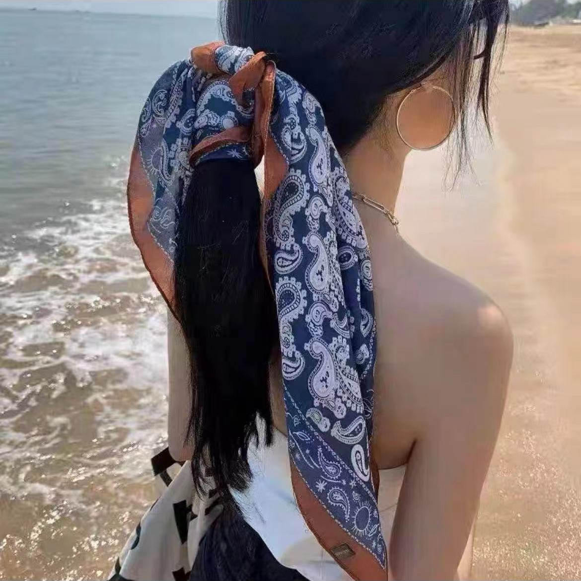 Primavera y otoño 70 bufandas cuadradas bufandas de seda con camisas trajes bufandas delgadas accesorios clásicos de flores de anacard moda bufandas