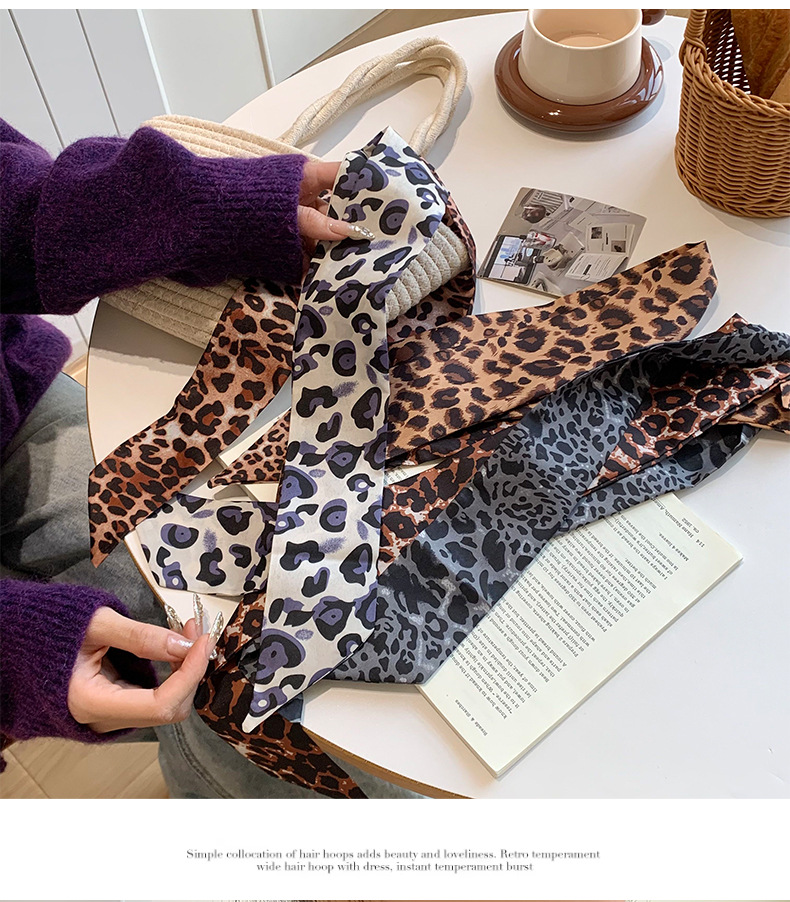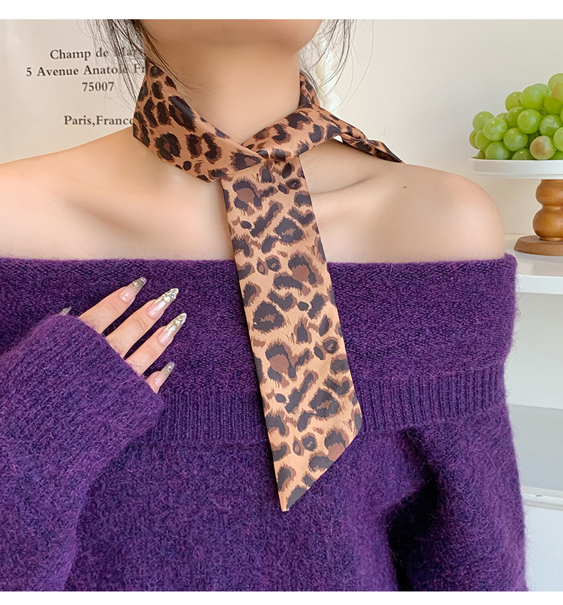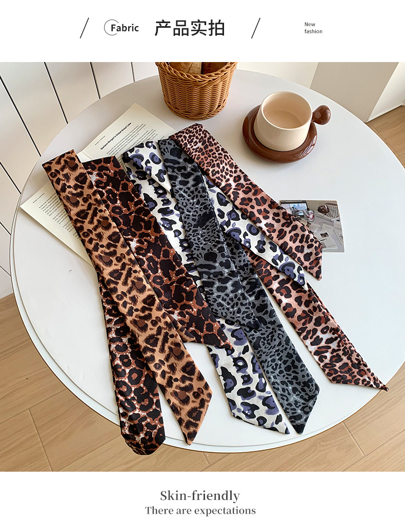 Bufandas de seda para mujeres nuevo estilo americano retro estampado leopardo correa de cuello de mil pañuelos delgada bufandas de seda cinturón bufandas decorativas