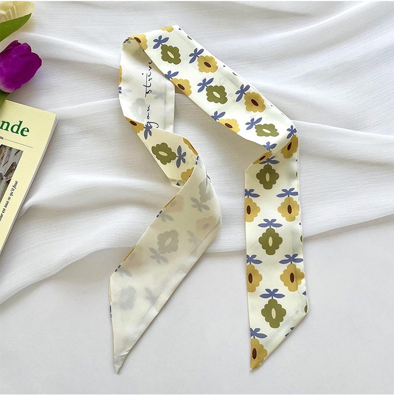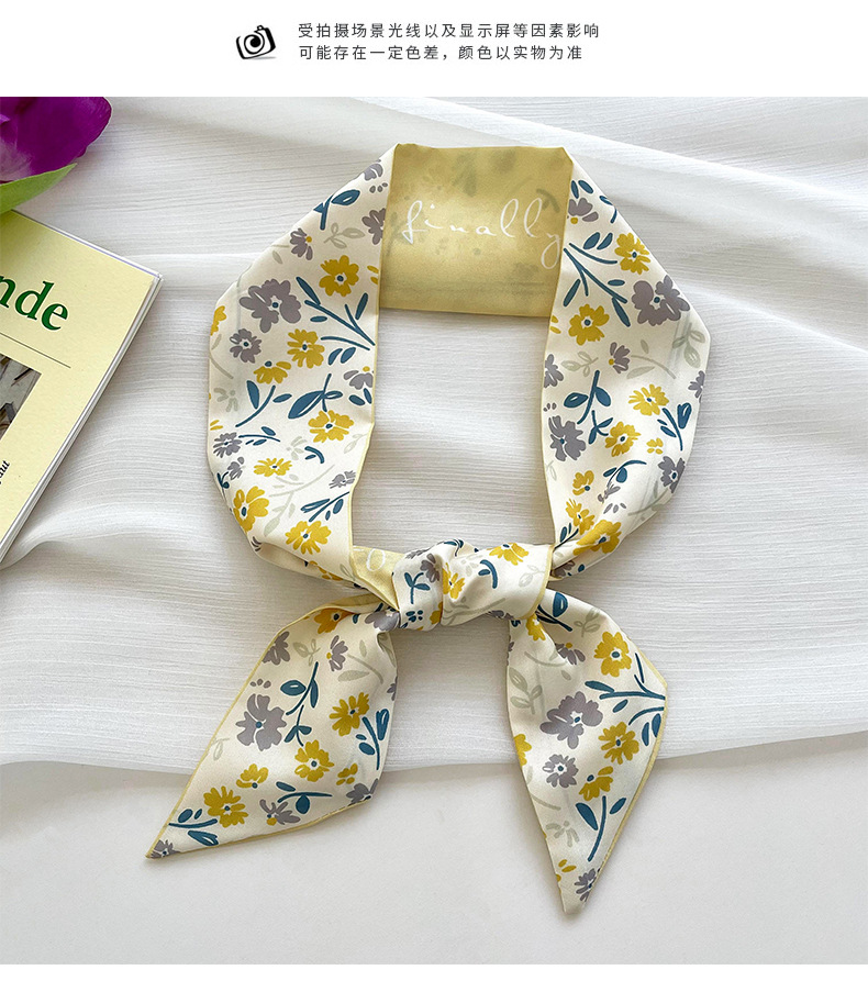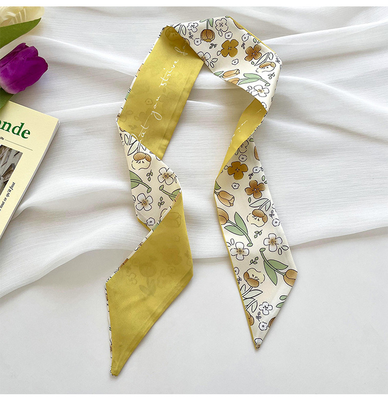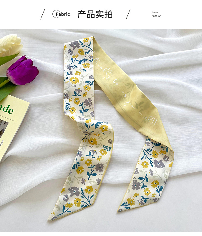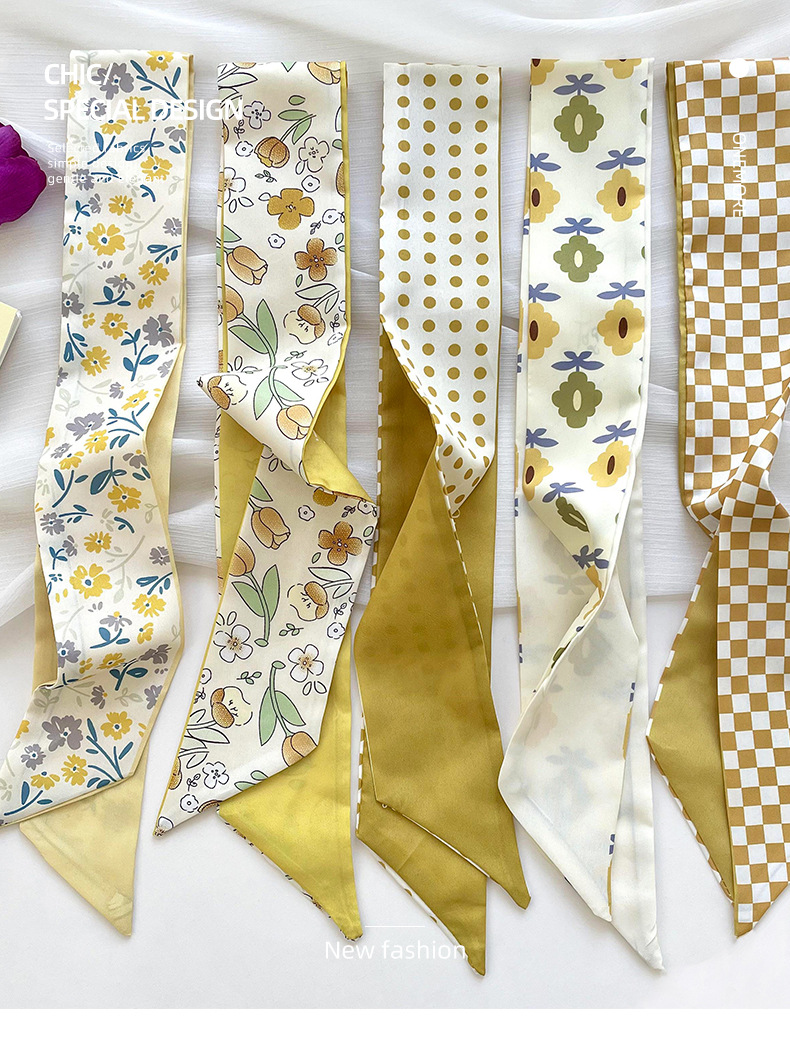 Amarillo Blanco pequeña bufanda de seda para las mujeres de primavera y verano delgada tira estrecha corbata de pelo bolsa decoración de alta sentido bufanda banda de pelo cinta