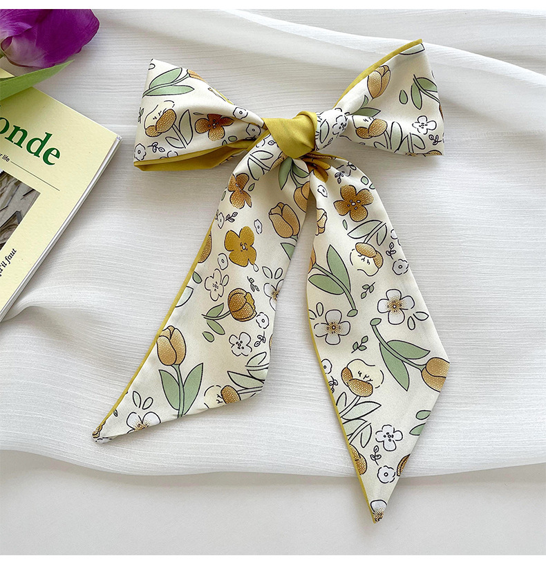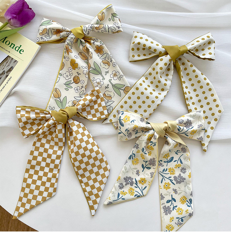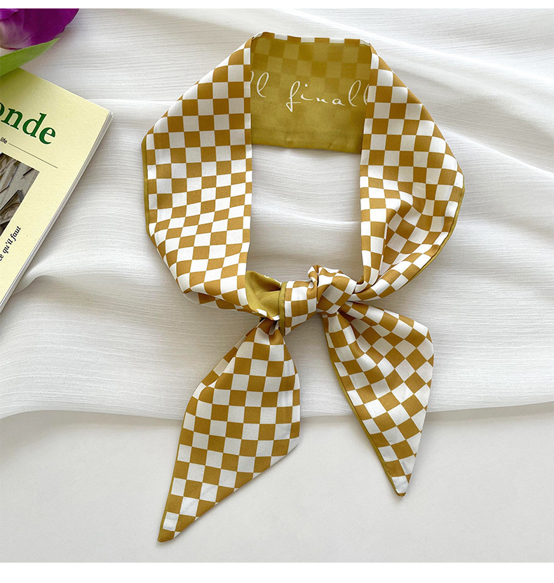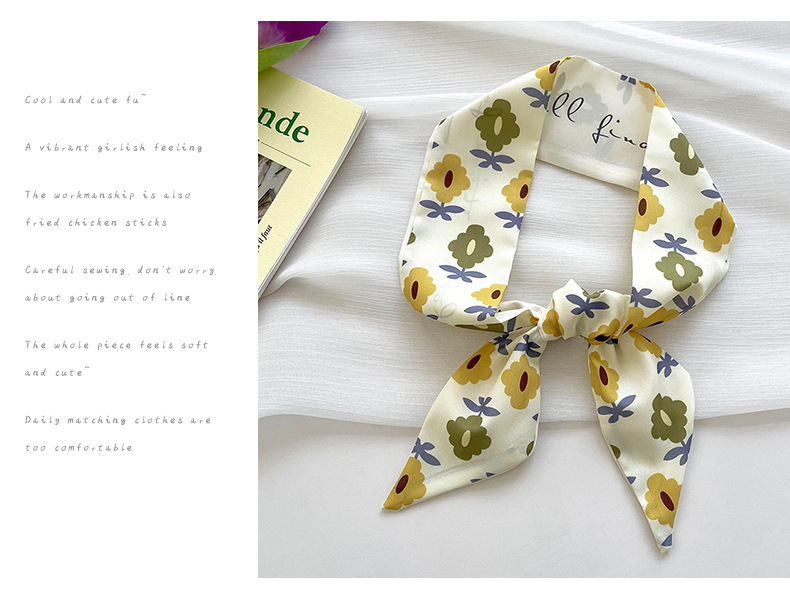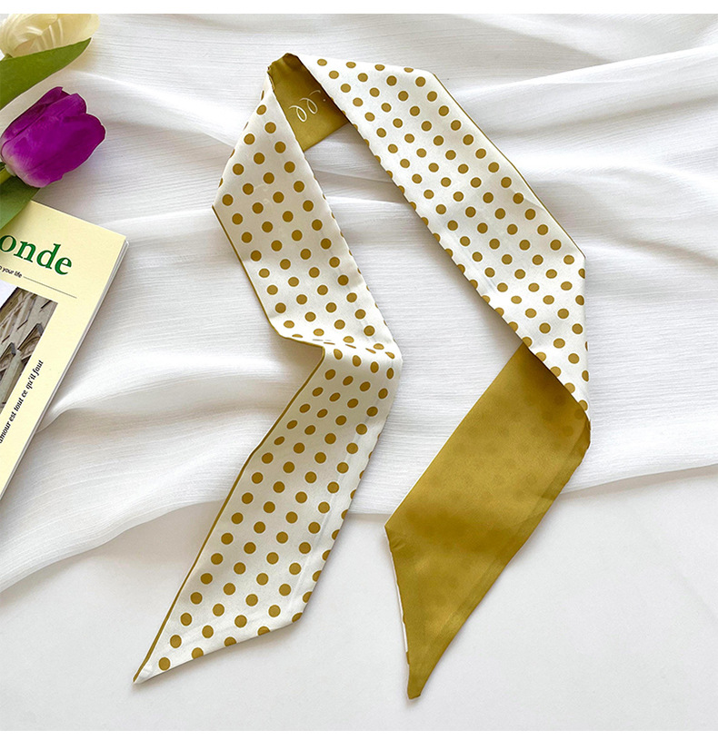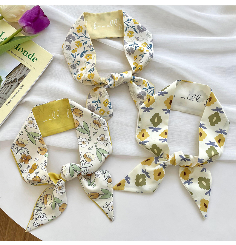 Amarillo Blanco pequeña bufanda de seda para las mujeres de primavera y verano delgada tira estrecha corbata de pelo bolsa decoración de alta sentido bufanda banda de pelo cinta