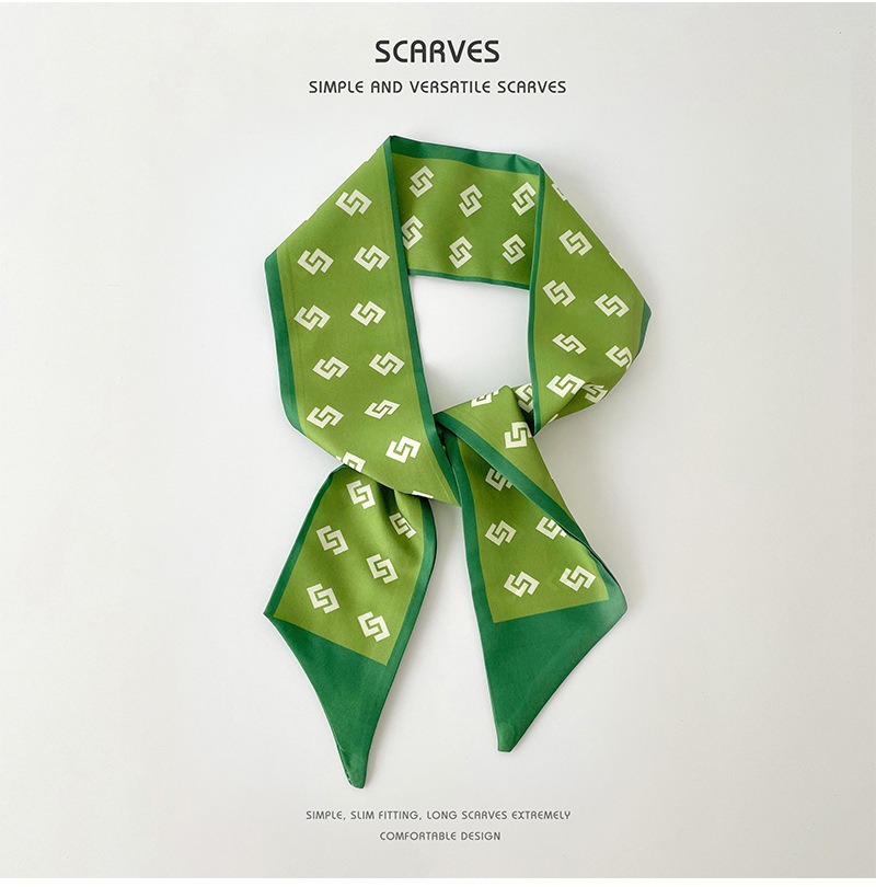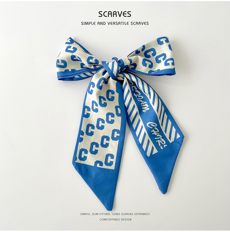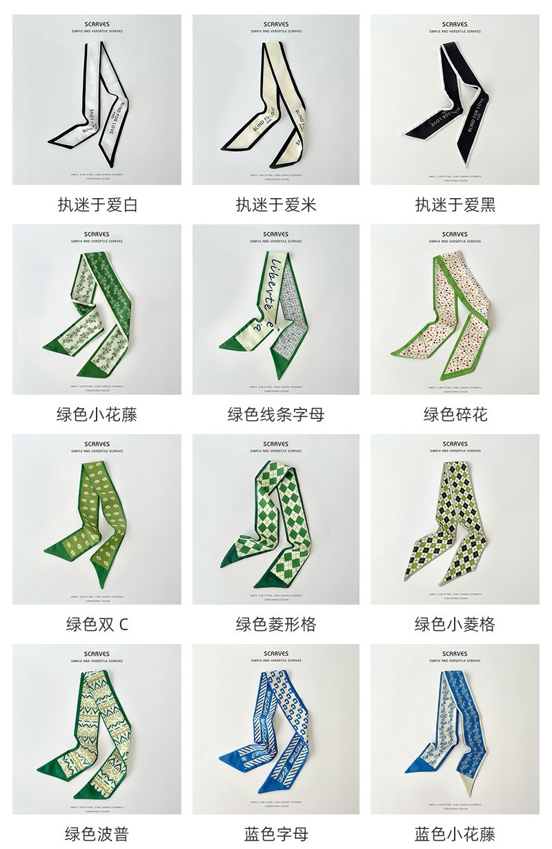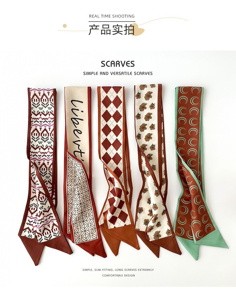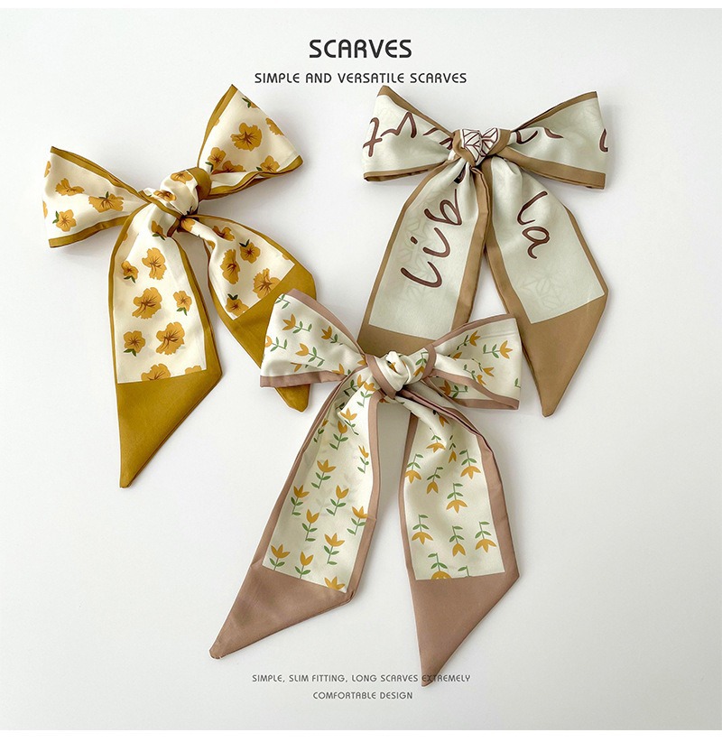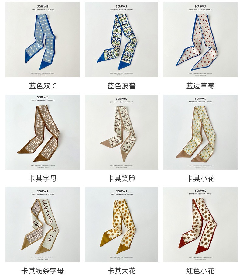 Bufandas de seda delgadas y largas para mujeres primavera y verano multifuncional bolsas de pelo atadas de pañuelo decorado correa de pelo tocado de correa