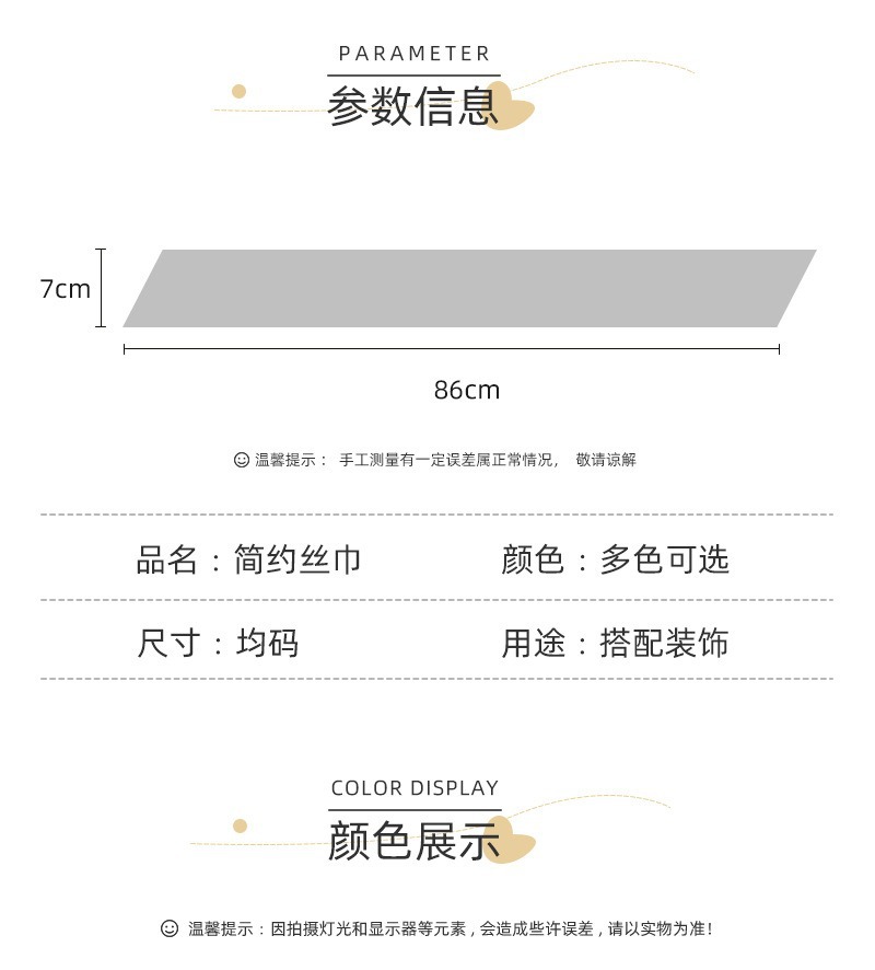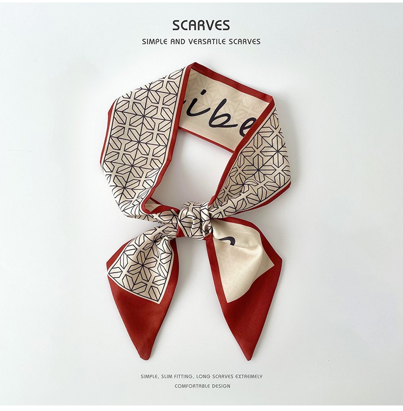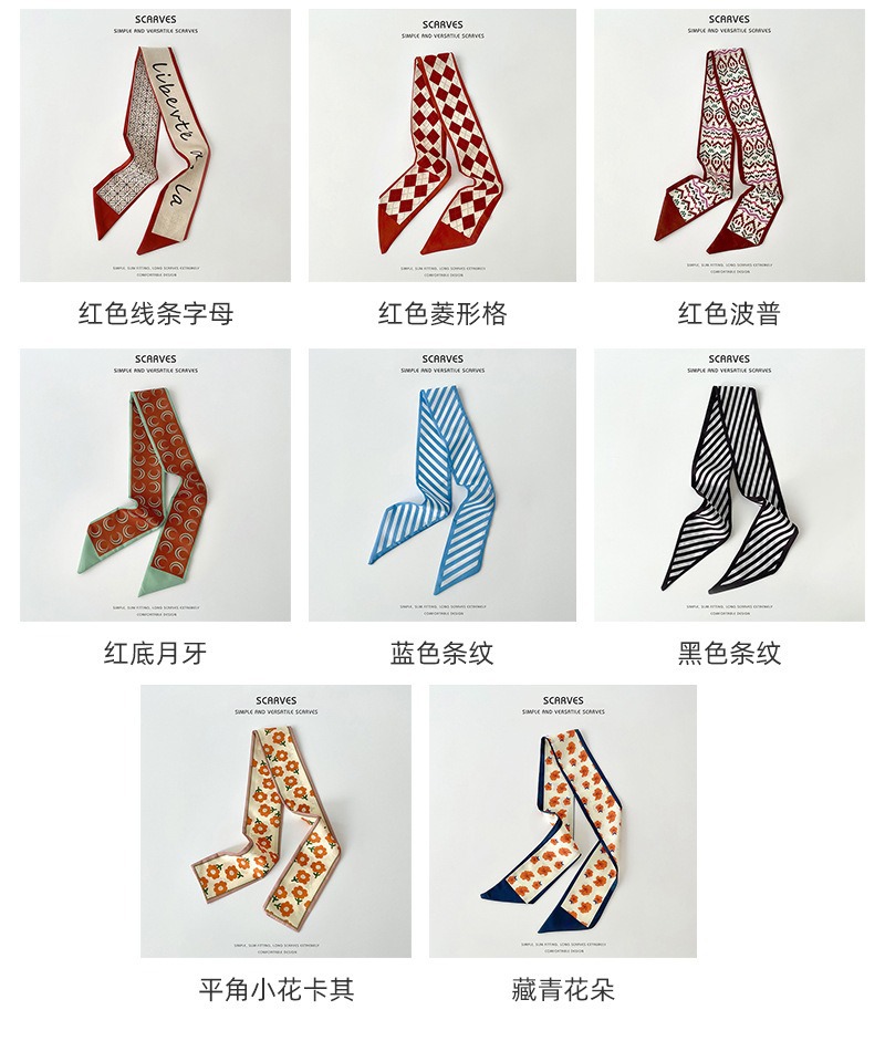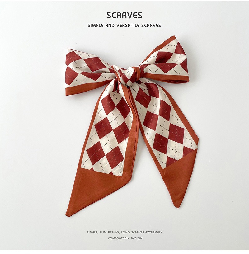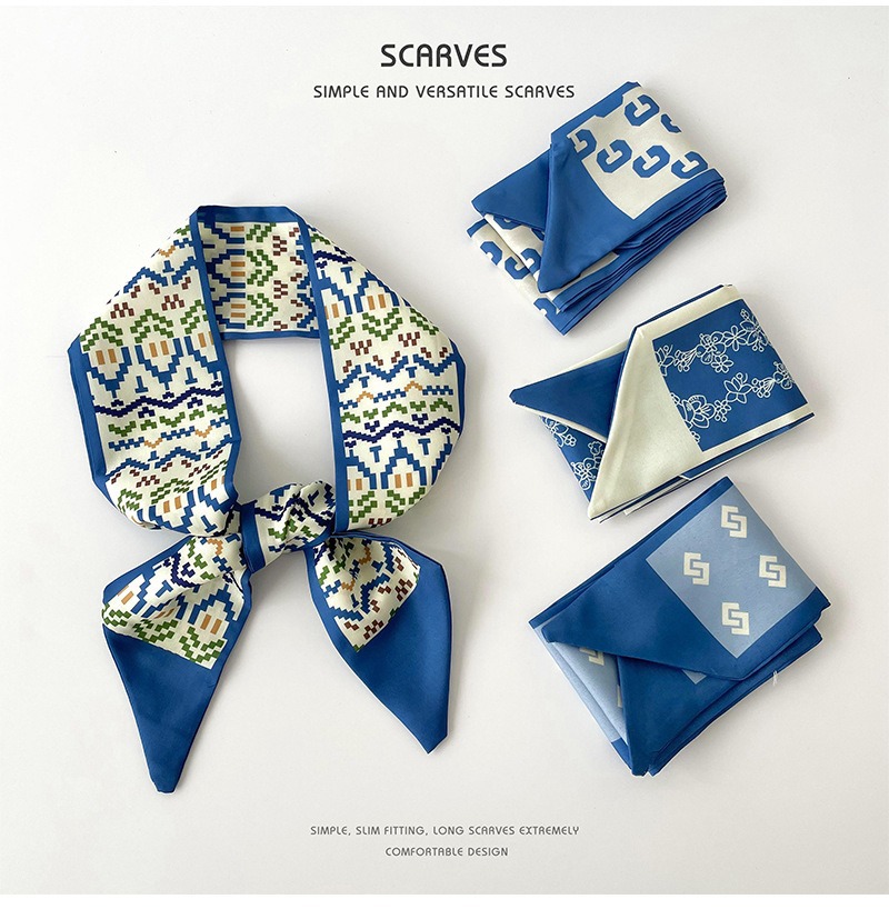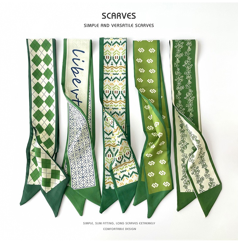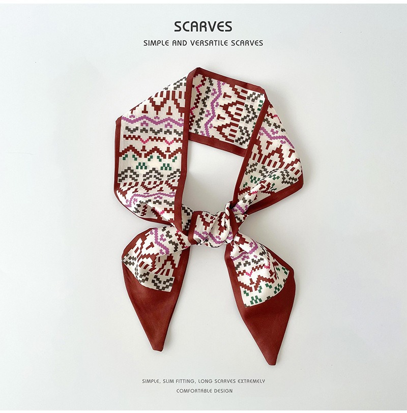 Bufandas de seda delgadas y largas para mujeres primavera y verano multifuncional bolsas de pelo atadas de pañuelo decorado correa de pelo tocado de correa