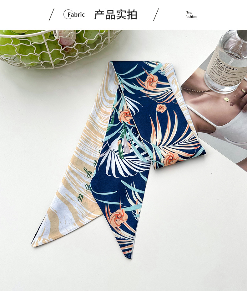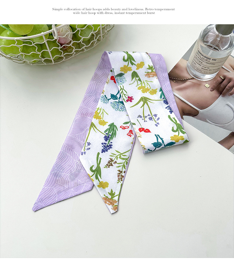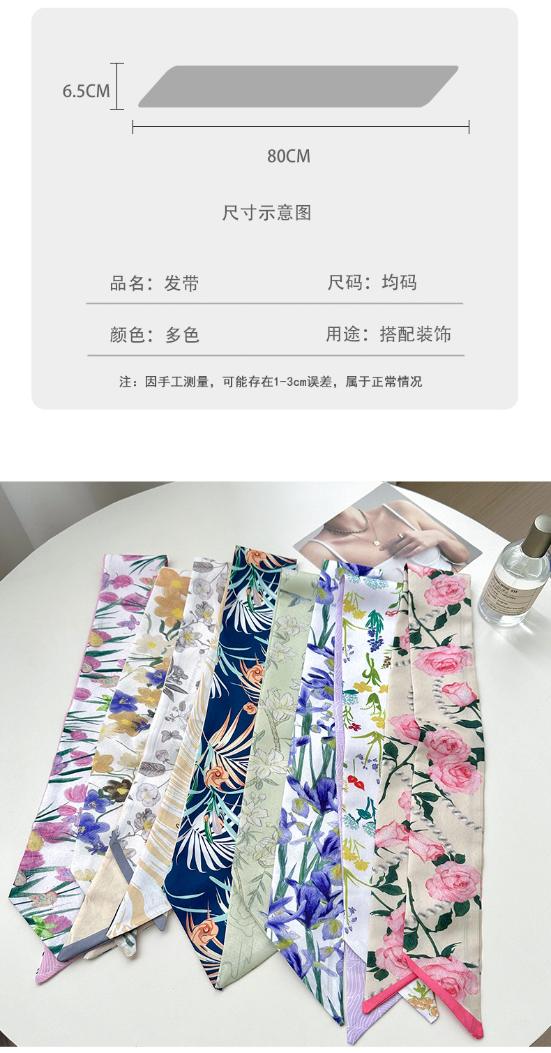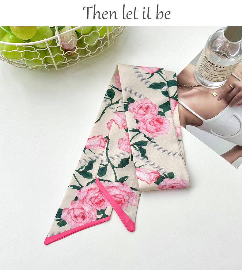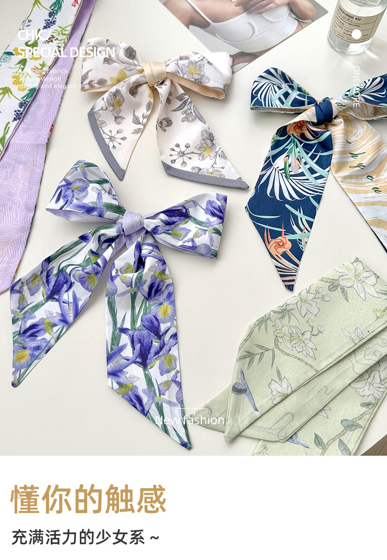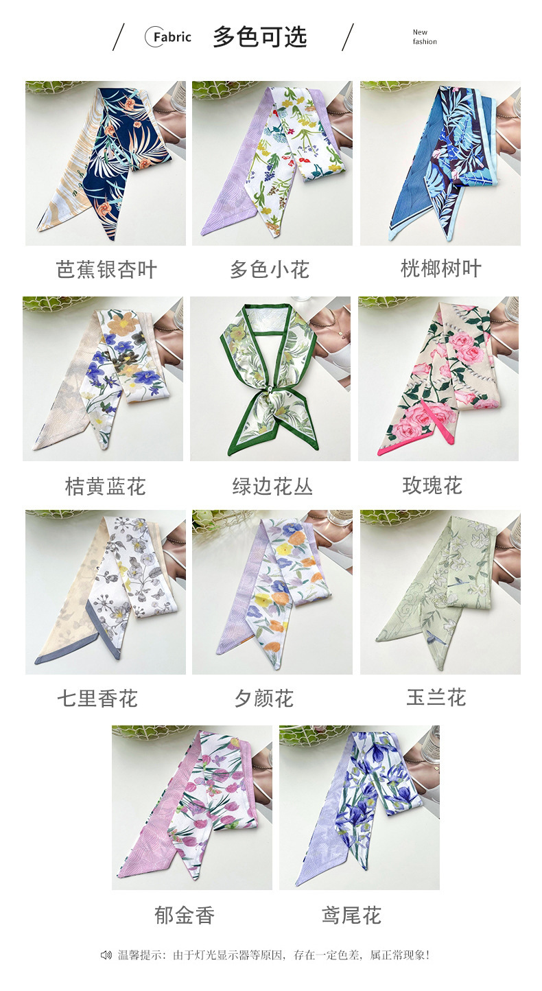 Bandas largas para el cabello de mujeres nuevas flores sencillas y frescas de doble capa de satén pequeño bufandas de cuello larga bufandas de seda flotante