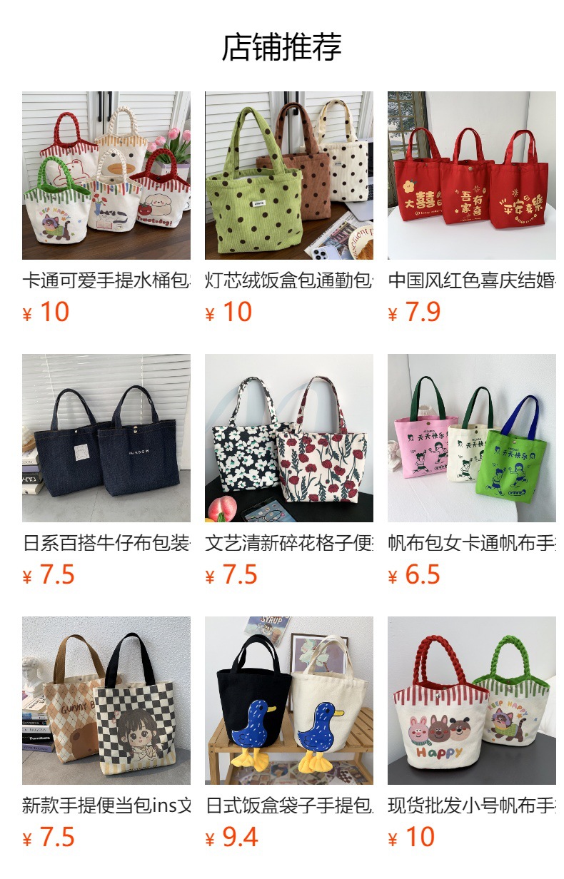 Bolsa de lona de dibujos animados lindo japonés ins tutorial bolsa de almuerzo bolso de tamaño pequeño bolso de mujer regalo de mano comercio exterior al por mayor