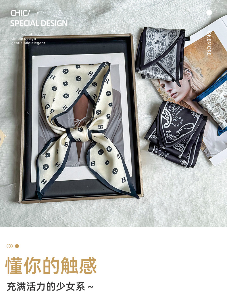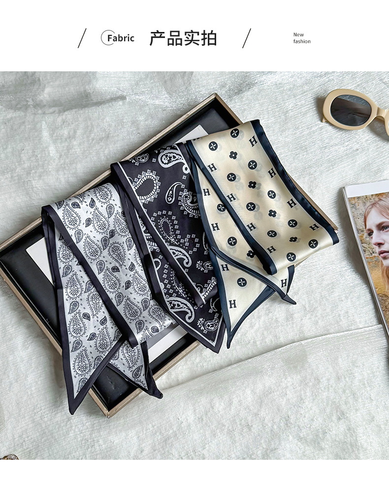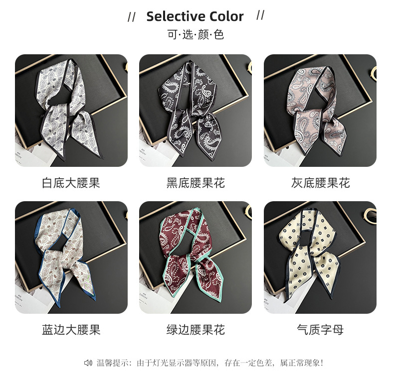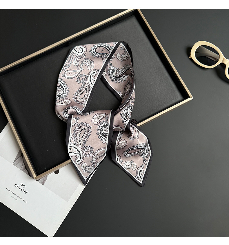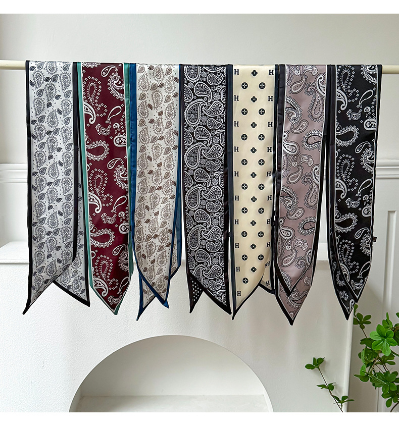 Pañuelo de seda, tira larga, sentido avanzado, nuevo estilo, flor de anacardo, simulación, bufanda de seda, decoración de serpentina, bolsa de atar, cinturón de decoración de cinta