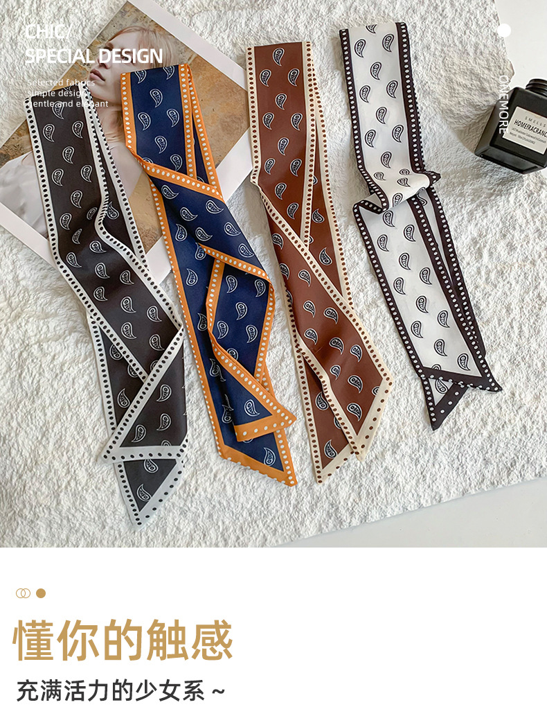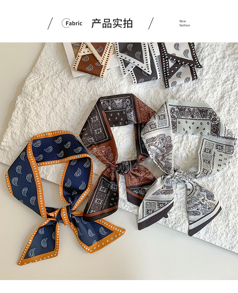 Bufanda de seda, tira larga, sentido de alta gama, nuevo estilo, viaje de primavera y verano, bolsa de atar para el cabello, cinta decorativa, correa para el cabello de moda multifuncional, atar el cabello
