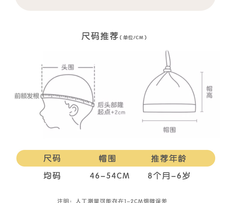 8 meses - 5 años (46 - 54cm) - Código medio (perímetro ajustable del sombrero)