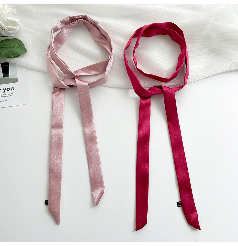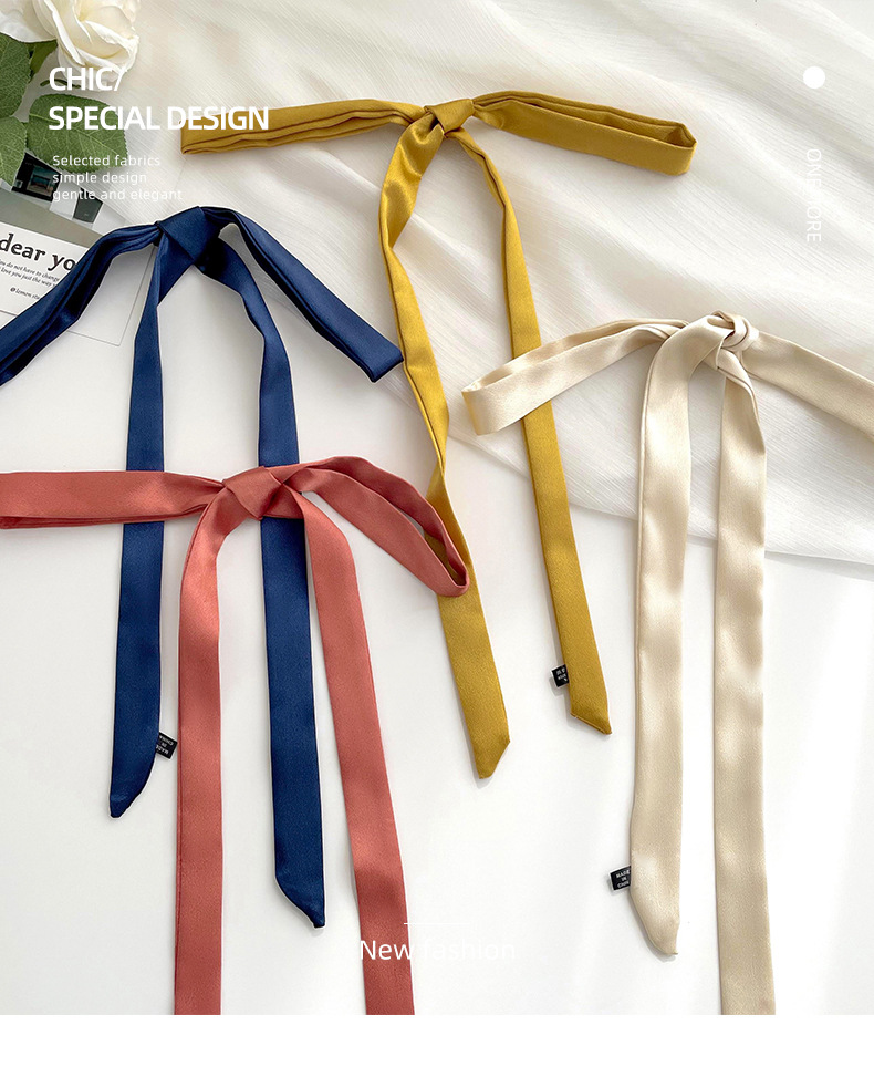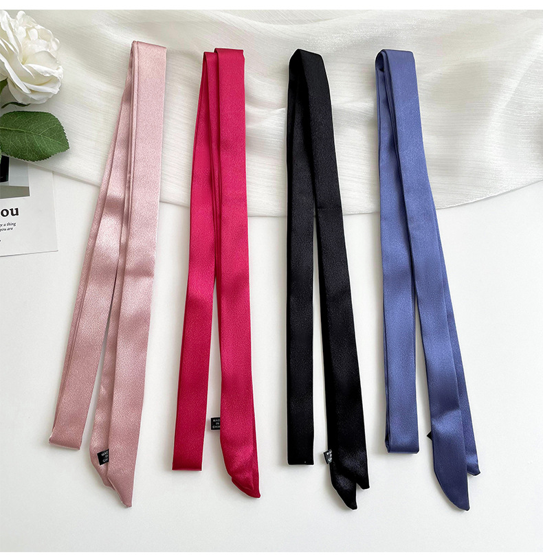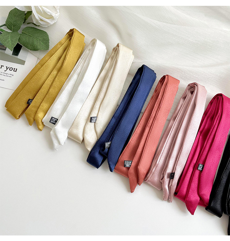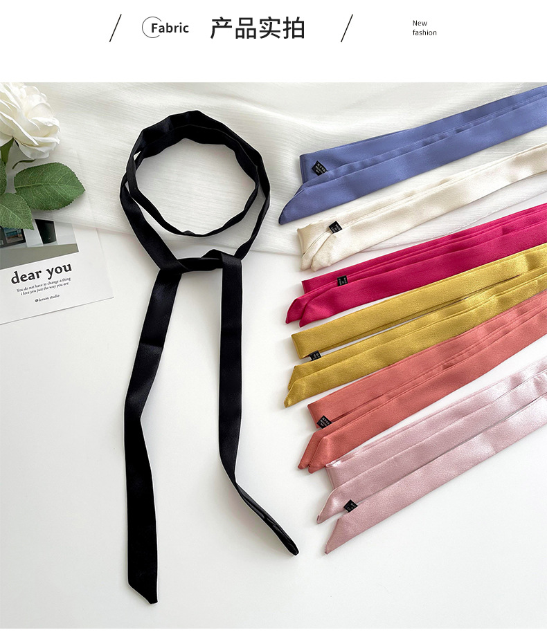 Estilo coreano de color sólido delgada estrecha larga bufanda de seda de las mujeres todo fósforo decorativo pajarita corbata de pelo bolsa pequeña bufanda de seda cinta tocado