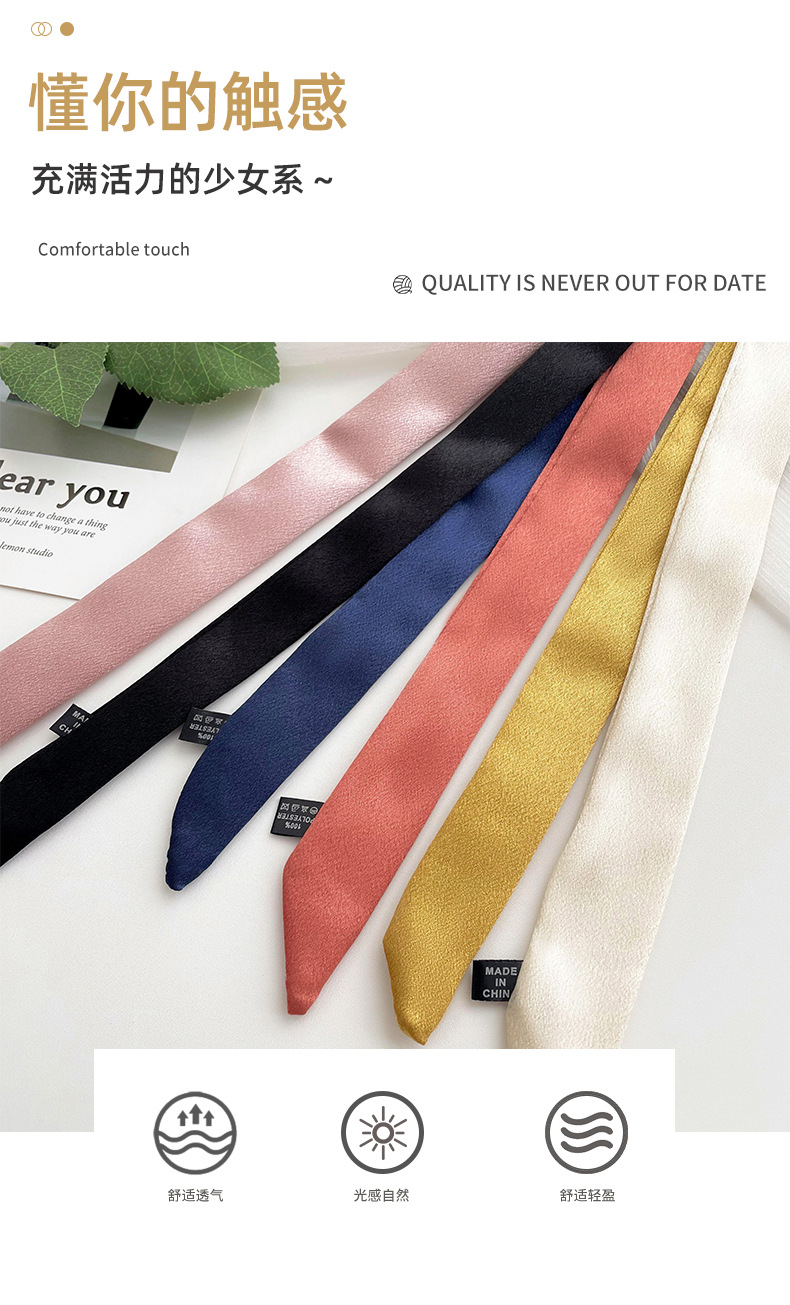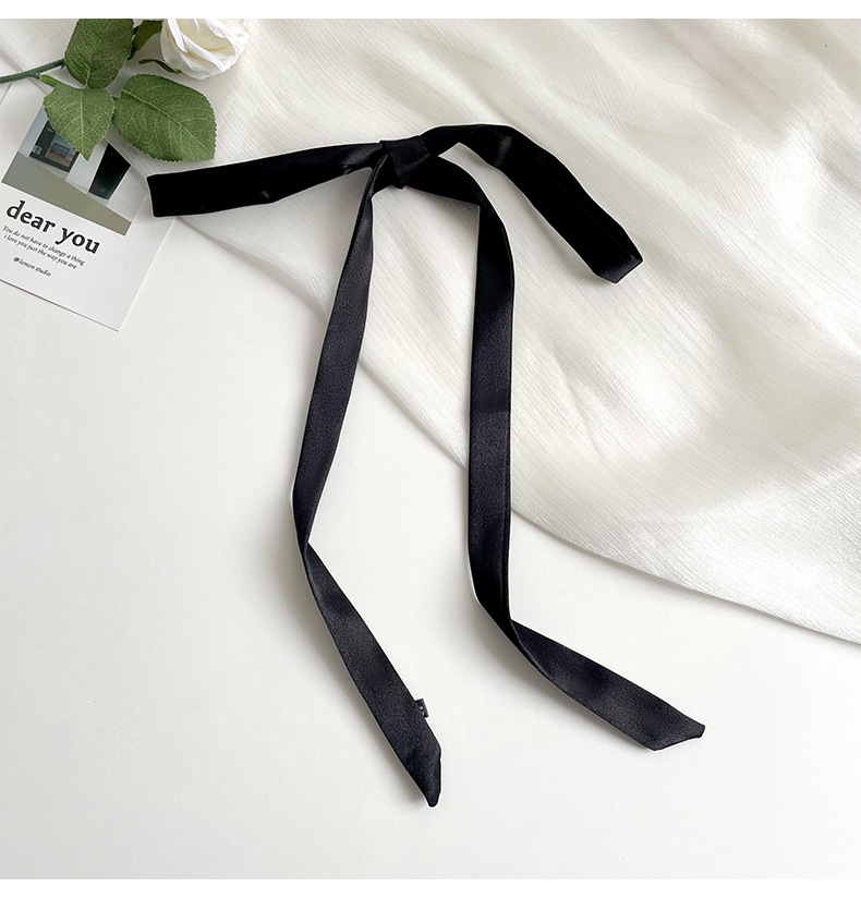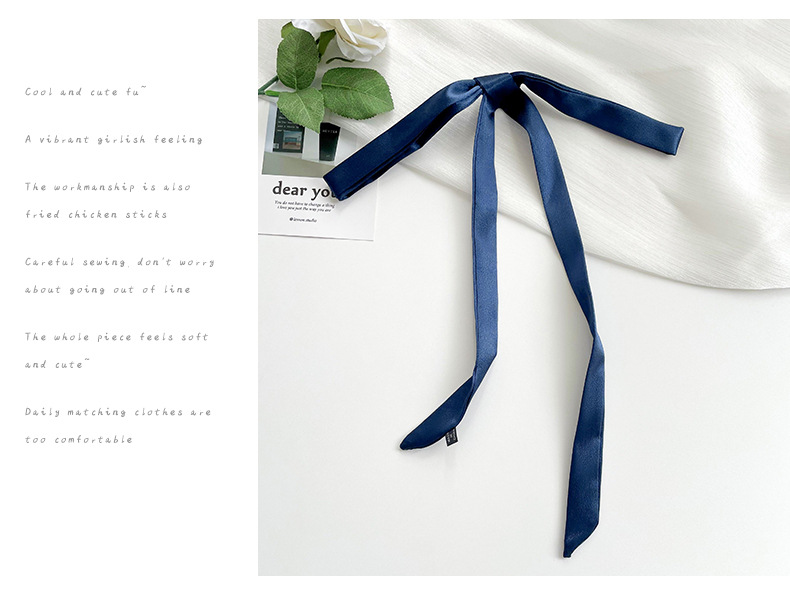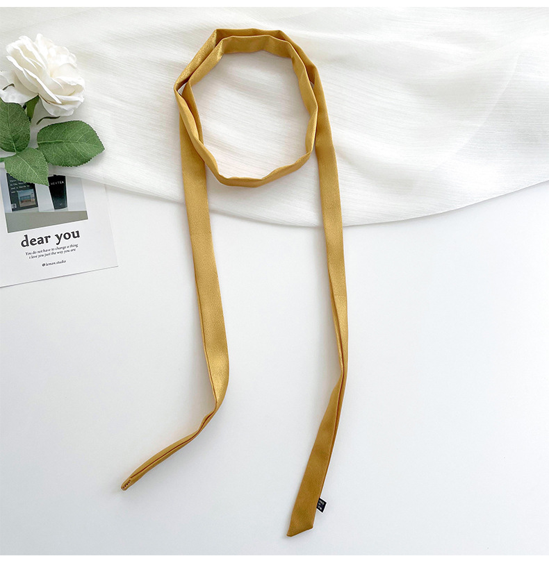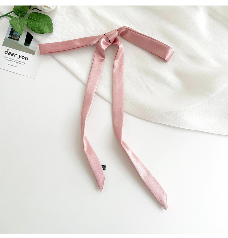 Estilo coreano de color sólido delgada estrecha larga bufanda de seda de las mujeres todo fósforo decorativo pajarita corbata de pelo bolsa pequeña bufanda de seda cinta tocado