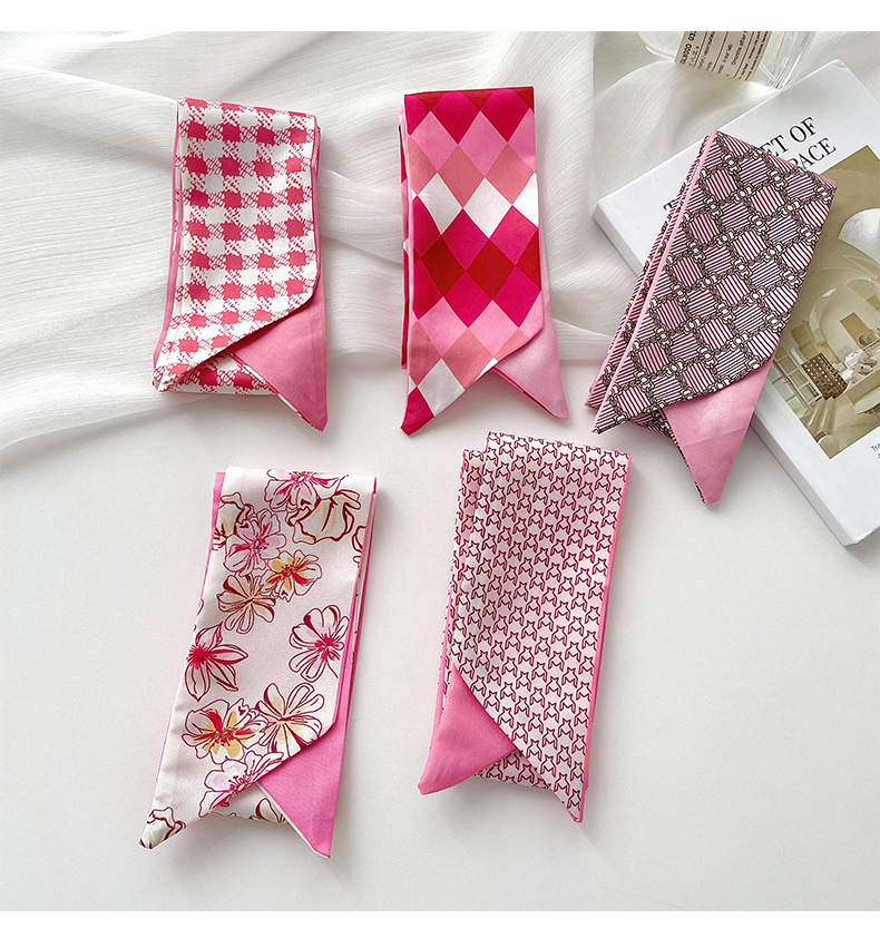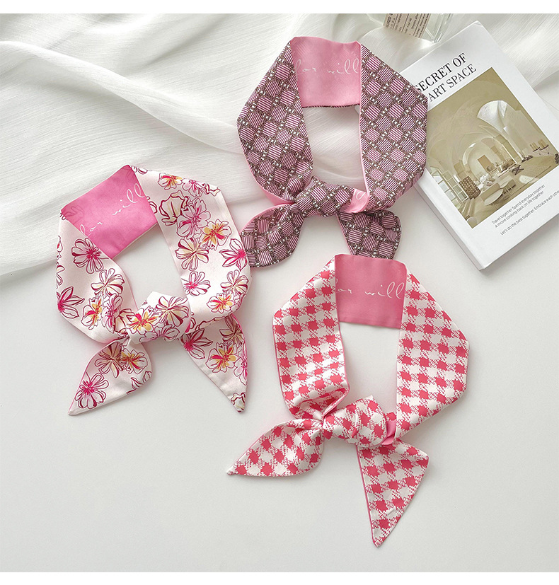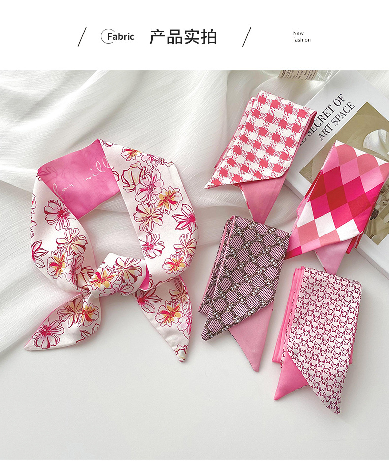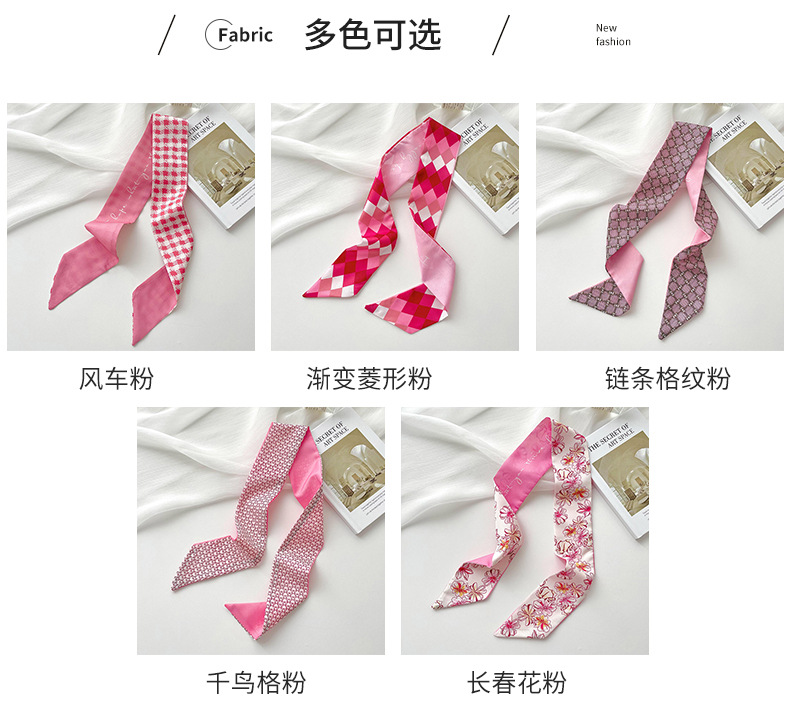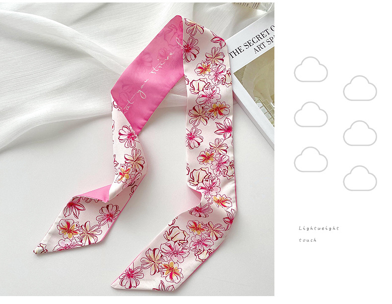 Rosa pequeña flor delgada estrecha bufanda de seda larga primavera y verano versátil pelo empate bolsa decorativa bufanda banda de pelo cinta tocado