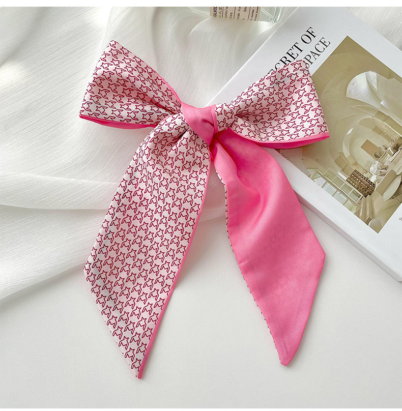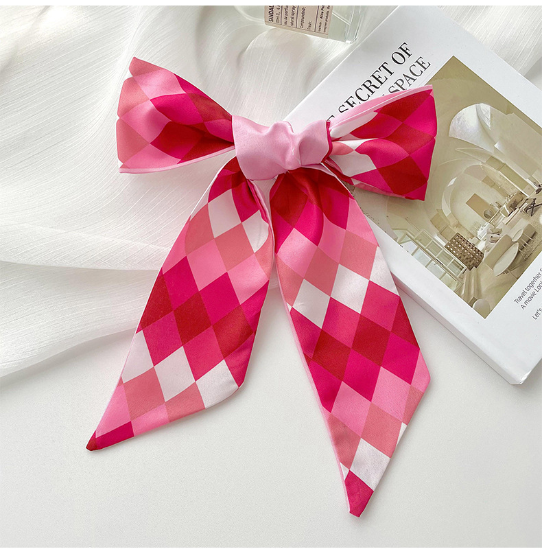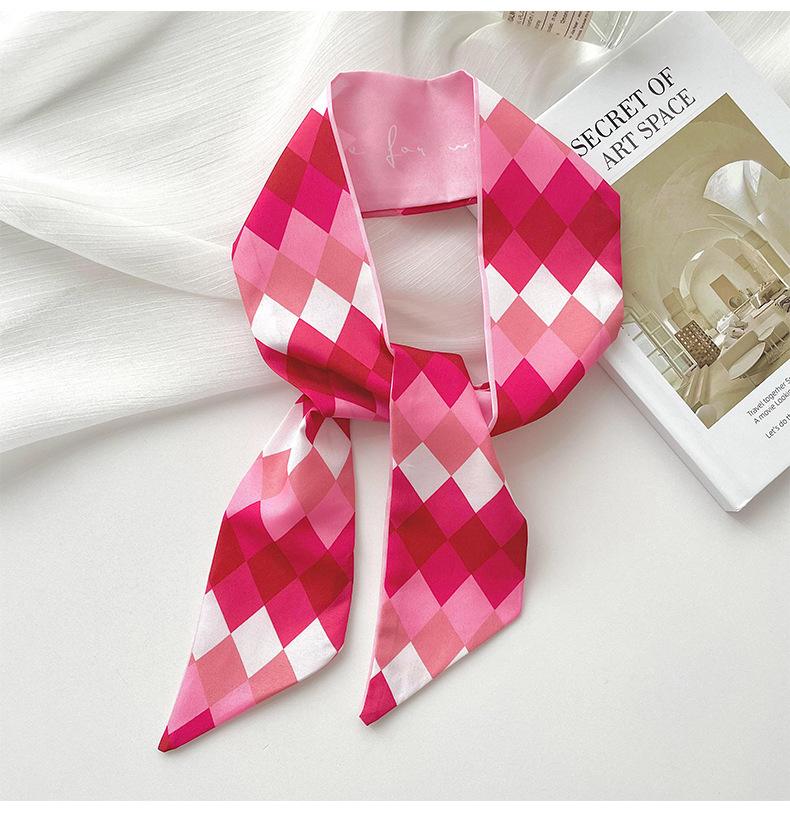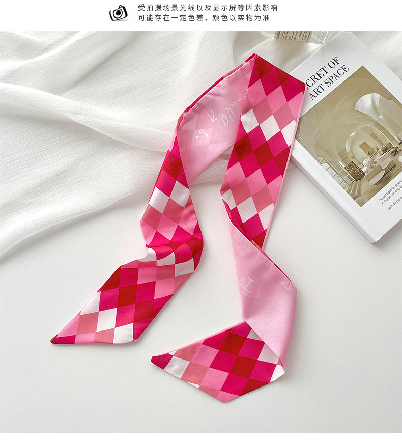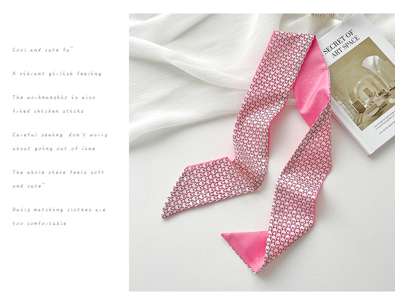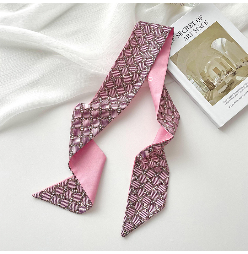 Rosa pequeña flor delgada estrecha bufanda de seda larga primavera y verano versátil pelo empate bolsa decorativa bufanda banda de pelo cinta tocado