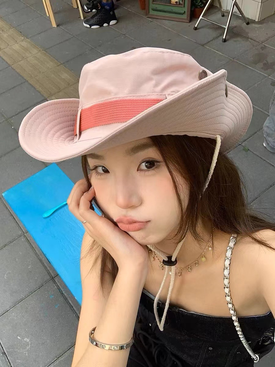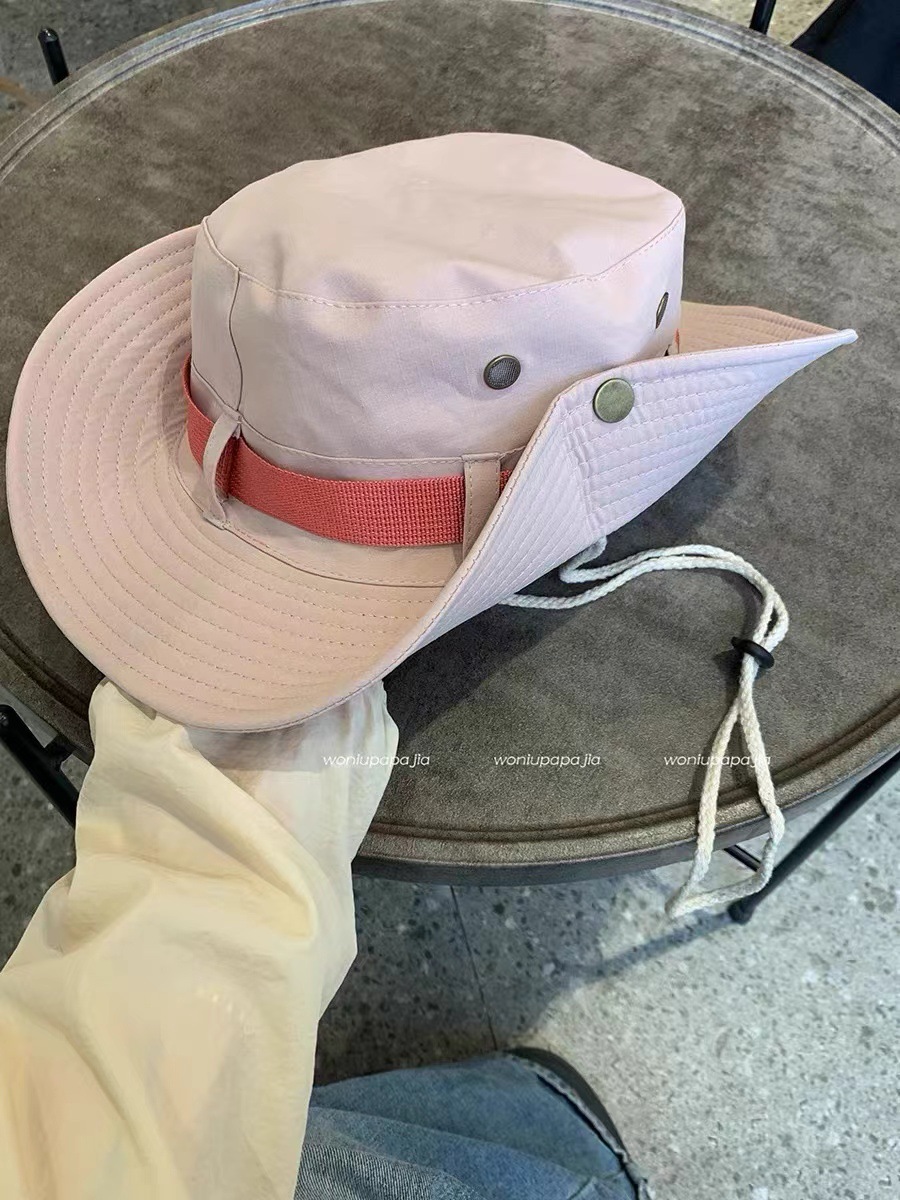 Sombrero de montañismo al aire libre femenino rosa ala grande sombrero de pescador japonés sombrero de sol protección solar sombrero de viaje camping occidental sombrero de vaquero masculino