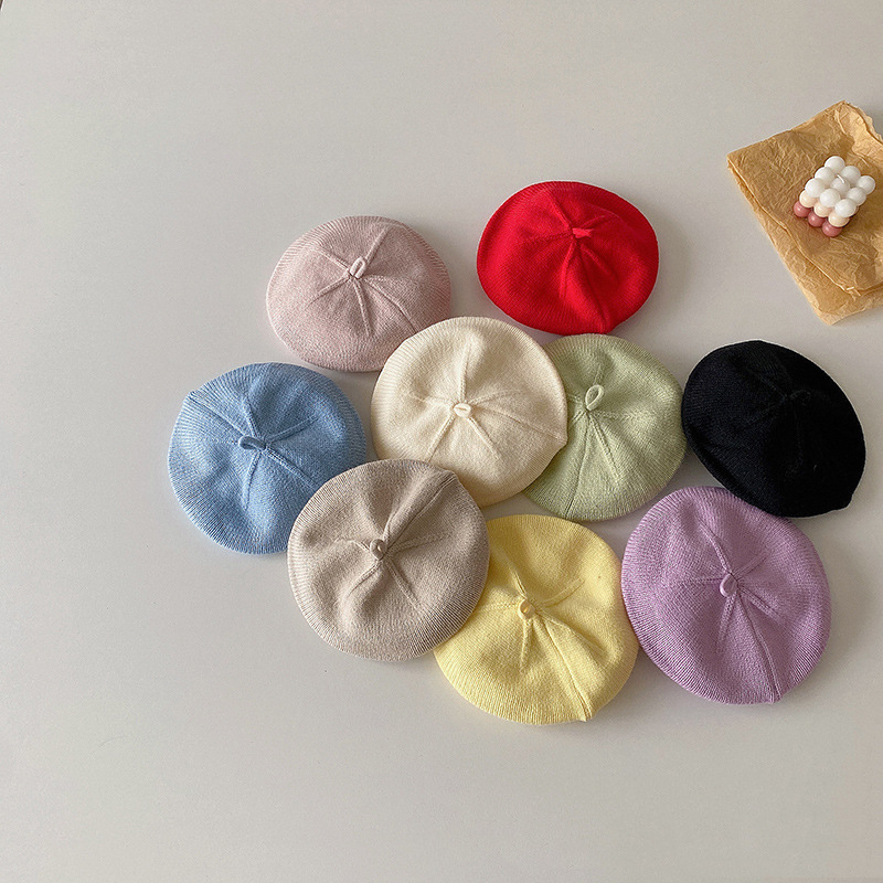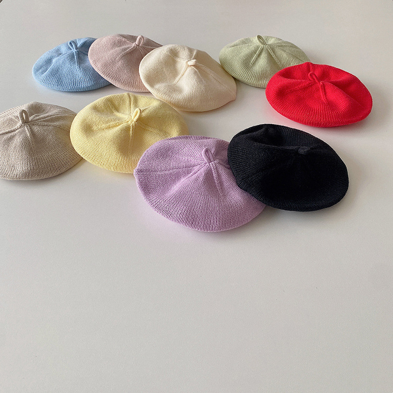 Bebé otoño crema boina color sólido sombrero de punto bebé estilo occidental pintor sombrero niños y niñas todo partido sombrero