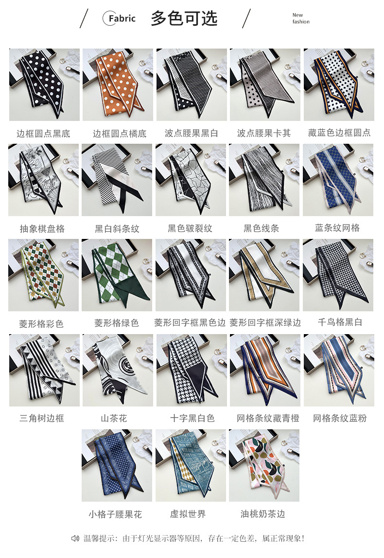 Nueva moda, punto de onda, bufanda de seda larga, delgada y larga, bufanda de seda pequeña multifuncional de primavera y verano biselada, cinturón