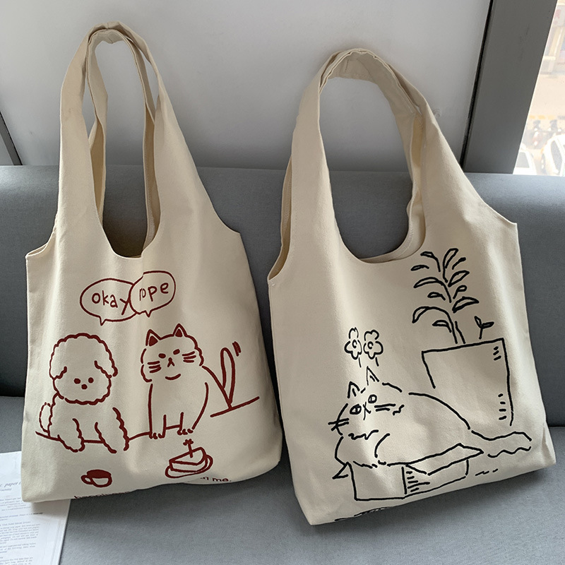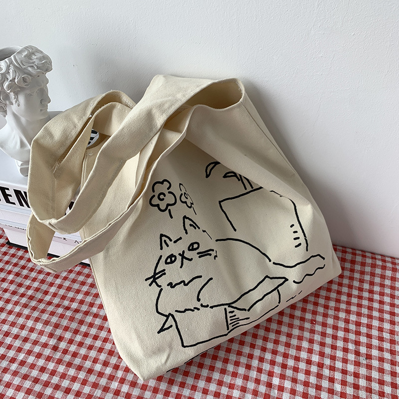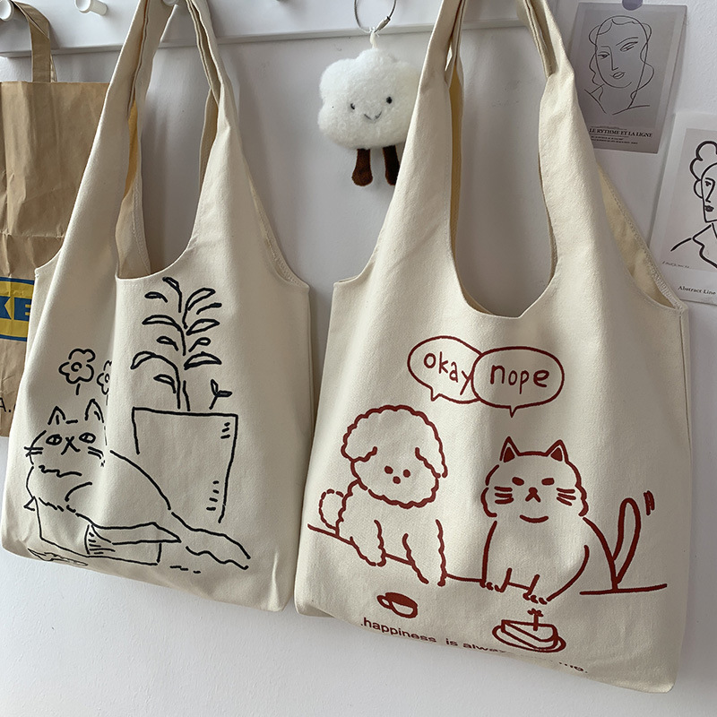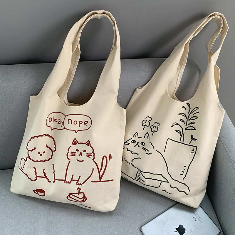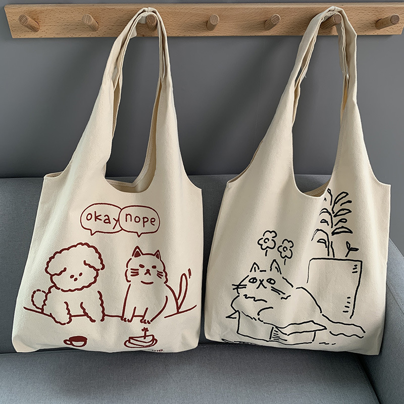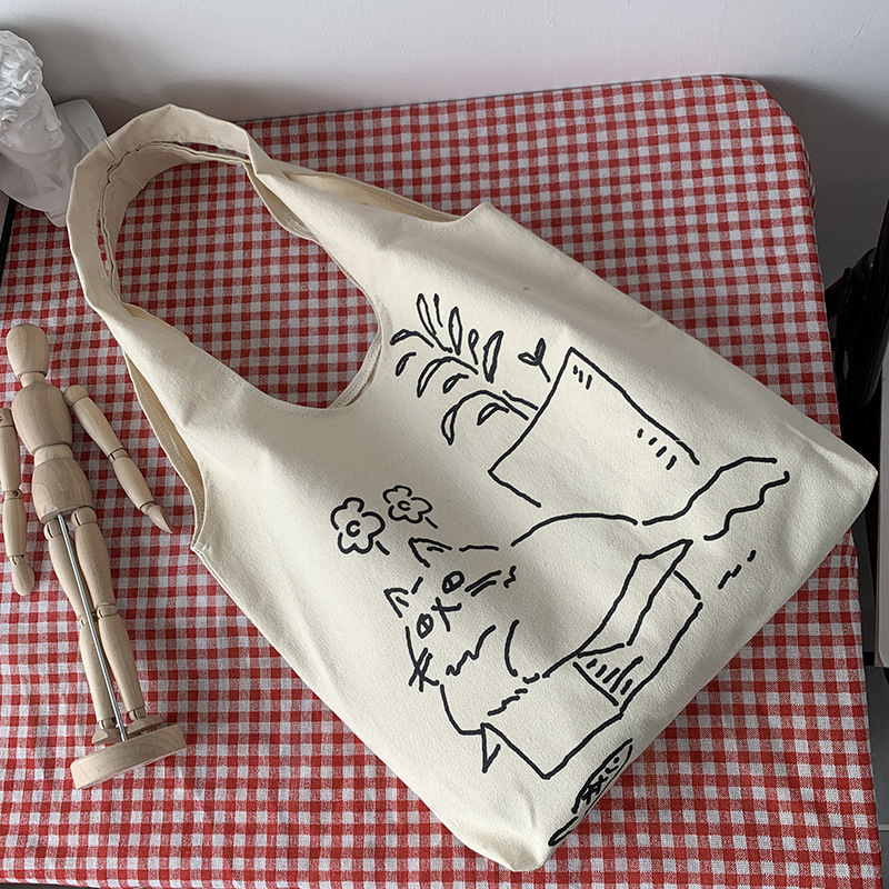 Lindo gato mascota chaleco bolsa de lona bolso japonés simple todo partido artístico de gran capacidad bolso de hombro de las mujeres de verano