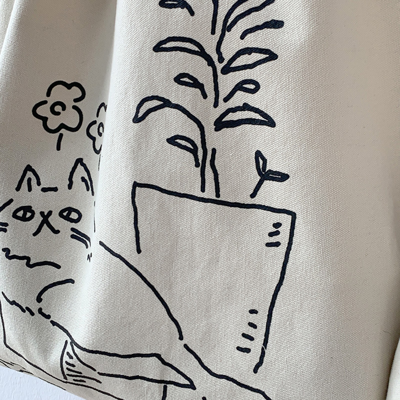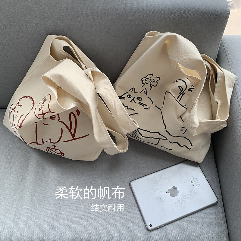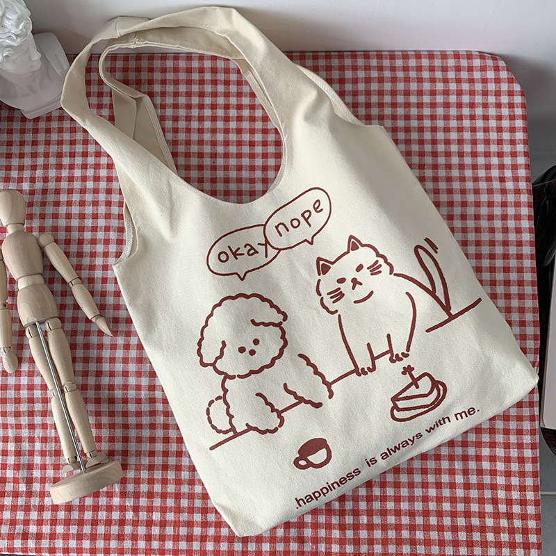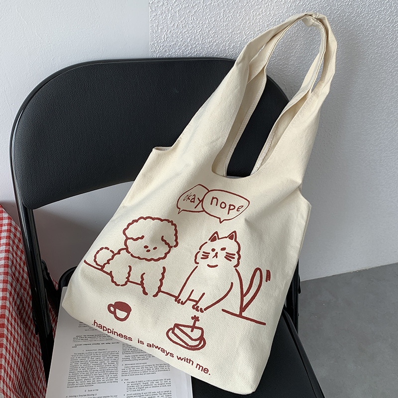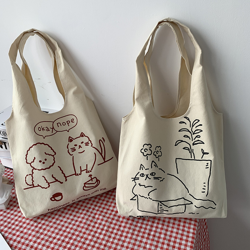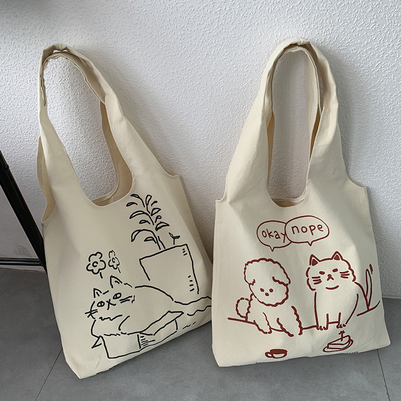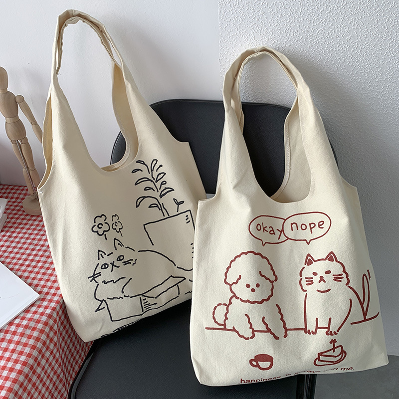 Lindo gato mascota chaleco bolsa de lona bolso japonés simple todo partido artístico de gran capacidad bolso de hombro de las mujeres de verano