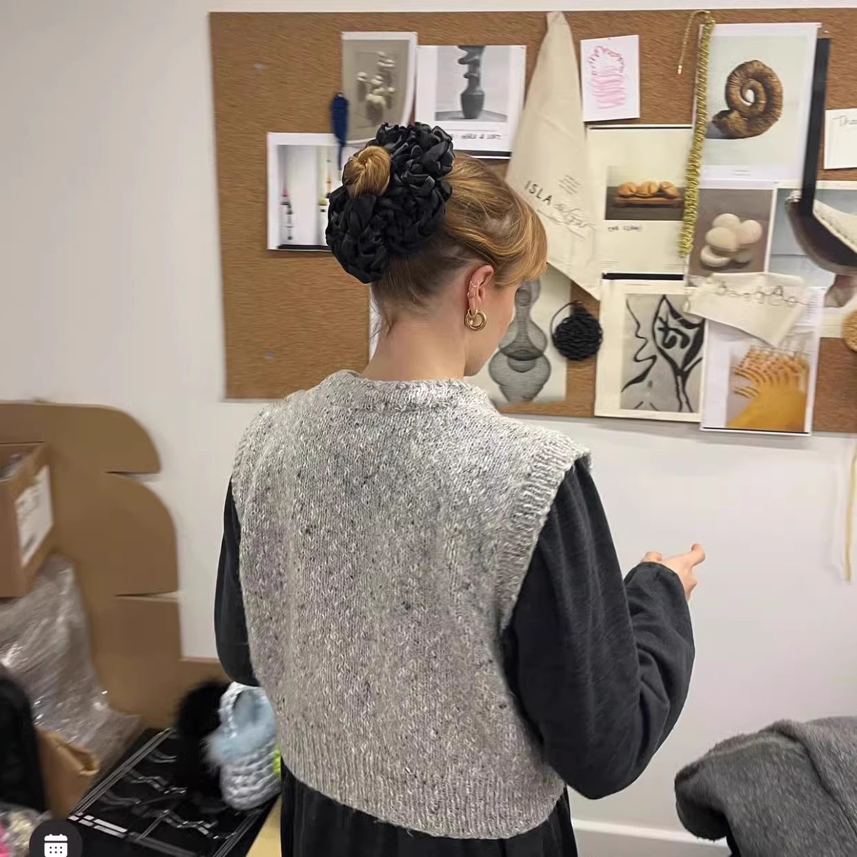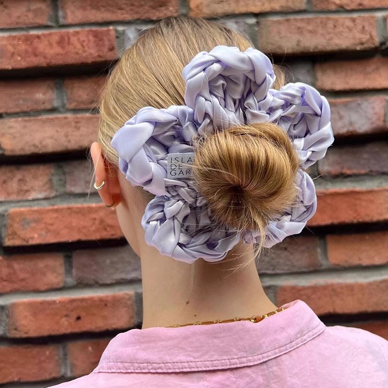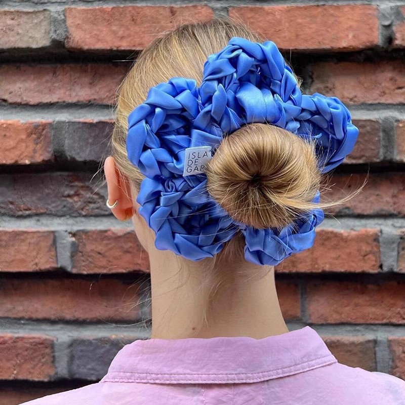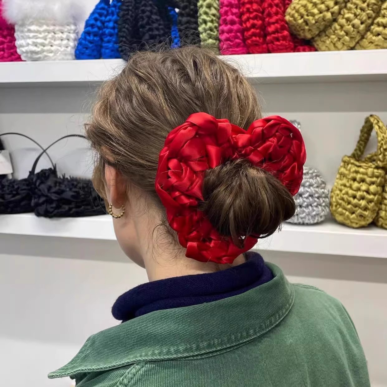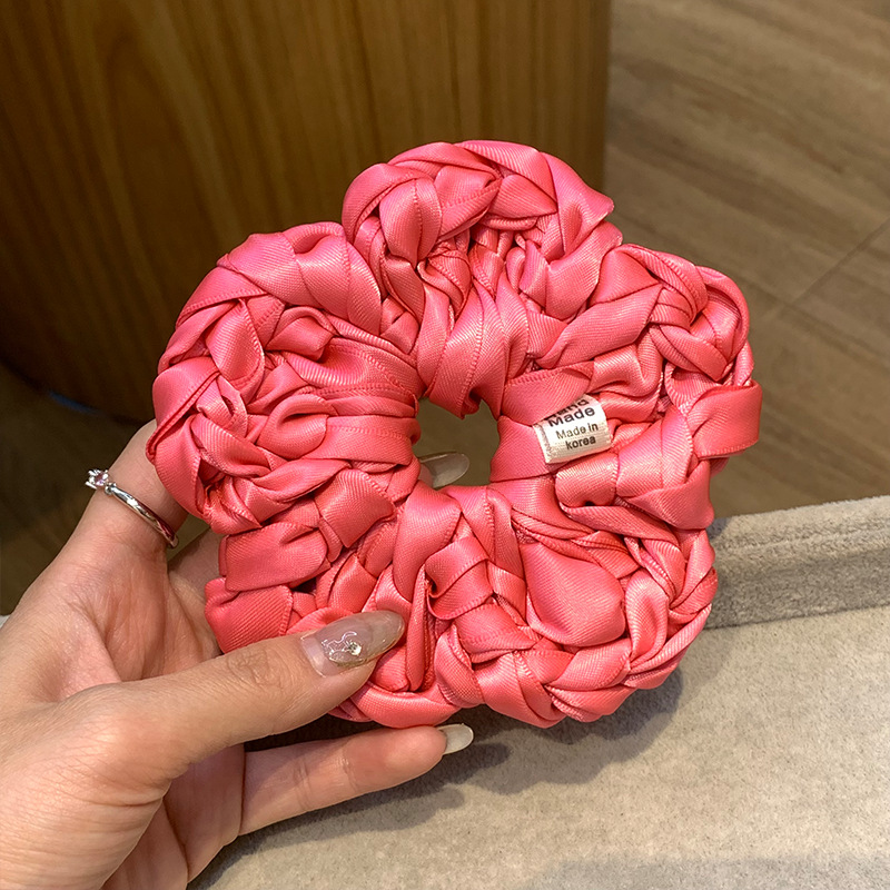 Isladegar blogger con color brillante tejido a mano gran flor amor bola cabeza de caballo anillo de cabello cuerda cabeza
