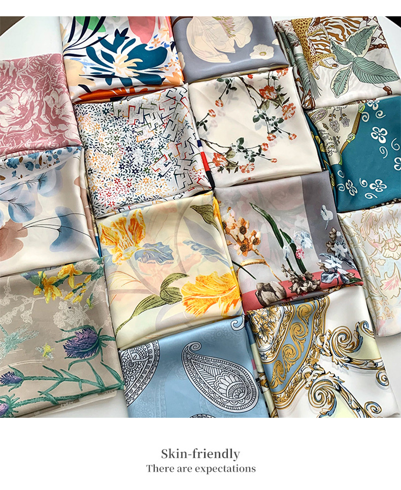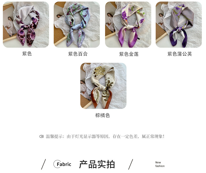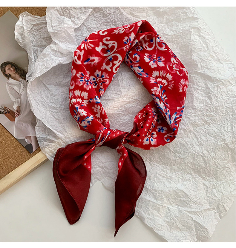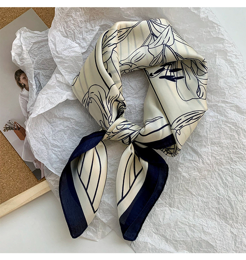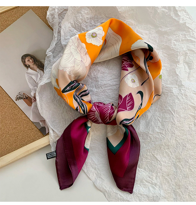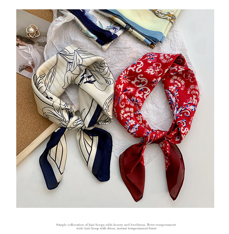 Bufanda de seda, bufanda cuadrada pequeña, sensación premium, nuevo estilo coreano, chal de seda de imitación dulce y fresco, bolso de flores, pañuelo en la cabeza, cinturón para el cabello