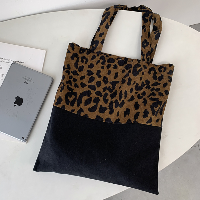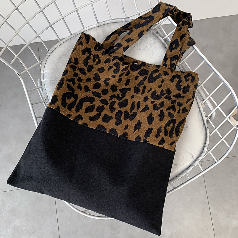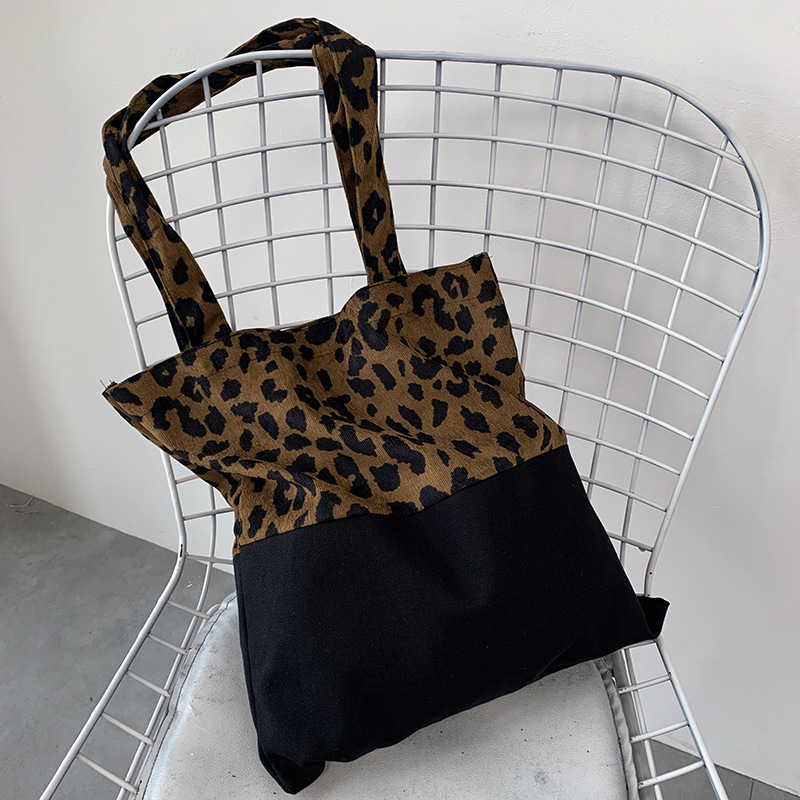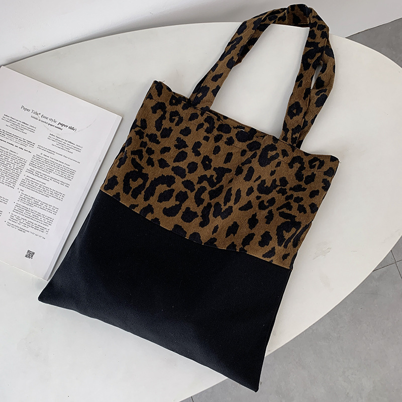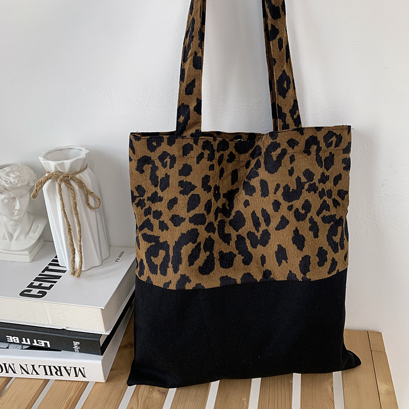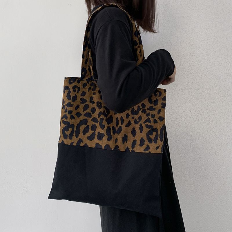 Otoño e Invierno nuevo estampado de leopardo bolsa de lona de las mujeres de hombro de gran capacidad de diseño artístico ins bolsa estudiante bolsa de clase