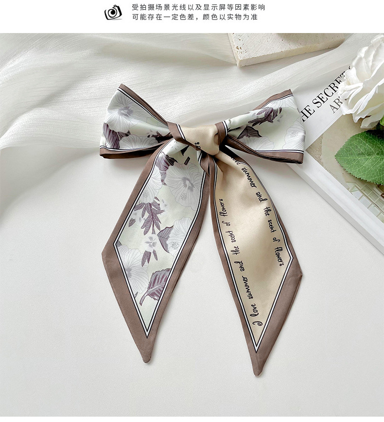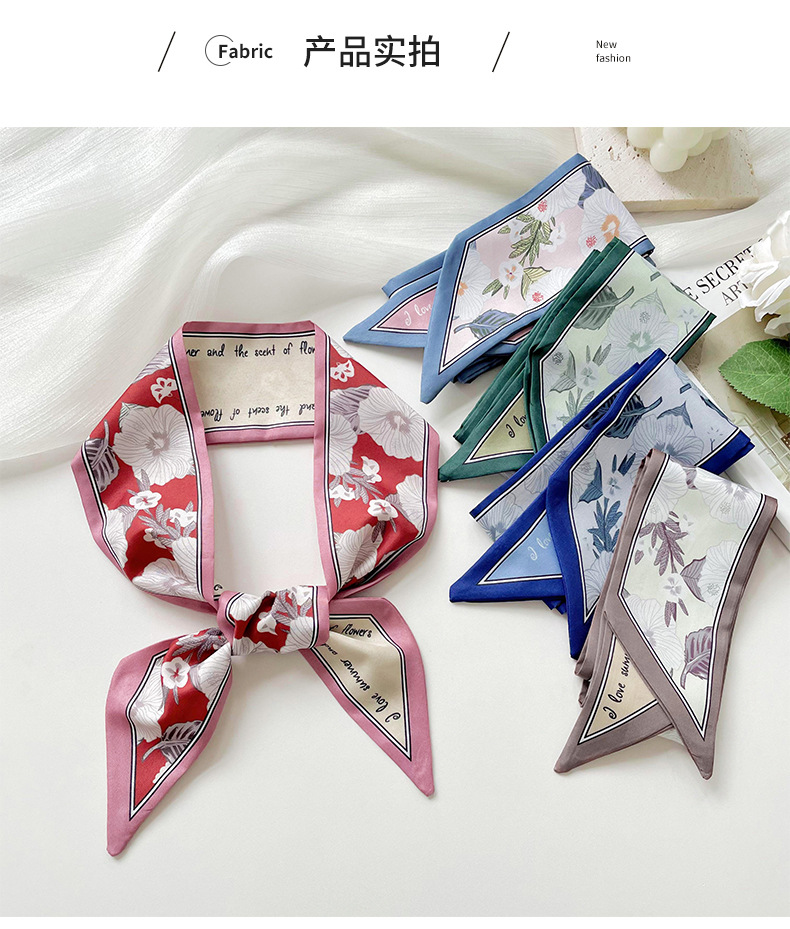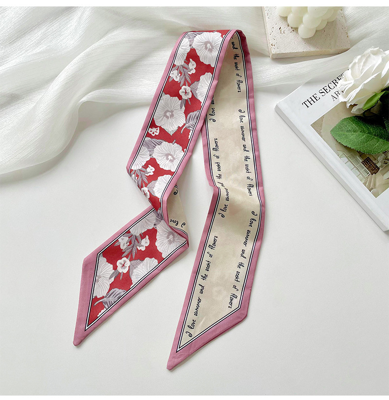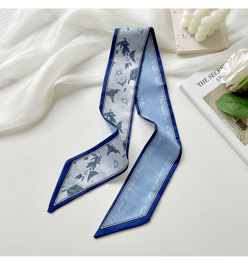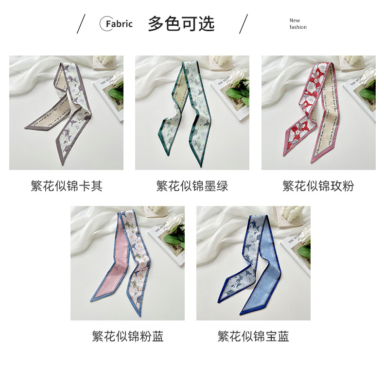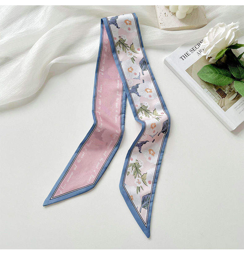 Delgada estrecha larga pequeña bufanda de seda para las mujeres primavera y verano todo-juego planta flor corbata de pelo bolsa cinta decorativa banda de pelo regalo