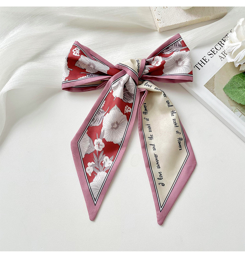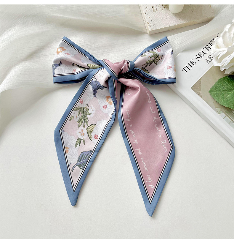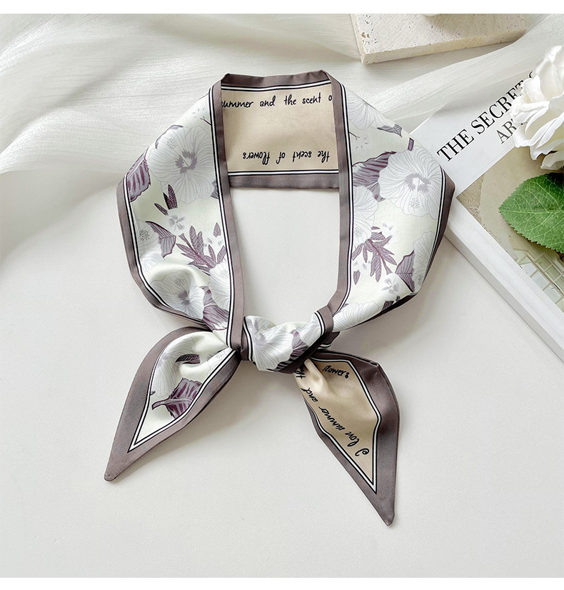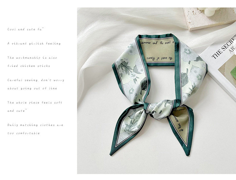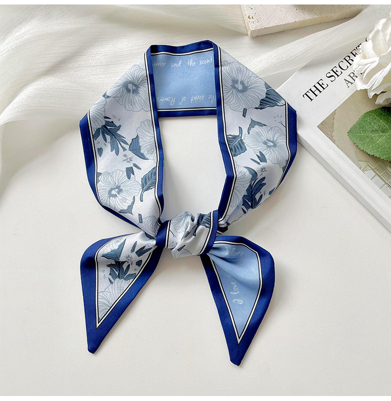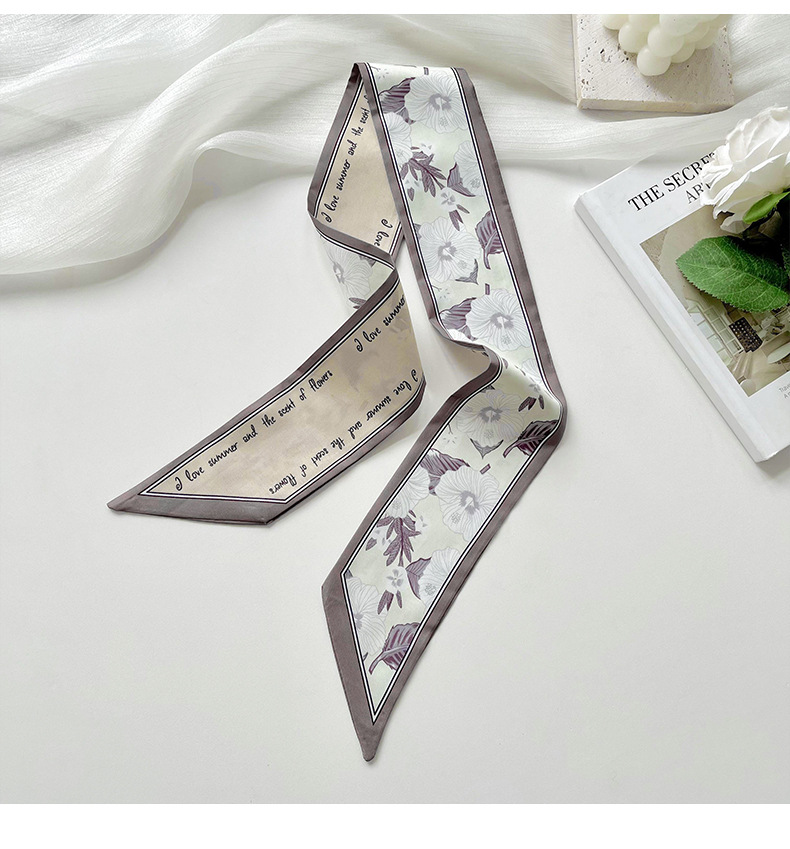 Delgada estrecha larga pequeña bufanda de seda para las mujeres primavera y verano todo-juego planta flor corbata de pelo bolsa cinta decorativa banda de pelo regalo