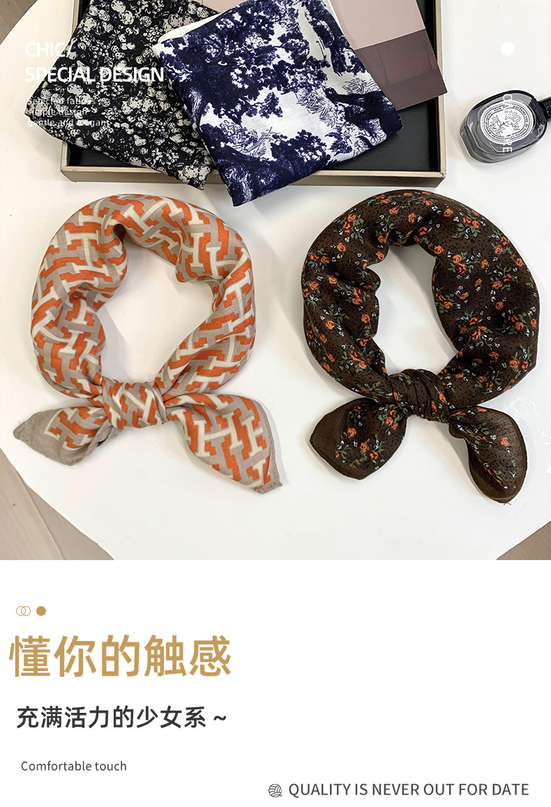 Bufandas de seda cuadrada alta sensación2025 nuevo estilo retro impresión de moda elegante seda de imitación bufandas de cuello bufandas de seda al por mayor