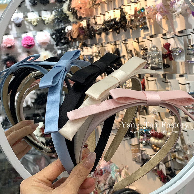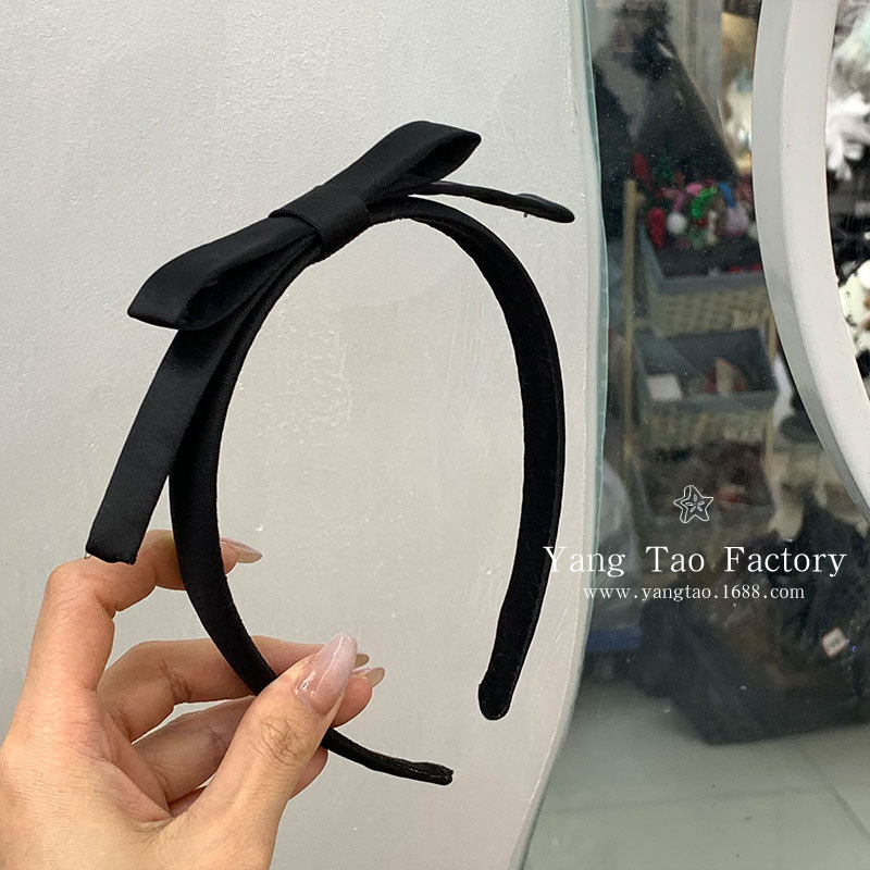 Red popularidad Yu Shuxin reducción de edad satén negro arco alto cráneo craneal banda de cabello de cinta francesa banda de cabello negro