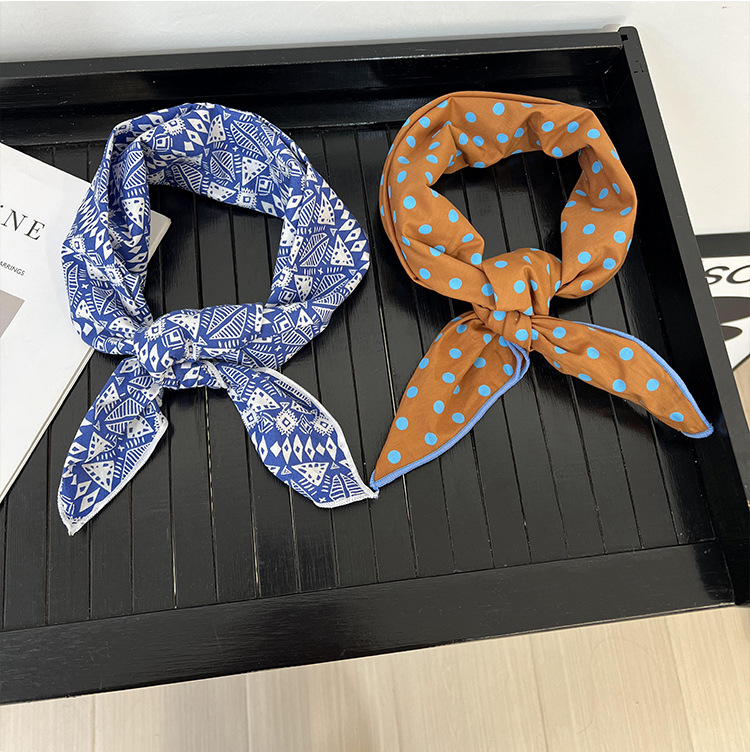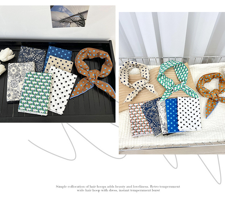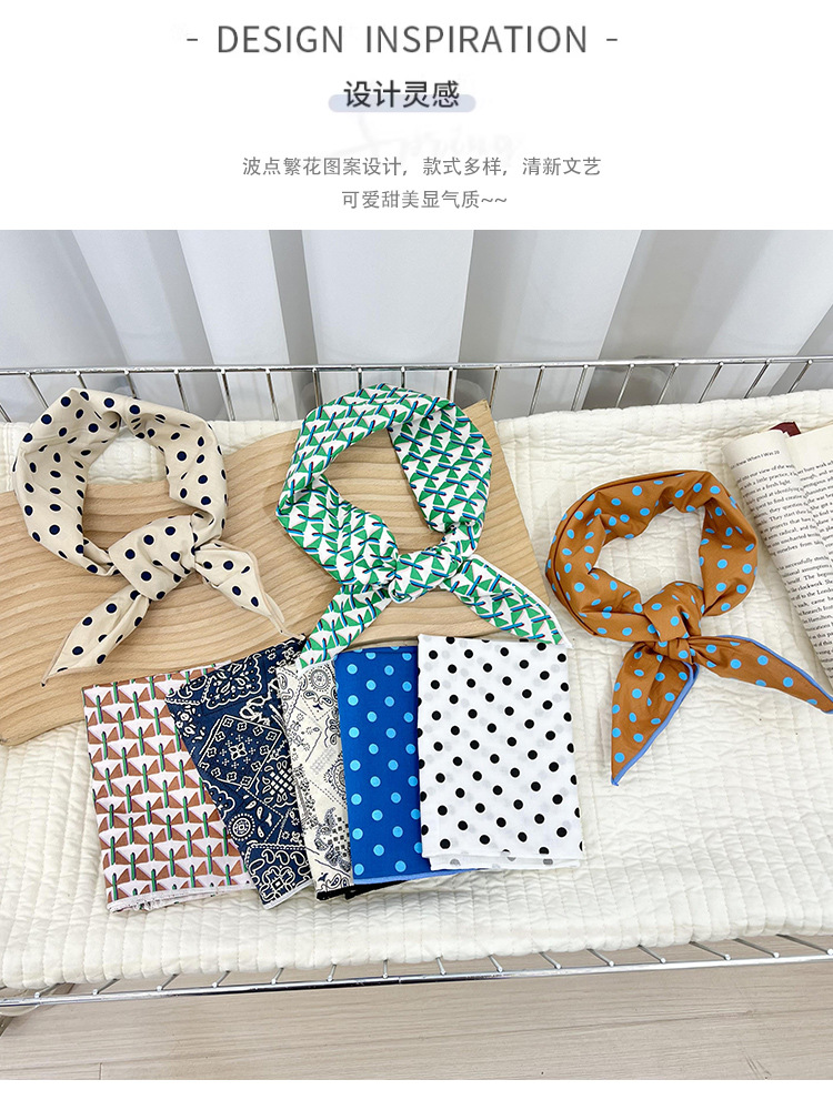 60 bufanda cuadrada pequeña versión coreana de la bufanda de seda pequeña de lunares blancos y negros decorativos de todo fósforo