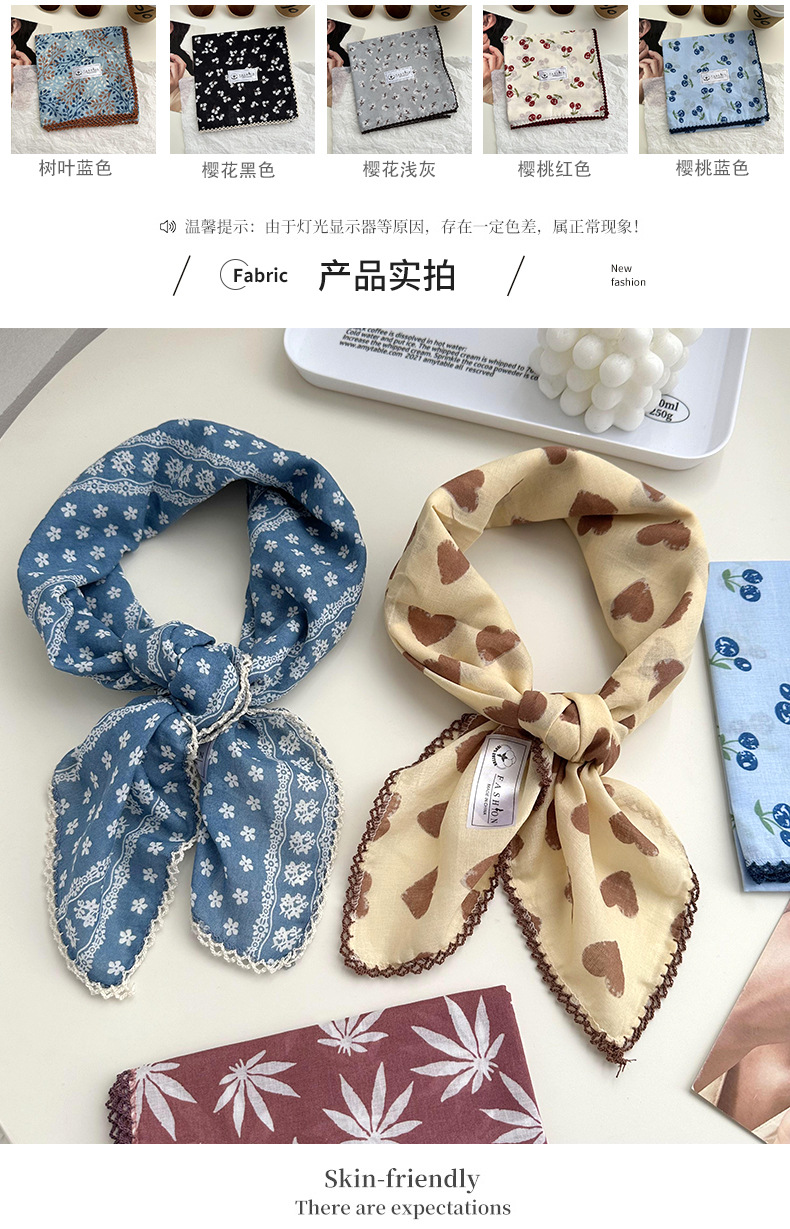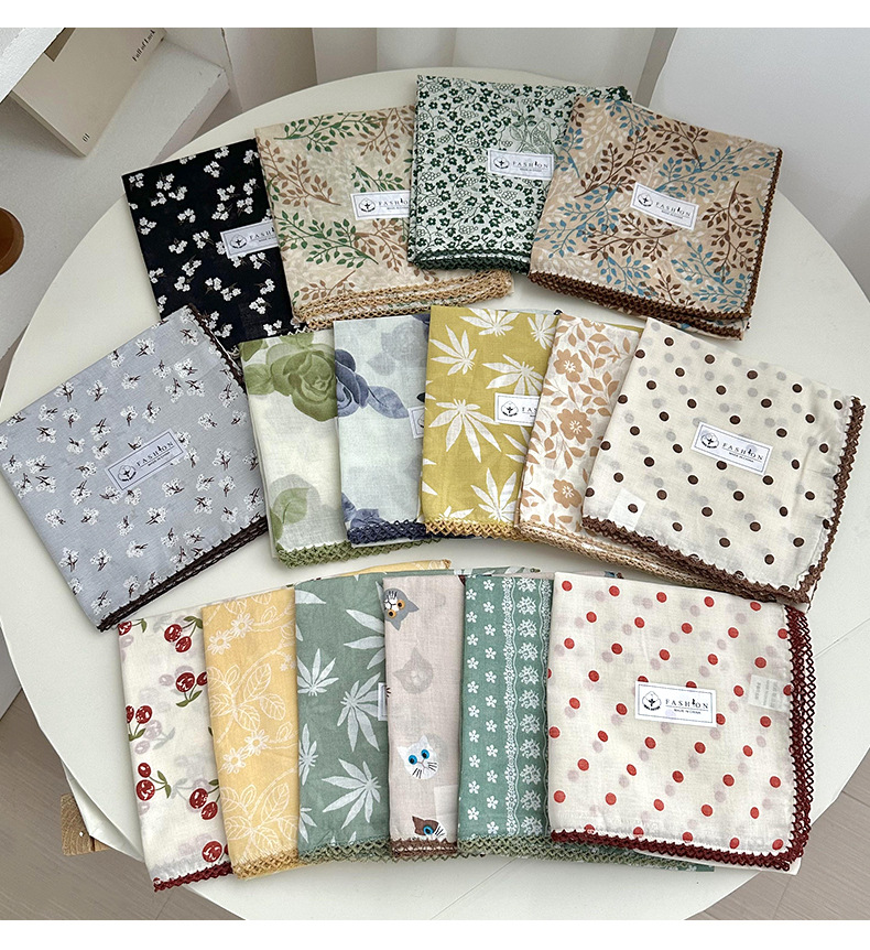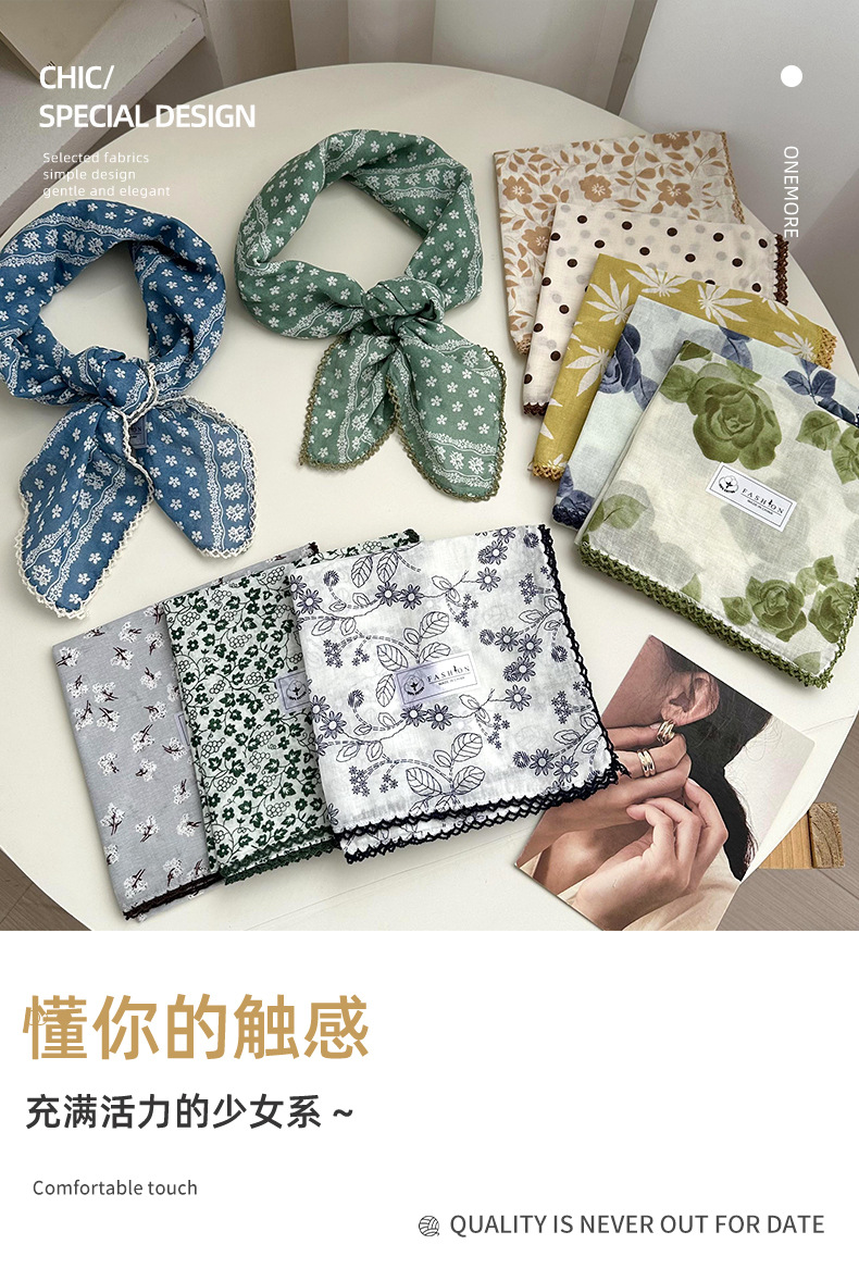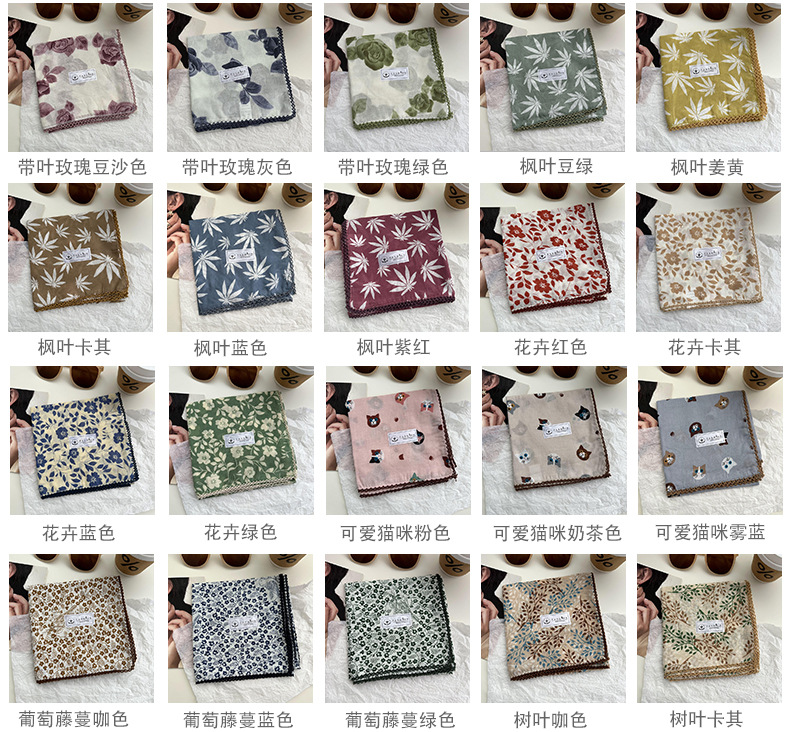 Tanta cuadrada para mujeres 2025 verano y otoño decoración retro pequeña bufandas coreanas nuevo estilo universal literatura y arte de algodón triturado collar