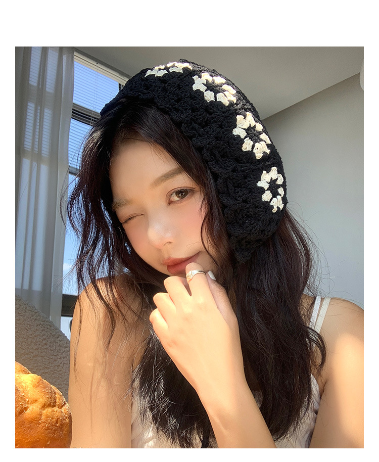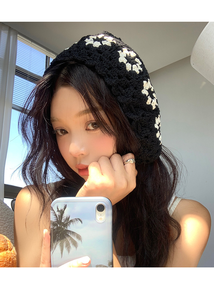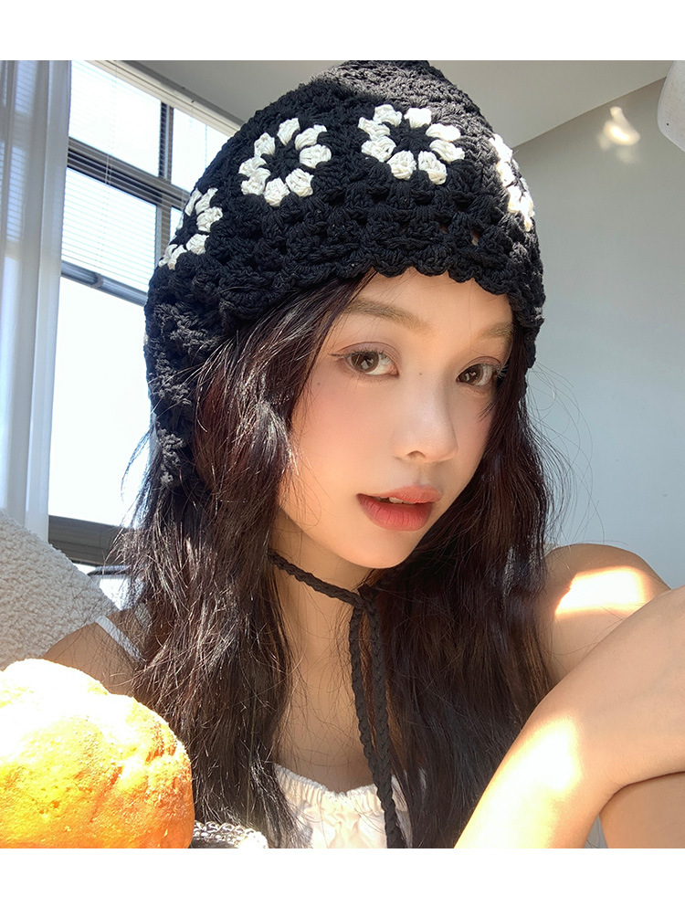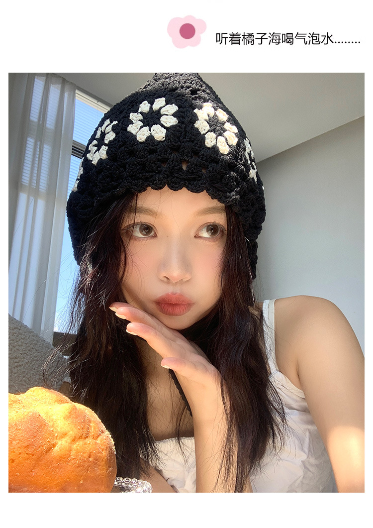 Flor hueca hecha a mano de punto sombrero de lana para mujeres ins Internet celebridad delgada todo partido cara-mirando pequeño sombrero de pescador japonés moda