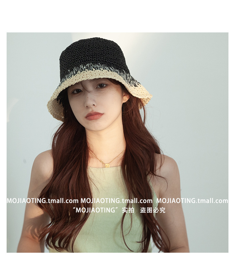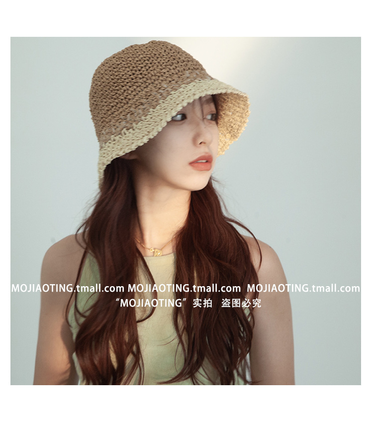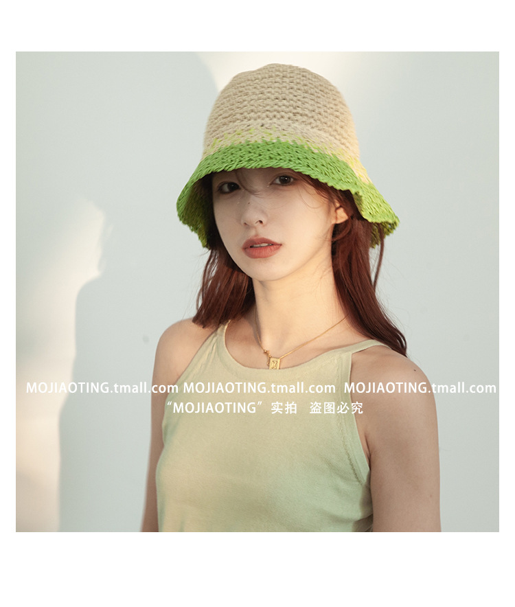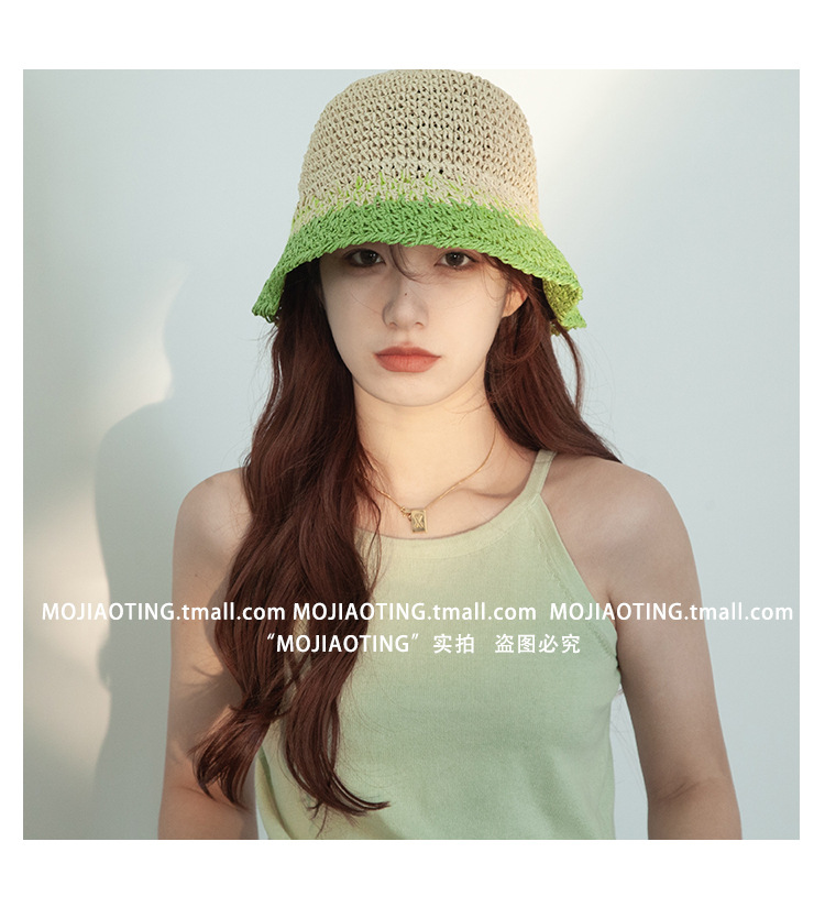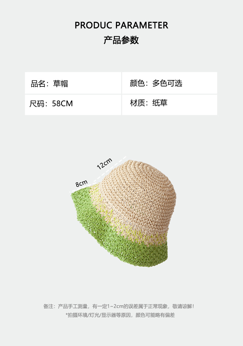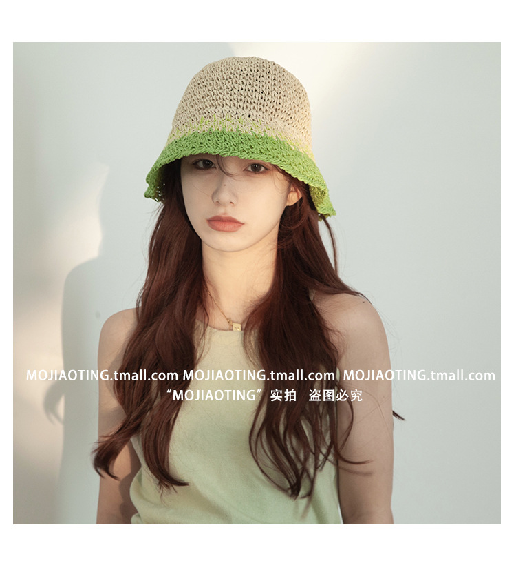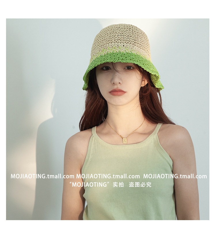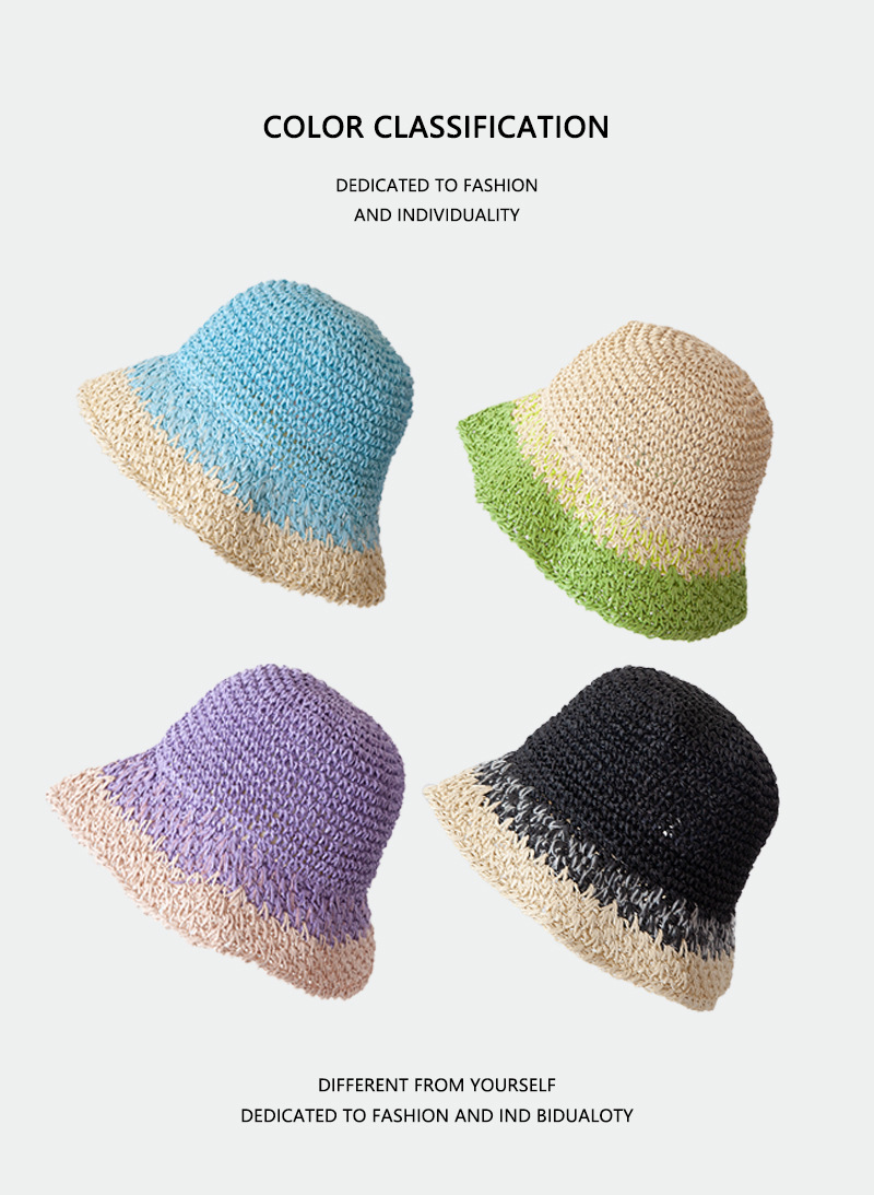 sombrero de paja de verano para mujeres vacaciones de playa transpirables no sofocantes balde de paja de color sombrero solar