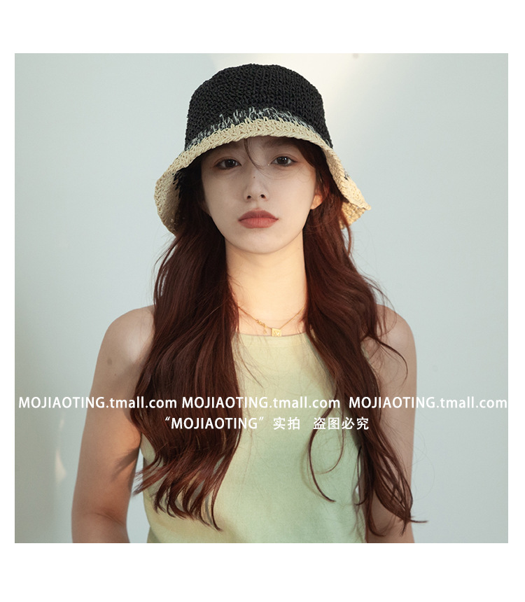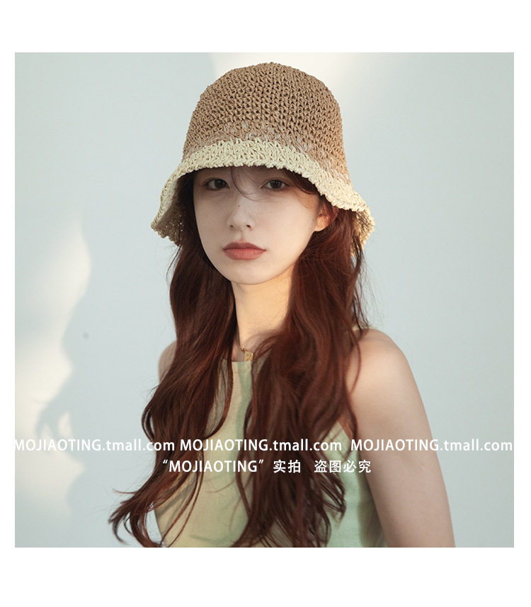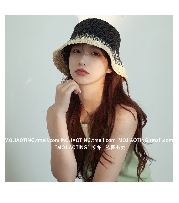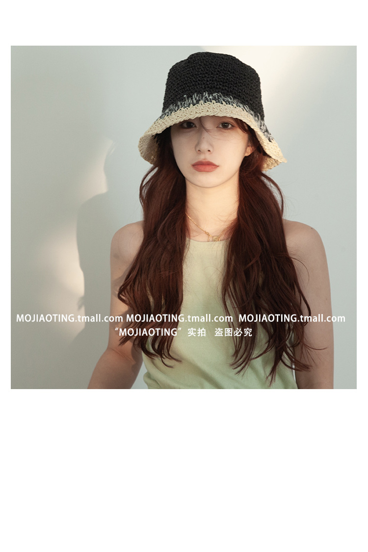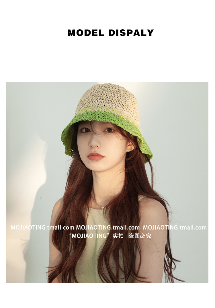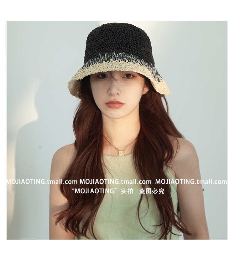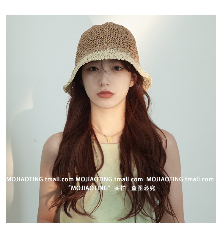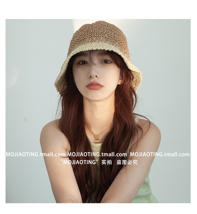 sombrero de paja de verano para mujeres vacaciones de playa transpirables no sofocantes balde de paja de color sombrero solar