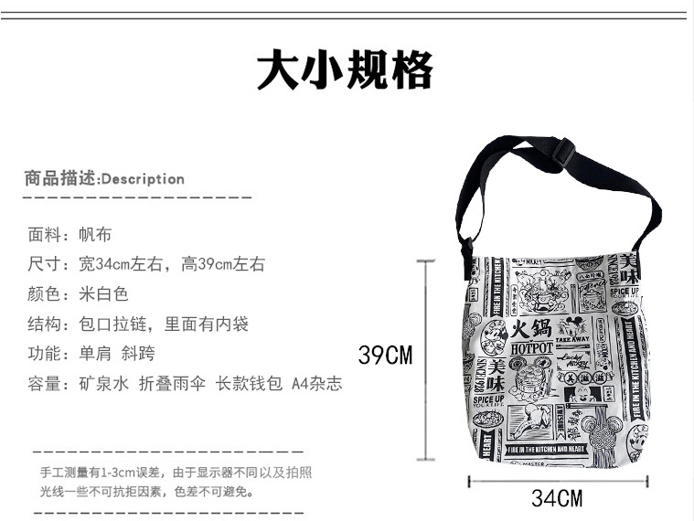 Otoño e Invierno engrosada de gran capacidad bolsa de lona femenina bolsa de hombro estudiante japonés ins todo partido campus crossbody bolsa grande moda