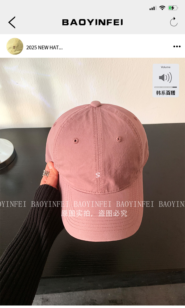 Sombrero de béisbol rosa de letras para mujeres con tapa suave, bordes anchos, cara grande, gorra de lengua de pato, gorra coreana, gorra de cabeza grande