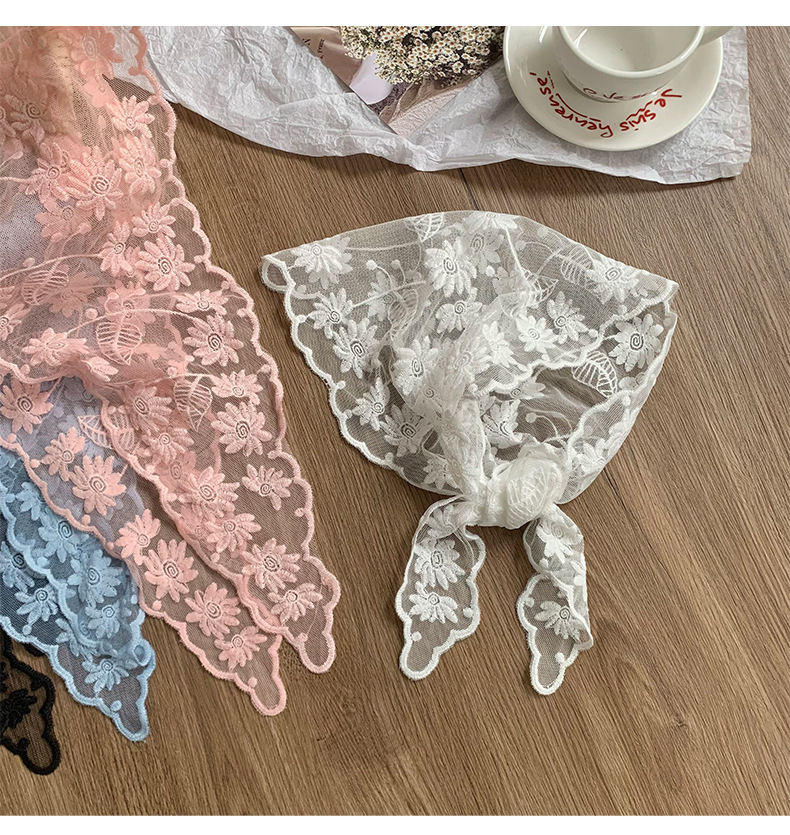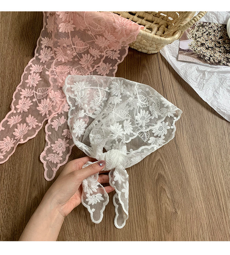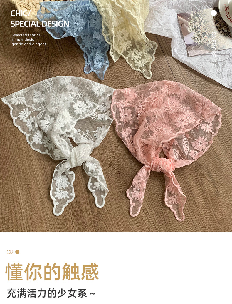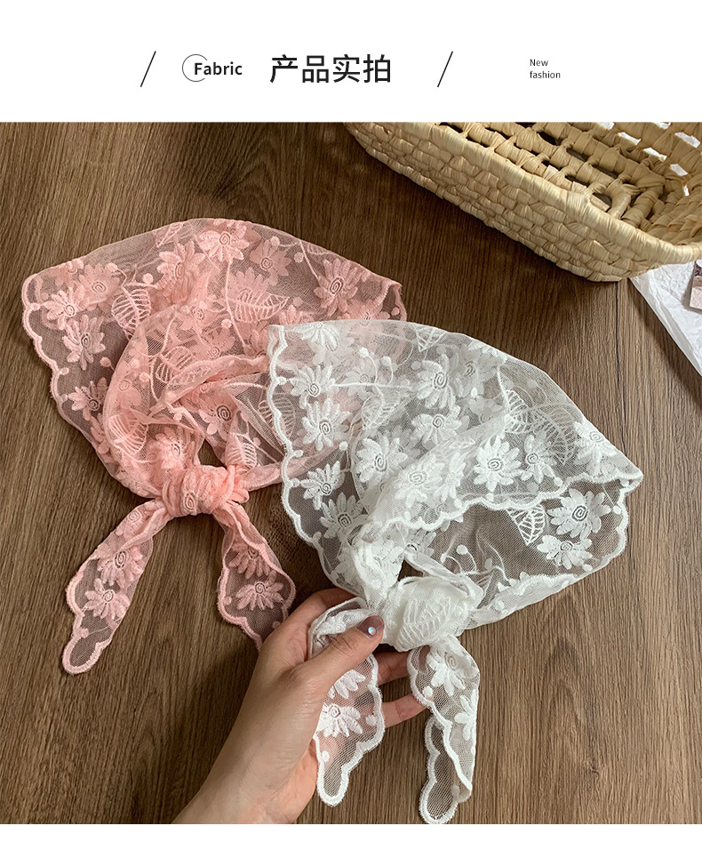 Bufanda triangular, pañuelo en la cabeza, niña de verano, nuevo estilo, protector para el cuello, bufanda pequeña, correa para el cabello dulce, cinta para el cabello, bufanda de seda de encaje, cintura