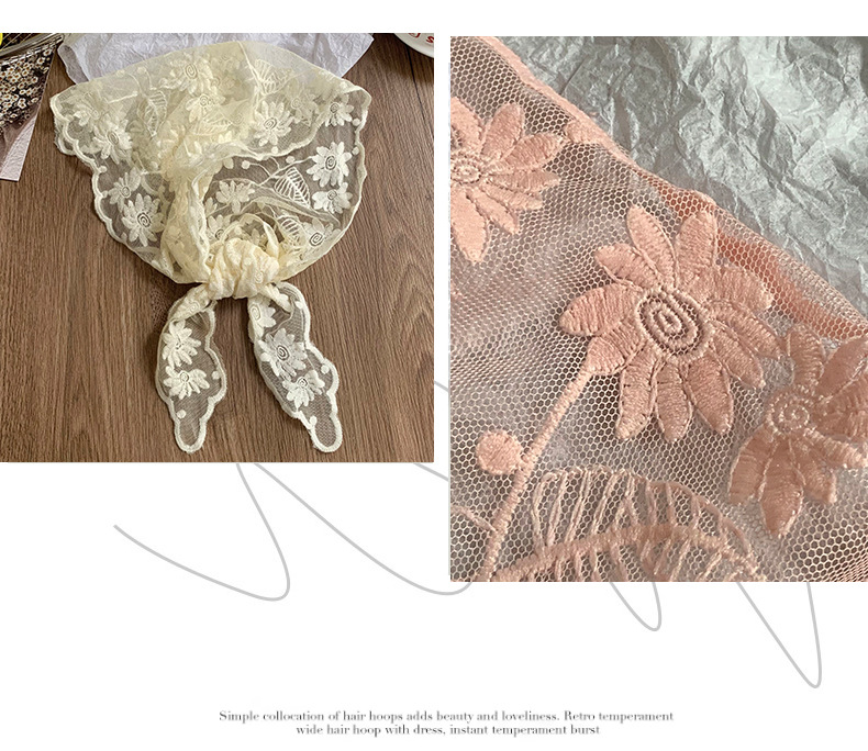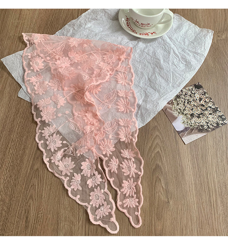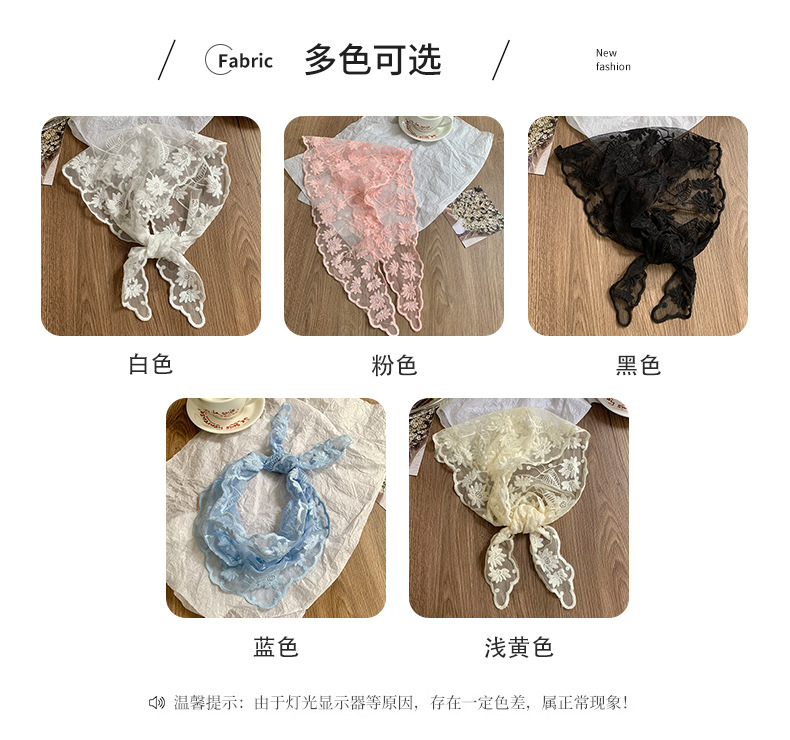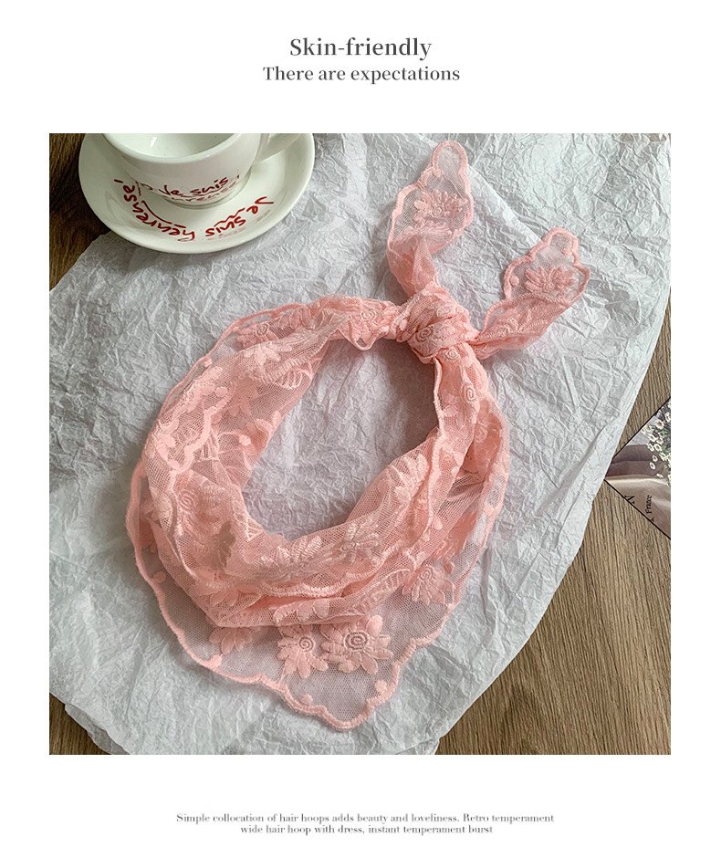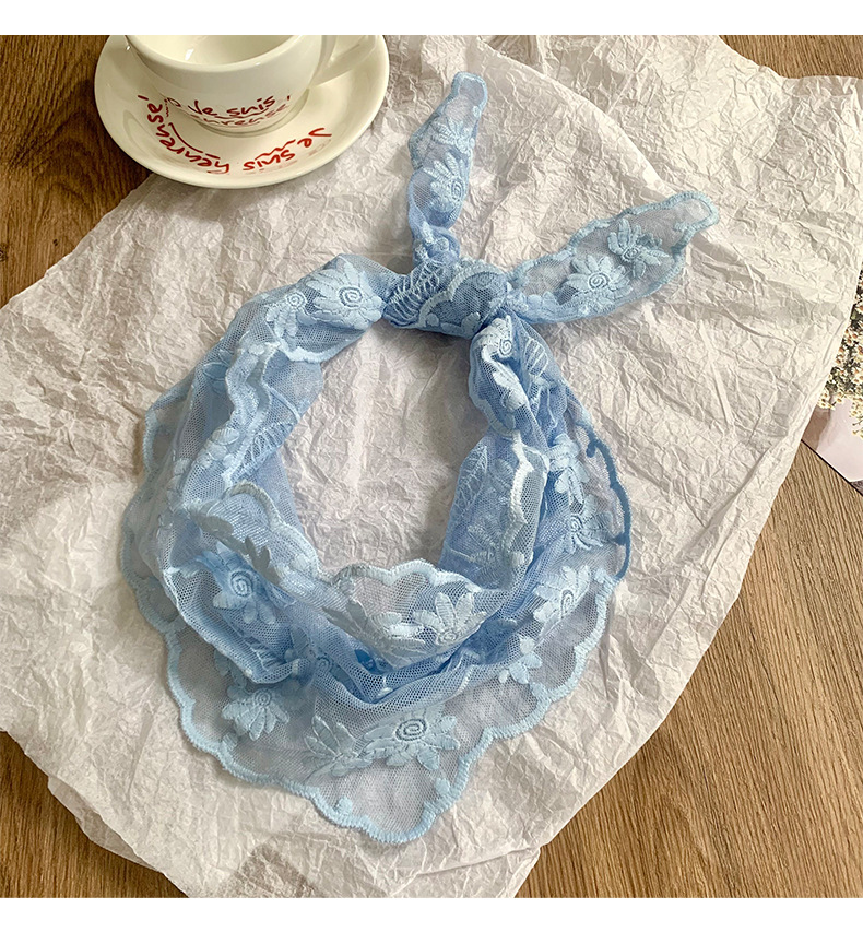 Bufanda triangular, pañuelo en la cabeza, niña de verano, nuevo estilo, protector para el cuello, bufanda pequeña, correa para el cabello dulce, cinta para el cabello, bufanda de seda de encaje, cintura