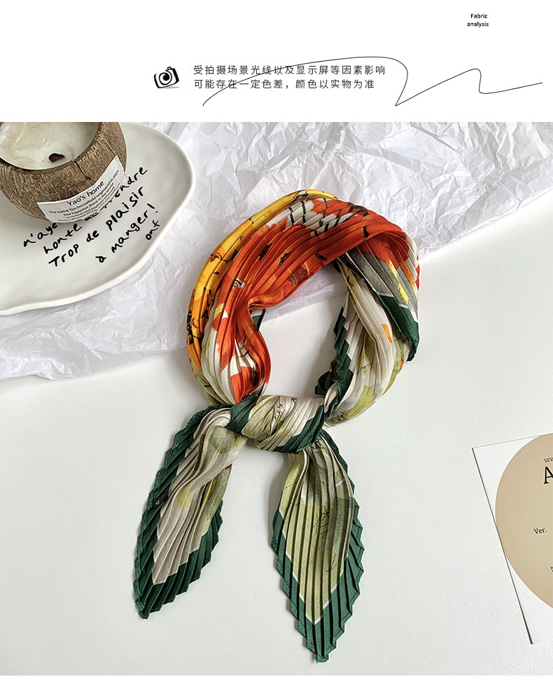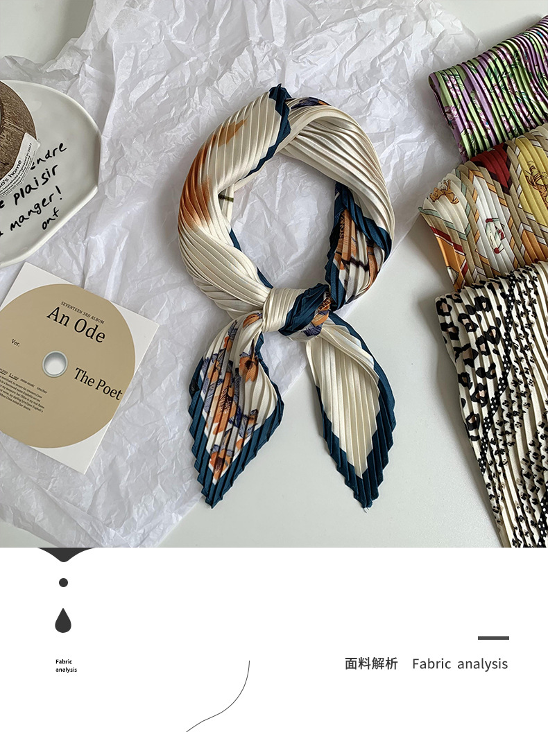 Bufanda de seda, bufanda cuadrada, sentido avanzado, camisa decorativa arrugada de moda coreana de primavera y verano, bufanda pequeña, bufanda en forma de diamante, diadema