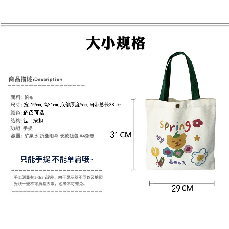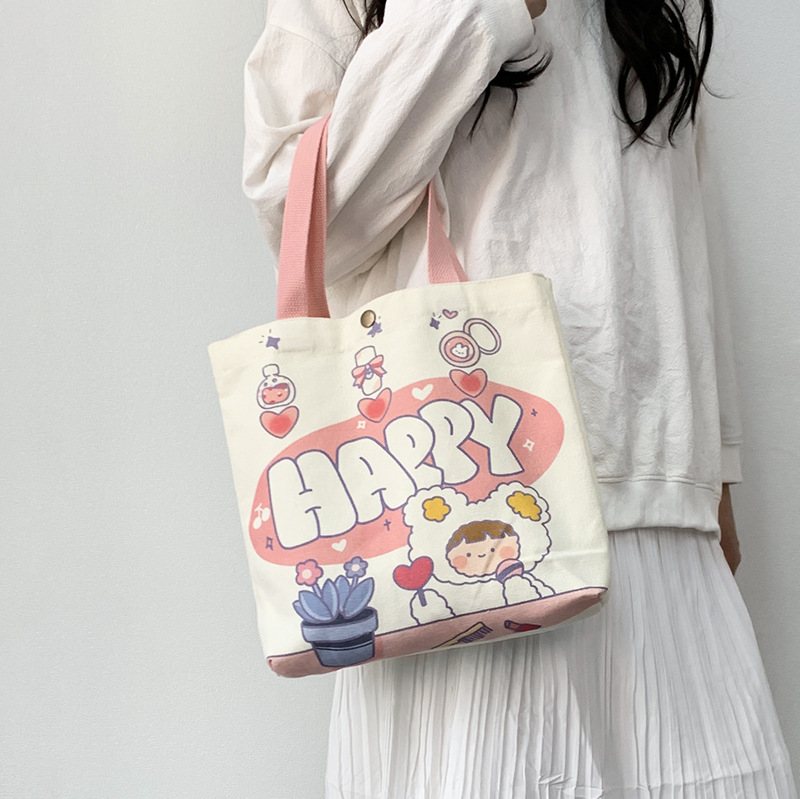 Bolso de lona bolso de mano de lona de dibujos animados para mujer bolso de hombro pequeño