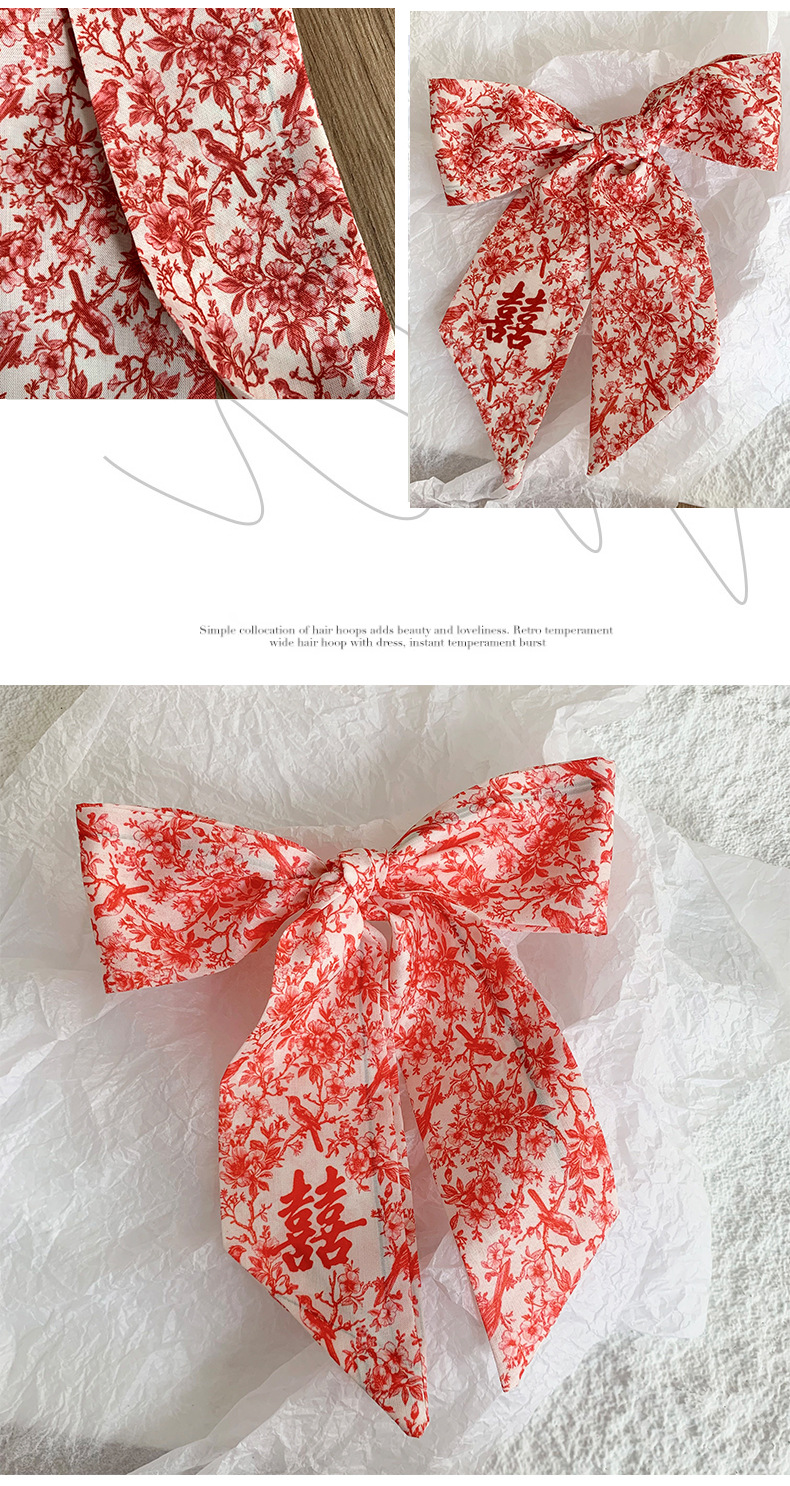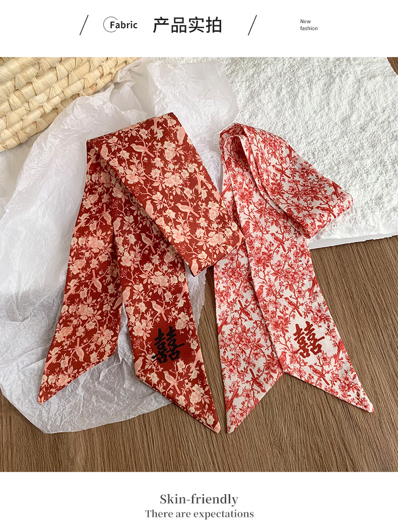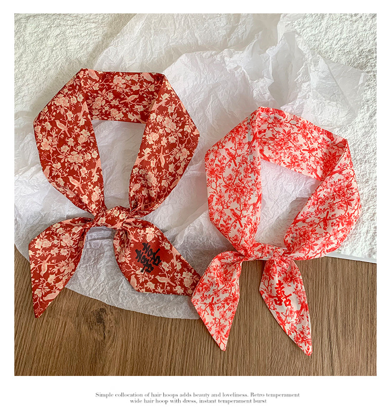 Buñuelo largo de seda roja de alto nivel multifuncional caja de regalo de bodas decoración de bolsas de pañuelo flotante correa de pelo