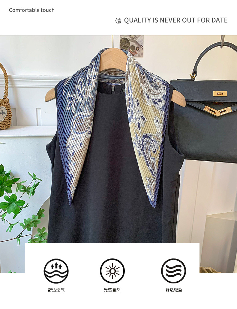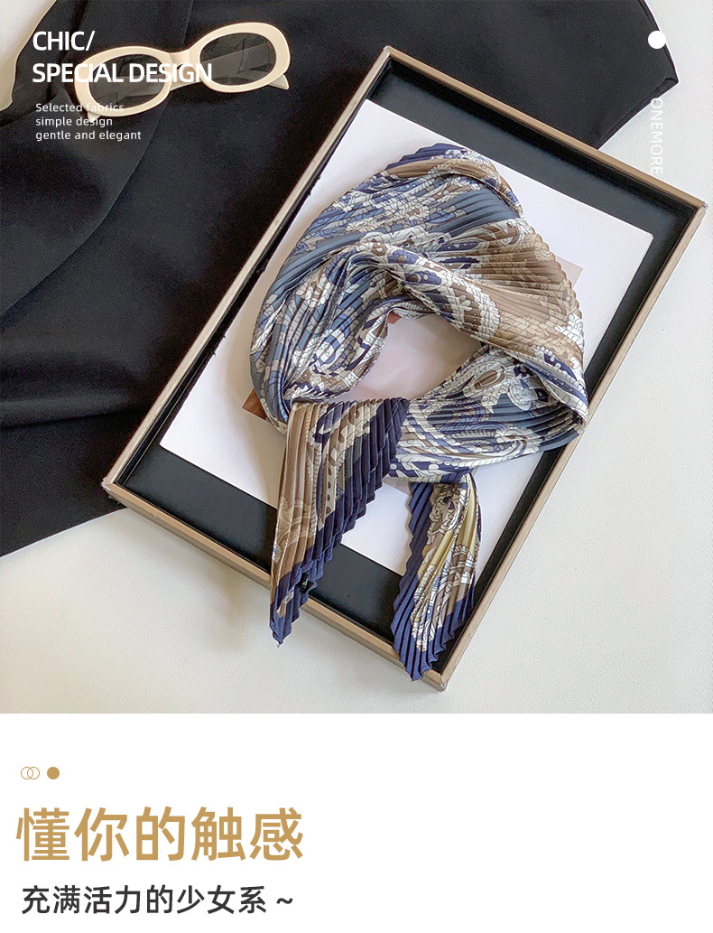 Pañuelo de seda plisado, sentido avanzado, nuevo anacardo, decoración de todo fósforo, bufanda profesional pequeña, bufanda de seda en forma de diamante personalizada, chal