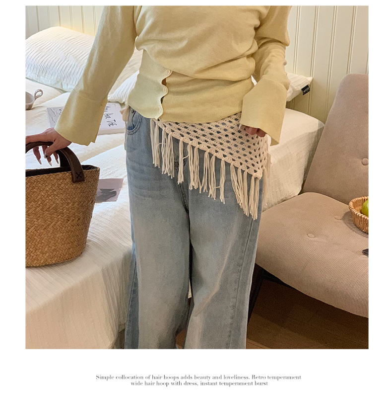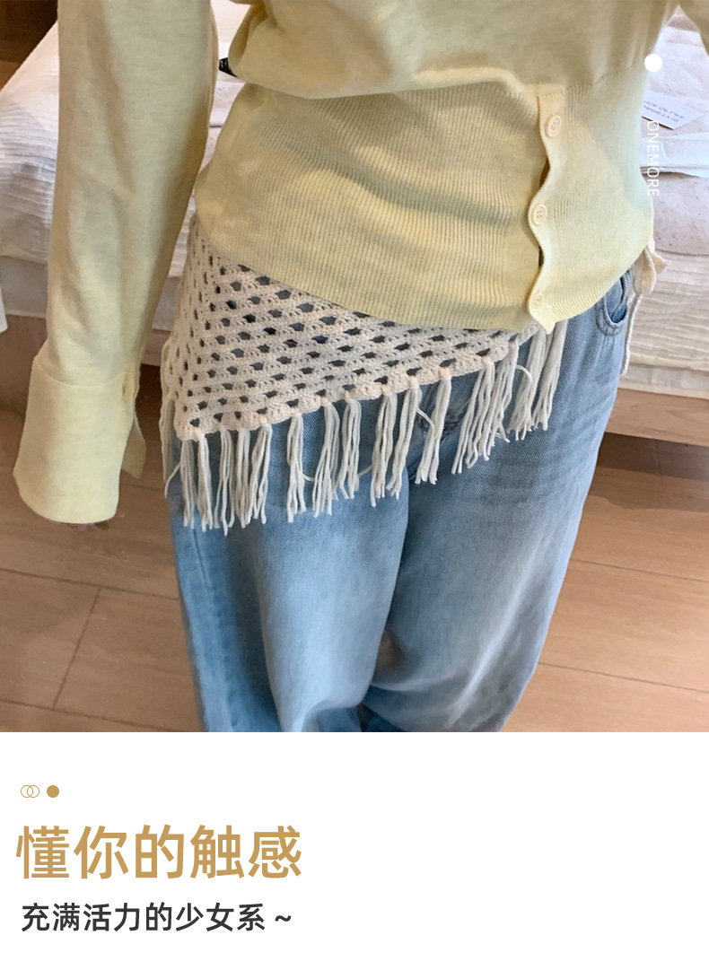 Pañuelo tejido nuevo estilo estilo ins chica caliente moda todo-fósforo delantal con flecos bufanda triangular cintura pedo cortina apilada