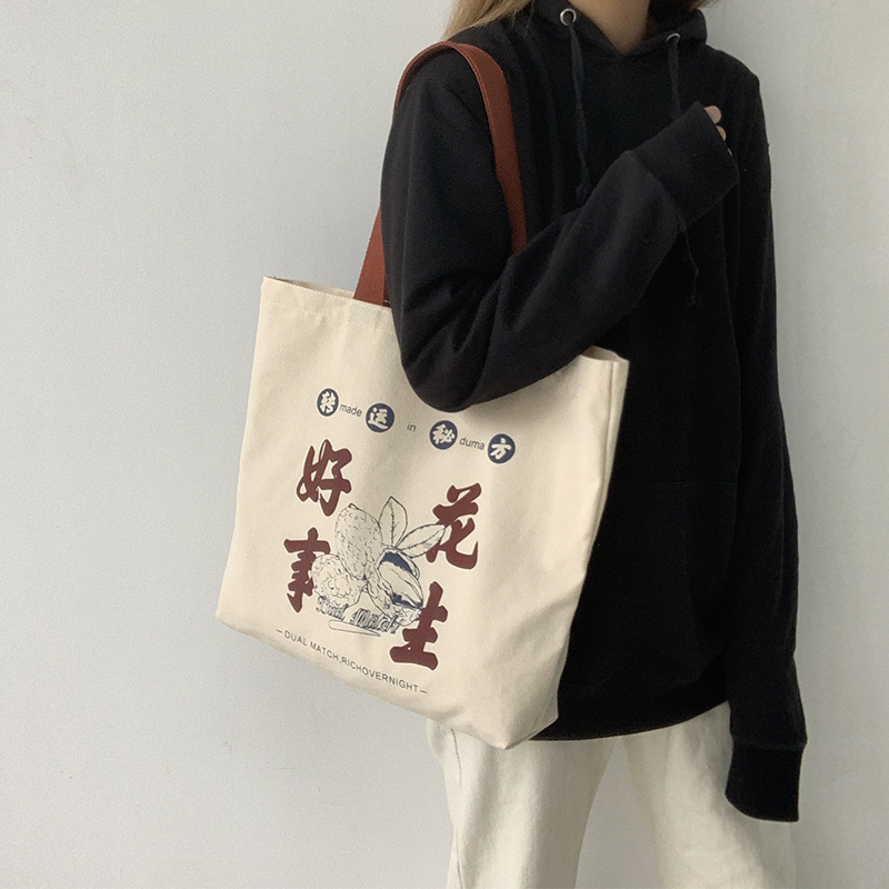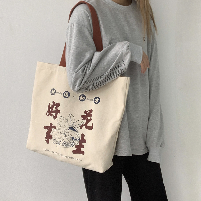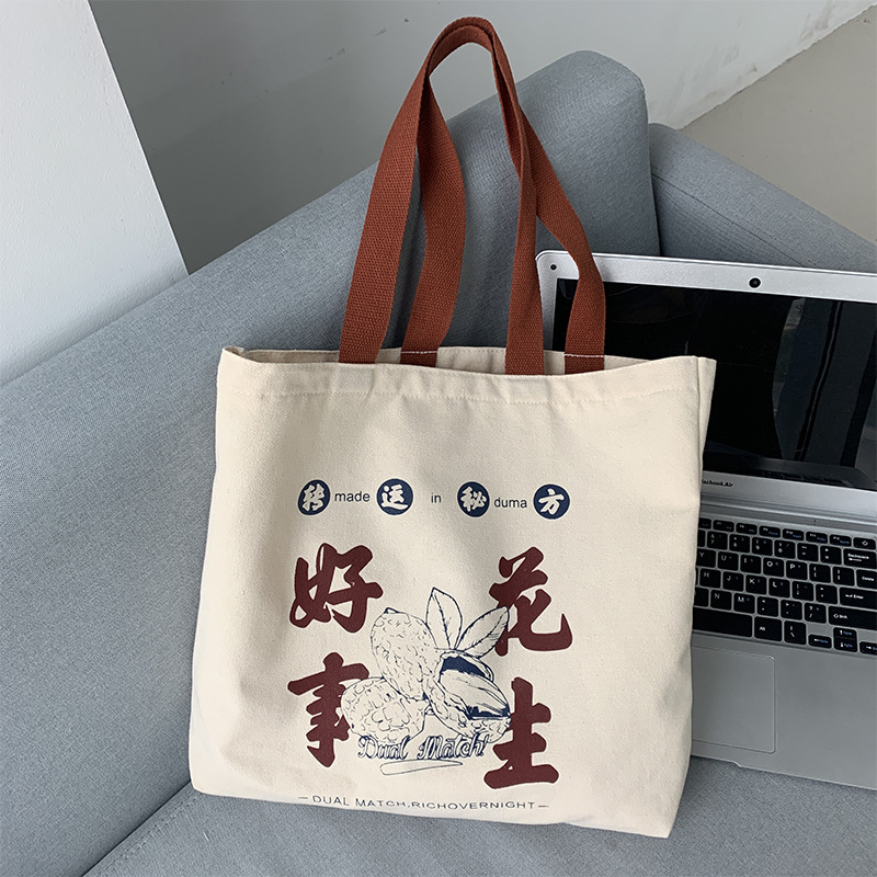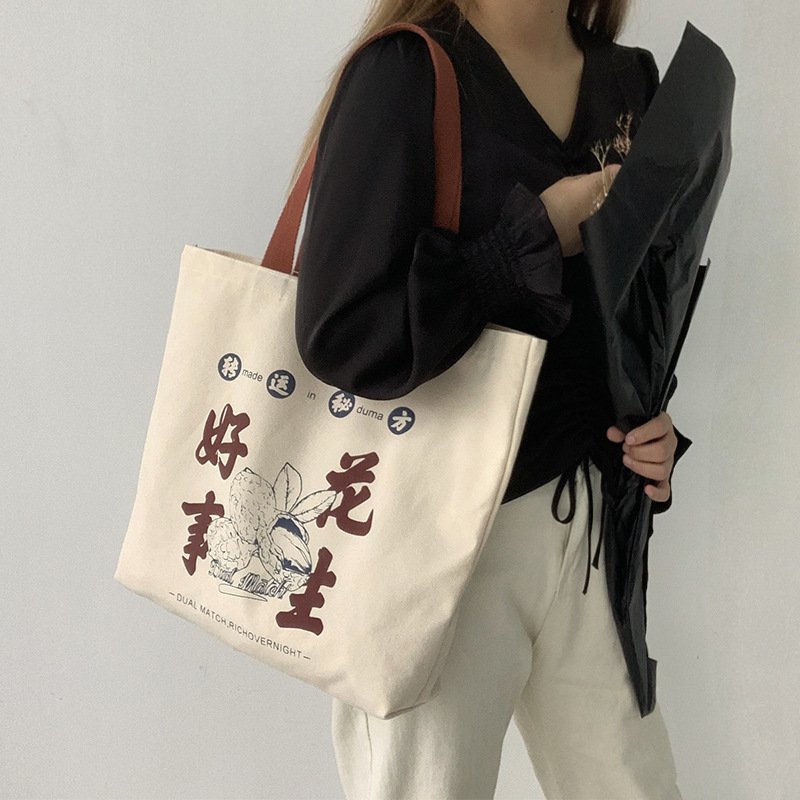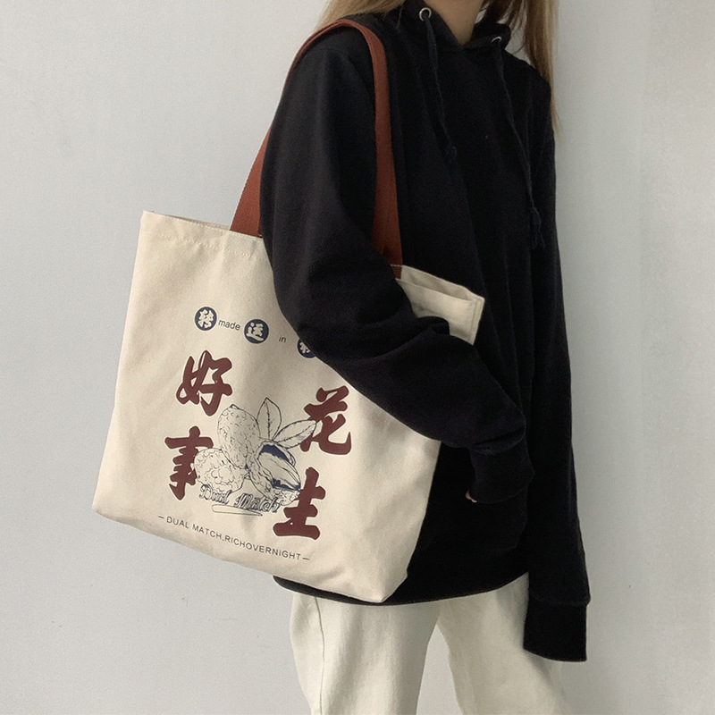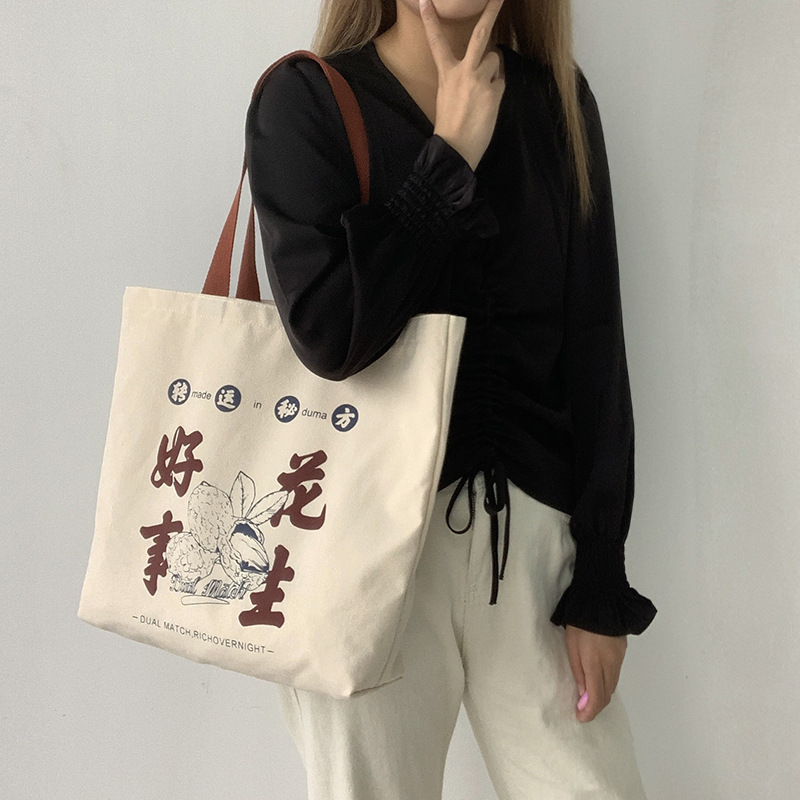 Bolsa de lona de estudiantes japoneses de gran capacidad de trabajo para mujeres coreanas Harajuku ulzzang hombro bolsas de compras auspiciosas ins viento