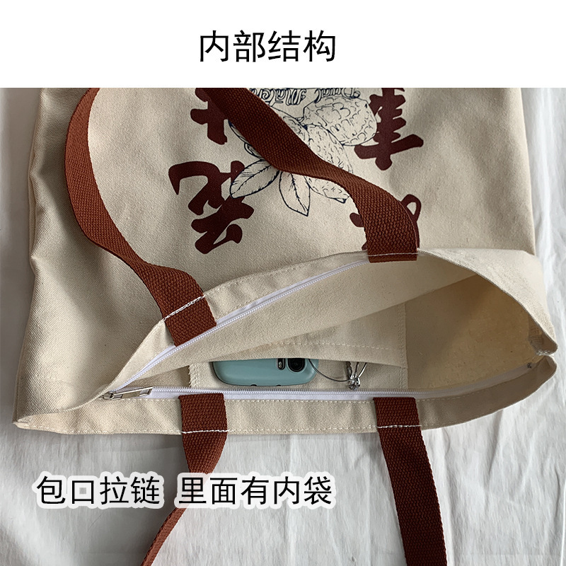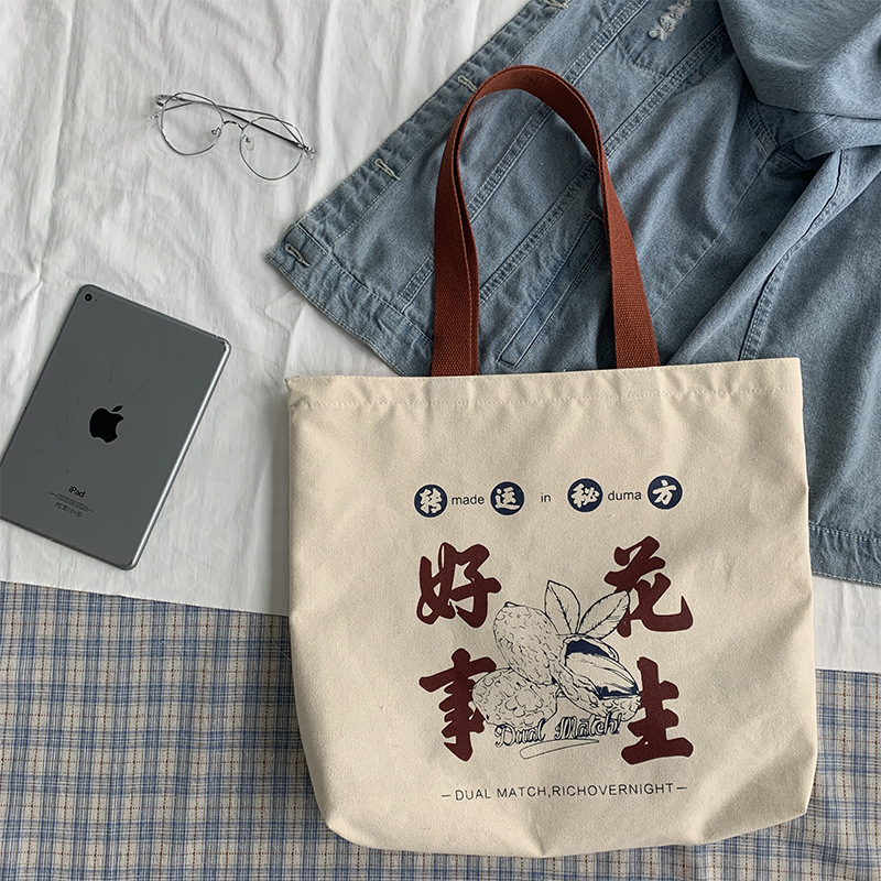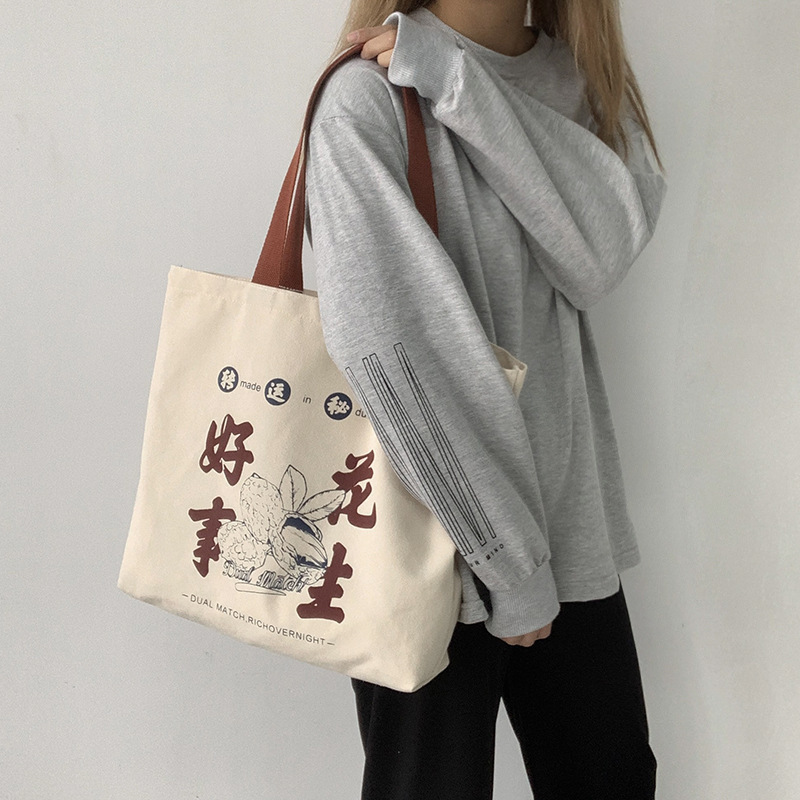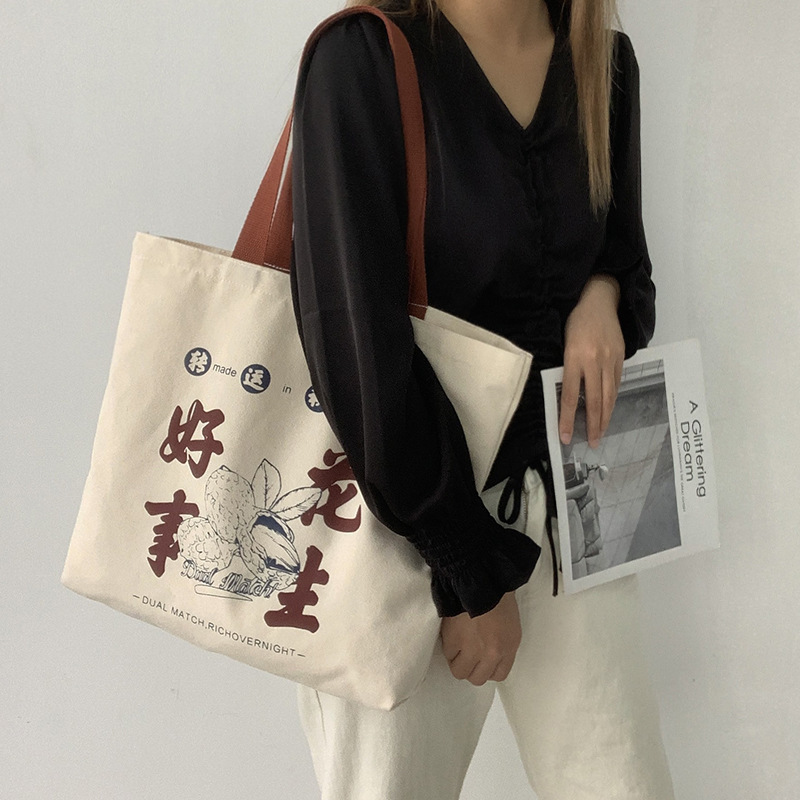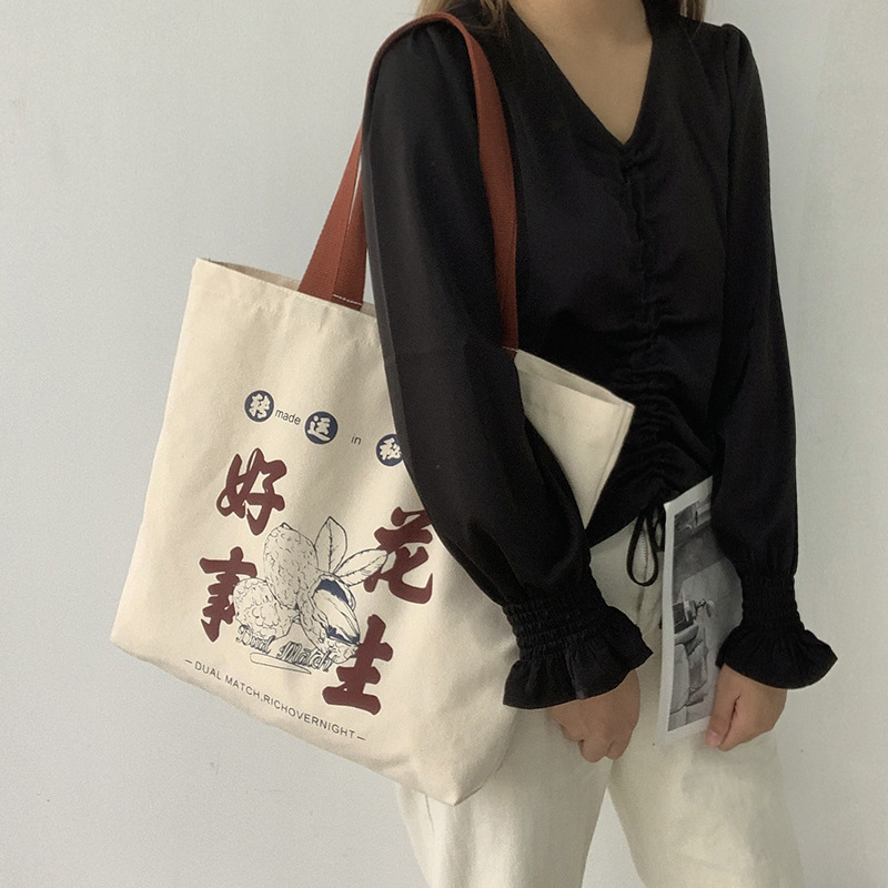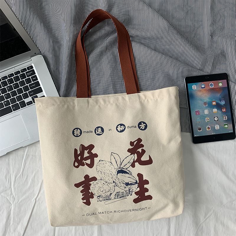 Bolsa de lona de estudiantes japoneses de gran capacidad de trabajo para mujeres coreanas Harajuku ulzzang hombro bolsas de compras auspiciosas ins viento